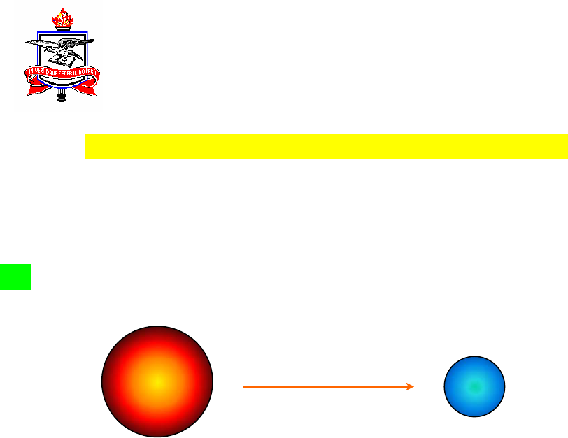 UNIVERSIDADE FEDERAL DO PARÁ CENTRO TECNOLÓGICO DEPARTAMENTO DE ENGENHARIA QUÍMICA E DE ALIMENTOS DISCIPLINA: Transferência de Calor e Massa (REVISÃO) PROFESSOR: CÉLIO SOUZA LEI DE FOURIER DA CONDUÇÃO DE CALOR 1 − CONCEITOS: A transferência de calor é a transmissão de energia resultante de uma diferença de temperatura. Ex: T0 Tx Fluxo de calor T0 > Tx Nota-se haver uma distribuição desigual de temperatura o que acarretará em um transporte de calor no sentido do Sol para Terra. Observa-se, também, que a temperatura cresce da Terra para o Sol, isto é, no sentido contrário ao do transporte de calor. 2 − MECANISMOS DE TRANSPORTE DE CALOR: 2.1 − Condução: A calor pode ser conduzido através de sólidos, líquidos e gases pela cinética de impacto direto de moléculas adjacentes. O fluxo de energia não é acompanhado por um movimento apreciável de matéria. 2.2 − Convecção: É parcialmente regida pelas leis da mecânica dos fluidos, já que a transferência de energia depende do movimento de porções macroscópicas de um líquido ou gás (fluido). 2.2.1 − Convecção natural: É induzida por diferença de densidade, o que acarreta em uma diferença de temperatura. Sol terra Ex: Correntes convectivas Fonte de calor 2.2.2 − Convecção forçada: É resultante de uma força externa (bombas, agitadores, etc.) 2.3 − Radiação: Propaga-se através do vácuo, gases, líquidos ou sólidos transparentes. A energia é transportada por ondas eletromagnéticas ou fótons de comprimento variando desde 10−11m (ondas curtas dos raios cósmicos) até 103m (ondas longas de rádio comunicação). Obs: Raramente o calor é transferido por um só mecanismo. Geralmente ocorre uma combinação em série ou paralelo. 3 − MODELOS MATEMÁTICOS: 3.1 − Convecção: A taxa de calor por convecção é calculada pela Lei de Newton do Resfriamento. ( )fSC TTdAhdq −= .. onde: dqC → taxa de calor por convecção (Kcal.h−1) ou (Watt); dA → elemento de área em que flui a quantidade de calor "dqC" (m2); TS → temperatura da superfície no elemento "dA" (ºC); Tf → temperatura do fluido ao longe da superfície (ºC); h → coeficiente de convecção local (Kcal/m2.h.ºC) ou (Watt/m2ºC). 1ª Obs: Caso a temperatura do fluido seja maior que a da superfície, então (TS − Tf) fica (Tf − TS). 2ª Obs: "h" depende do tipo de escoamento (laminar ou turbulento), características geométricas, condutividade térmica, viscosidade, calor H2O específico, do mecanismo de transferência por convecção (natural ou forçada), etc. 3ª Obs: Caso "h" seja constante ao longo da superfície "A", então a equação de Newton pode ser escrita da seguinte forma: ( ) fSfSC TTTTAhq 〉∴−= para .. 3.2 − Radiação: A energia radiante pode ser refletida (α), transmitida (β) ou absorvida (γ), onde α + β + γ = 1 Ex: Negro de fumo (γ ≅ 0,97; α ≅ 0,03; β ≅ 0); Placa de alumínio (γ ≅ 0,1; α ≅ 0,9; β ≅ 0). Obs.1: O corpo negro é o corpo que absorve toda a energia radiante que atinge sua superfície (γ = 1) e a taxa de calor é dada por: 4.. SR TAq σ= (Lei de Stefan-Boltzmann) Obs.2: Quando dois corpos negros trocam radiação a taxa de calor é dada por: ( )44 21 .. SSR TTAq −=σ Obs.3: Caso o corpo não seja um corpo negro (γ < 1) a taxa de calor é dada por: ( )44 21 ... SSR TTAq −= σε onde: qR → taxa de troca de calor por radiação térmica (Watt); σ → constante de Stefan-Boltzmann (5,67.10−8W/m2K4); ε → emissividade do meio (adimensional, variando de 0 a 1); A → área superficial (m2); TS → temperatura da superfície (absoluta, "K" ou "R"). 3.3 − Condução e Condutividade Térmica: y P.S. PLACA SÓLIDA P.I. x y T0 P.S. P.I. x y T0 P.S. T = T (y,t) P.I. x y T0 P.S. T = T(y) P.I. x # De acordo com o experimento acima, podemos concluir que: FLUXO DE CALOR α GRADIENTE DE TEMPERATURA NA DIREÇÃO (Y) dy dTK A q −= (Lei de Fourrier da Condução) Obs: O sinal negativo é devido ao fluxo térmico estar no sentido contrário ao gradiente de temperatura. Considerar que haja um sorvedouro de calor na placa superior, mantendo-a fria t = 0 → a placa superior está na mesma temperatura da placa inferior "T0" t = pequeno → a placa superior aumenta sua temperatura havendo um regime transiente T = T(y,t) t = ∞ → haverá formação final do perfil de temperatura, ou seja, T = T(y) sendo: q → taxa de calor por condução [Kcal/h; Btu/h; Joule/s (W)]; A → área (m2; ft2); K → condutividade térmica (Kcal/h.m.ºC; Btu/h.ft.ºF); dy dT → gradiente unidirecional de temperatura (ºC/m). 1ª Obs: A condutividade térmica é a capacidade que o material apresenta em conduzir calor. É função do estado molecular e, portanto, depende da temperatura K → ∞ (condutores) → materiais metálicos; K → 0 (isolantes) → isopor, cortiça. 2ª Obs: Quando as condutividades térmicas relacionadas a eixos direcionais são as mesmas, o meio é dito "ISOTRÓPICO", ou seja, quando "K" independe da direção do fluxo. Caso contrário, o meio é dito "ANISOTRÓPICO". z Kz Ky y Kx x # Introduziremos à Lei de Fourrier da Condução a massa específica (ρ) e o calor específico (CP), onde: ρ = (Kg/m3) e CP = (Kcal/Kg.ºC). ( )cteCe C TC dy dK A q dy dTK A q p P P =∴⎟⎟⎠ ⎞ ⎜⎜⎝ ⎛−=∴−= caso . .. ρρ ρ αρρ ρ =⋅−= PC. K mas,, . .. dy dT C CK A q P P Kx = Ky = Kz = K → meio Isotrópico (materiais homogêneos) Kx ≠ Ky ≠ Kz → meio Anisotrópico (Substâncias amorfas como madeira) dy dTC A q P..ρα−= ou dy dTCQ P..ρα−= Obs: "α" é a difusividade térmica que representa a relação entre a capacidade do material em transportar energia e sua capacidade em absorver energia. # Dimensão de "α": [ ]1223 .º.. −==∴⋅== TL h m Kg m Cmh Kcal C K P αρα 4 − APLICAÇÃO EM CORPOS DE GEOMETRIA SIMPLES: 4. 1 − Placa Plana: Dada uma placa plana de espessura "∆x" como mostra a figura abaixo, na qual as duas face