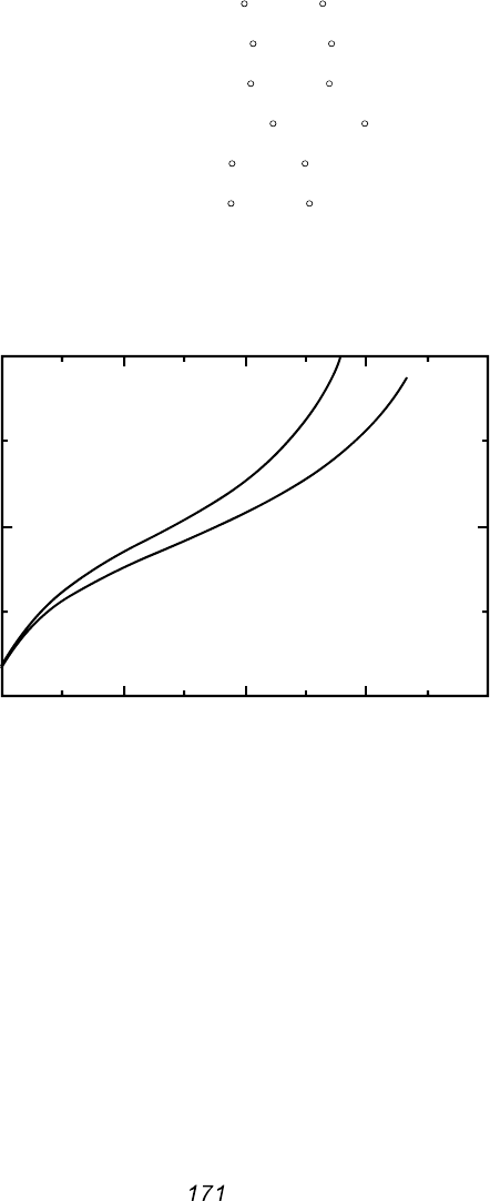 1) Polish the surface to remove stress amplification sites. 2) Reduce the number of internal defects (pores, etc.) by means of altering processing and fabrication techniques. 3) Modify the design to eliminate notches and sudden contour changes. 4) Harden the outer surface of the structure by case hardening (carburizing, nitriding) or shot peening. 8.40 Creep becomes important at 0.4Tm, Tm being the absolute melting temperature of the metal. For Ni, 0.4Tm = (0.4)(1455 + 273) = 691 K or 418 C (785 F) For Cu, 0.4Tm = (0.4)(1085 + 273) = 543 K or 270 C (518 F) For Fe, 0.4Tm = (0.4)(1538 + 273) = 725 K or 450 C (845 F) For W, 0.4Tm = (0.4)(3410 + 273) = 1473 K or 1200 C (2190 F) For Pb, 0.4Tm = (0.4)(327 + 273) = 240 K or -33 C (-27 F) For Al, 0.4Tm = (0.4)(660 + 273) = 373 K or 100 C (212 F) 8.41 Schematic creep curves at both constant stress and constant load are shown below. St ra in Time Constant Load Constant Stress With increasing time, the constant load curve becomes progressively higher than the constant stress curve. Since these tests are tensile ones, the cross-sectional area diminishes as deformation progresses. Thus, in order to maintain a constant stress, the applied load must correspondingly be diminished since stress = load/area. 8.42 These creep data are plotted below 4 03 02 01 00 0.0 0.1 0.2 0.3 0.4 The steady-state creep rate ( / t) is the slope of the linear region as t = 0.230 - 0.09 30 min - 10 min = 7.0 x 10 -3 min-1 8.43 This problem asks that we determine the total elongation of a low carbon-nickel alloy that is exposed to a tensile stress of 40 MPa (5800 psi) at 538 C for 5000 h; the instantaneous and primary creep elongations are 1.5 mm (0.06 in.). From the 538 C line in Figure 8.39, the steady state creep rate, . s , is about 0.15 %/1000 h (or 1.5 x 10-4 %/h) at 40 MPa. The steady state creep strain, s, therefore, is just the product of . s and time as s = . s x (time) = (1.5 x 10-4 %/h)(5000 h) = 0.75 % = 7.5 x 10-3 Strain and elongation are related as in Equation (6.2); solving for the steady state elongation, ls, leads to ls = lo s = (750 mm)(7.5 x 10 -3) = 5.6 mm (0.23 in.) Finally, the total elongation is just the sum of this ls and the total of both instantaneous and primary creep elongations [i.e., 1.5 mm (0.06 in.)]. Therefore, the total elongation is 7.1 mm (0.29 in.). 8.44 We are asked to determine the tensile load necessary to elongate a 500 mm long low carbon- nickel alloy specimen 3.2 mm after 10,000 h at 427 C. It is first necessary to calculate the steady state creep rate so that we may utilize Figure 8.39 in order to determine the tensile stress. The steady state elongation, ls, is just the difference between the total elongation and the sum of the instantaneous and primary creep elongations; that is, ls = 3.2 mm - 0.8 mm = 2.4 mm (0.10 in.) Now the steady state creep rate, . s is just . s = t = ls/lo t = (2.4 mm)/(500 mm) 10000 h = 4.8 x 10-7 (h)-1 = 0.048 %/1000 h Employing the 427 C line in Figure 8.39, a steady state creep rate of 0.048 %/1000 h corresponds to a stress of about 70 MPa (10,000 psi). From this we may compute the tensile load using Equation (6.1) as F = Ao = do 2 2 = (70 x 106 N/m2)( ) 10.0 x 10 -3 m 2 2 = 5500 N (1250 lbf) 8.45 This problem asks us to calculate the rupture lifetime of a component fabricated from a low carbon-nickel alloy exposed to a tensile stress of 60 MPa at 538 C. All that we need do is read from the 538 C line in Figure 8.38 the rupture lifetime at 60 MPa; this value is about 36,000 h. 8.46 We are asked in this problem to determine the maximum load that may be applied to a cylindrical low carbon-nickel alloy component which must survive 500 h at 649 C. From Figure 8.38, the stress corresponding to 500 h is 55 MPa (8000 psi). Since stress is defined in Equation (6.1) as = F/Ao, and for a cylindrical specimen, Ao = ro 2, then F = Ao = do 2 2 = (55 x 106 N/m2)( ) 12 x 10 -3 m 2 2 = 6220 N (1570 lbf) 8.47 The slope of the line from a log . s versus log plot yields the value of n in Equation (8.33); that is n = log . s log We are asked to determine the values of n for the creep data at the three temperatures in Figure 8.39. This is accomplished by taking ratios of the differences between two log . s and log values. Thus for 427 C n = log . s log = log(10-1) - log(10-2) log(85 MPa) - log(55 MPa) = 5.3 While for 538 C n = log . s log = log(1.0) - log(10-2) log(59 MPa) - log(23 MPa) = 4.9 And at 649 C n = log . s log = log(1.0) - log(10-2) log(15 MPa) - log(8.3 MPa) = 7.8 8.48 (a) We are asked to estimate the activation energy for creep for the low carbon-nickel alloy having the steady-state creep behavior shown in Figure 8.39, using data taken at = 55 MPa (8000 psi) and temperatures of 427 C and 538 C. Since is a constant, Equation (8.34) takes the form . s = K2 nexp - Qc RT = K2' exp - Qc RT where K2' is now a constant. (Note: the exponent n has about the same value at these two temperatures per Problem 8.47.) Taking natural logarithms of the above expression ln . s = ln K2' - Qc RT For the case in which we have creep data at two temperatures (denoted as T1 and T2) and their corresponding steady-state creep rates ( . s1 and . s2 ), it is possible to set up two simultaneous equations of the form as above, with two unknowns, namely K2' and Qc. Solving for Qc yields Qc = - R ln . s1 - ln . s2 1 T1 - 1T2 Let us choose T1 as 427 C (700 K) and T2 as 538 C (811 K); then from Figure 8.39, at = 55 MPa, . s1 = 0.01 %/1000 h = 1 x 10-7 (h)-1 and . s2 = 0.8 %/1000 h = 0.8 x 10-5 (h)-1. Substitution of these values into the above equation leads to Qc = - (8.31 J/mol-K)[ ]ln( )10-7 - ln( )0.8 x 10-5 [ ]1700 K - 1811 K = 186,200 J/mol (b) We are now asked to calculate . s at 649 C (922 K). It is first necessary to determine the value of K2' , which is accomplished using the first expression above, the value of Qc, and one value each of . s and T (say . s1 and T1). Thus, K2' = . s1 exp Qc RT1 = [ ]10-7 (h)-1 exp [ ]186200 J/mol(8.