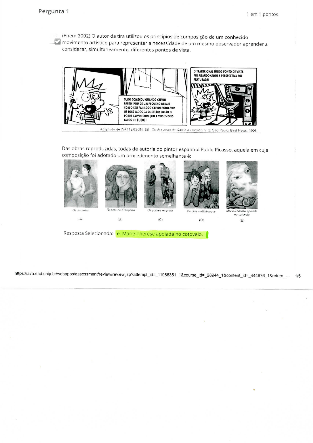 Das obras reproduzidas, todas de autoria do pintor espanhol Pablo Picasso, aquela em cuja