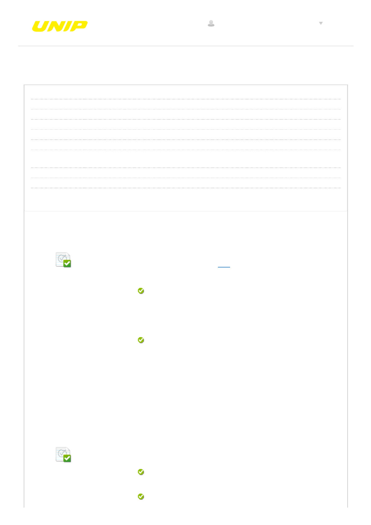 11/11/2018 Revisar envio do teste: ATIVIDADE TELEAULA II – 5561-60_... https://ava.ead.unip.br/webapps/assessment/review/review.jsp?attempt_id=_11195529_1&course_id=_28576_1&content_id=_439622_1&return_… 1/2 Revisar envio do teste: ATIVIDADE TELEAULA II LEGISLAÇAO SOCIAL E PREVIDENCIÁRIA 5561-60_52801_R_20182_01 CONTEÚDO Usuário aline.dias17 @unipinterativa.edu.br Curso LEGISLAÇAO SOCIAL E PREVIDENCIÁRIA Teste ATIVIDADE TELEAULA II Iniciado 11/11/18 19:38 Enviado 11/11/18 19:39 Status Completada Resultado da tentativa 0 em 0 pontos Tempo decorrido 0 minuto Autoteste O aluno responde e o resultado do aluno não é visível ao professor. Resultados exibidos Todas as respostas, Respostas enviadas, Respostas corretas, Comentários, Perguntas respondidas incorretamente Pergunta 1 Resposta Selecionada: d. Respostas: a. b. c. d. e. Feedback da resposta: Após decisão do STF cabe aos magistrados veri�carem a situação e as condições reais do requerente do BPC. Dessa forma, qual das alternativas não é mais o único requisito em avaliação de miserabilidade? Renda familiar. Idade. Estado civil. Moradia. Renda familiar. Grau de instrução. Resposta: d) Pergunta 2 Resposta Selecionada: b. Respostas: a. b. Assinale a alternativa que corresponde a qualquer tipo de perda ou anormalidade que limite as funções físicas, sensoriais ou intelectuais de uma pessoa. De�ciência. Acessibilidade. De�ciência. CONTEÚDOS ACADÊMICOS BIBLIOTECAS MURAL DO ALUNO TUTORIAISUNIP EAD 0 em 0 pontos 0 em 0 pontos aline.dias17 @unipinterativa.edu.br 1 11/11/2018 Revisar envio do teste: ATIVIDADE TELEAULA II – 5561-60_... https://ava.ead.unip.br/webapps/assessment/review/review.jsp?attempt_id=_11195529_1&course_id=_28576_1&content_id=_439622_1&return_… 2/2 Domingo, 11 de Novembro de 2018 19h39min36s BRST c. d. e. Feedback da resposta: Autossu�ciência. Autoproteção. Funcionalidade. Resposta: b) Pergunta 3 Resposta Selecionada: c. Respostas: a. b. c. d. e. Feedback da resposta: Assinale a alternativa relacionada às condutas praticadas por adolescentes e que estejam em desacordo com as normas ditadas para um bom convívio em uma sociedade. Ato infracional. Crime hediondo. Infração penal. Ato infracional. Delito criminal. Contravenção penal. Resposta: c) Pergunta 4 Resposta Selecionada: a. Respostas: a. b. c. d. e. Feedback da resposta: No caso de entidades �lantrópicas, ou casa-lar, é facultada a cobrança de participação do idoso no custeio da entidade. Qual é o limite dessa participação para qualquer benefício previdenciário ou assistência social percebido pelo idoso? 70% dos rendimentos. 70% dos rendimentos. 1/4 do salário-mínimo. Um salário-mínimo. 50% dos rendimentos. Será de�nido pelo Conselho do Idoso. Resposta: a) ← OK 0 em 0 pontos 0 em 0 pontos
