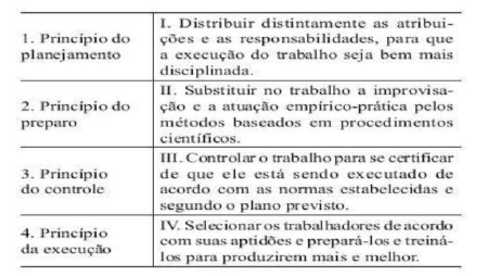 Atividade 1. O conceito de que a administração se divide nas funções: previsão, organização, comando, coordenação e controle, referem-se à que teoria e a que autor, respectivamente? a) Teoria da Administração Científica, de Taylor. b) Produção em massa, de Ford. c) Teoria da Administração Clássica, de Fayol. d) Just-in-time, de Toyota. e) Mais-valia, de Marx. 2. Associe os princípios da administração científica de Taylor (à esquerda, em algarismos arábicos) com suas definições (à direita, em algarismos romanos): Está correta a associação contida em a) 1.I, 2.II, 3.III e 4.IV. b) 1.II, 2.III, 3.IV e 4.I. c) 1.I, 2.IV, 3.III e 4.II. d) 1.II, 2.I, 3.IV e 4.III. e) 1.II, 2.IV, 3.III e 4.I. 3. Considerado, ao lado de Taylor, um dos grandes nomes dos primórdios da Administração, Henry Fayol foi fundador da Teoria Clássica cuja ênfase estava no(a): a) tarefa realizada pelo operário. b) homem e suas necessidades. c) estrutura da organização. d) ambiente externo. e) concorrência. 4. O estudo de Hawthorne representou um marco na teoria do comportamento humano. ( ) Certo ( ) Errado 5. A Teoria da Administração Científica preocupou- se em estabelecer normas escritas para a determinação dos atos e das decisões administrativas. ( ) Certo ( ) Errado 6. Os Departamentos de uma organização podem ser estruturados formalmente por três grupos principais. São eles: a) Por função, por produto/mercado e matricial. b) Por função, matricial e pessoal. c) Matricial, por produto/mercado e financeiro. d) Pessoal, funcional e financeiro. e) Pessoal, financeiro e matricial. 7. De acordo com a Teoria Clássica, a divisão do trabalho processa-se de duas maneiras distintas: vertical e horizontal. A divisão do trabalho no sentido horizontal é denominada a) departamentalização. b) estrutura organizacional. c) padronização. d) administração científica. e) cooperação. 8. Henri Fayol (1841 1925) é considerado um dos principais nomes da Teoria Clássica da Administração e construiu vários princípios importantes que fundamentam as funções do administrador. Assinale a alternativa que define corretamente a função de controle. a) Dirigir e orientar a organização são as principais atividades da função controle, que envolve a avaliação do futuro e o aprovisionamento presente. b) Unir e harmonizar os atos e esforços coletivos faz parte do escopo da função controle. c) A função controle alinha todas as atividades organizacionais, facilitando o trabalho em busca do alcance dos objetivos. d) Providenciar os recursos necessários para o pleno funcionamento da organização é a principal característica da função controle. e) A função controle é responsável por verificar se os resultados alcançados estão de acordo os objetivos e com os princípios estabelecidos no planejamento organizacional. 9. Assinale a alternativa que apresenta os elementos do processo administrativo e sua definição conceitual. a) Planejamento, organização, direção e controle, quando visualizados separadamente, formam o processo administrativo. Os elementos do processo agem uns sobre os outros individualmente e podem afetar todos os demais. b) Planejamento, organização, direção e controle, quando visualizados em conjunto, formam o processo administrativo. Os elementos do processo agem uns sobre os outros e cada um pode afetar todos os demais. c) Organização, direção e controle são os únicos elementos do processo administrativo. Os elementos do processo agem uns sobre os outros e cada um pode afetar todos os demais. d) Planejamento, organização, direção e controle, quando visualizados separadamente, formam o processo administrativo. As funções são separadas e não interferem nos demais elementos do processo. e) Planejamento, direção e controle, quando visualizados no conjunto, formam o processo administrativo. Os elementos do processo agem uns sobre os outros na função organização e, individualmente, pode afetar todos os demais. 10. No âmbito das organizações, o período entre 1900 a 1950 que ocorreu a intensificação do fenômeno da industrialização iniciada anteriormente com a Revolução Industrial, ficou conhecido por: a) Anos Dourados da Indústria. b) Era da Industrialização Clássica. c) Século da Informação. d) Intensidade da Era das Relações Industriais. 11. O papel do gerente considerava a organização como um sistema racional de regras e de autoridade, pois justifica a sua existência à medida que possa atender ao objetivo primário de fornecer valor na forma de bens e serviços aos consumidores. Este valor foi considerado por: a) Taylor. b) Fayol. c) Chester Barnard. d) Hebert Simon. 12. Segundo Robert Katz, existem três tipos de habilidades administrativas necessárias para que o administrador possa trabalhar no processo de suas atividades: a técnica, a humana e a conceitual. Assinale a opção que corresponde à habilidade conceitual. a) Consiste em utilizar conhecimentos, métodos e equipamentos necessários para o desempenho de tarefas específicas. b) Consiste na capacidade e discernimento para monitorar técnicas desempenhadas pelos subordinados. c) Consiste na capacidade e facilidade para trabalhar com pessoas, comunicar, compreender suas atitudes e motivações e liderar grupo de pessoas. d) Consiste na capacidade de ver a empresa de uma maneira global, compreendendo a complexidade da organização como um todo e o ajustamento do comportamento de suas partes. e) Consiste na capacidade de compreender as motivações humanas básicas, permitindo que as pessoas se comportem de acordo com os objetivos individuais. 13. Frederick Taylor verificou que em todos os ofícios os operários aprendiam a maneira de executar as tarefas do trabalho por meio da observação. Percebeu que isso levava a diferentes meios ou métodos para se fazer a mesma coisa. Adotou o melhor dos métodos e o aperfeiçoou, criando o método cien