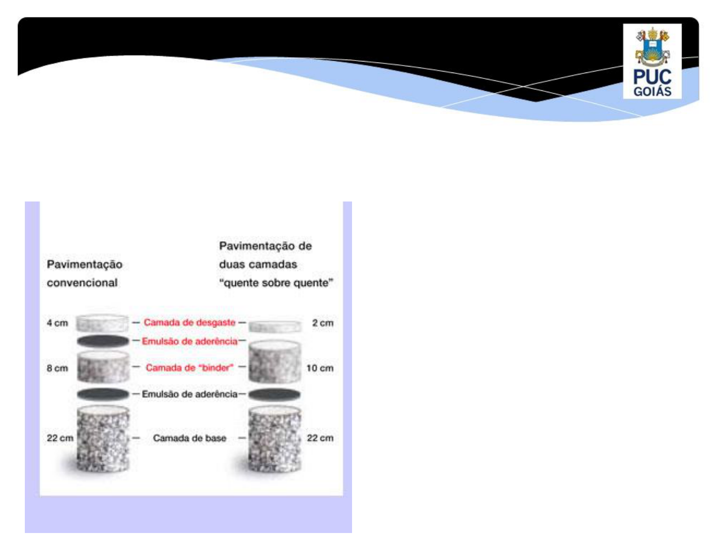 TERRAPLANAGEM E PAVIMENTAÇÃO AULA 2 PAVIMENTO, DEFINIÇÃO, FUNÇÃO, TERMINOLOGIAS REFERÊNCIA CAP 07 LIVRO DE PAVIMENTAÇÃO ASFALTICA FORMAÇÃO PARA ENGENHEIROS Prof. Me. Fábio Maurício Corrêa TERRAPLANAGEM E PAVIMENTAÇÃO AULA 2 PAVIMENTO DEFINIÇÃO FUNÇÃO NOMENCLATURA DA SEÇÃO TRANSVERSAL TERMINOLOGIAS DAS BASES TERRAPLANAGEM E PAVIMENTAÇÃO O PAVIMENTO DEFINIÇÃO Em obras de engenharia civil como construções de rodovias, aeroportos, ruas, etc, a superestrutura é constituída por um sistema de camadas de espessuras finitas, assente sobre o terreno de fundação, considerado como semi espaço infinito e designado como subleito (SENÇO, 1997). Para SOUZA (1980), Pavimento é uma estrutura construída após a terraplanagem por meio de camadas de vários materiais de diferentes características de resistência e deformabilidade. Esta estrutura assim constituída apresenta um elevado grau de complexidade no que se refere ao cálculo das tensões e deformações. TERRAPLANAGEM E PAVIMENTAÇÃO TERRAPLANAGEM E PAVIMENTAÇÃO TERRAPLANAGEM E PAVIMENTAÇÃO 1- FUNÇÕES DO PAVIMENTO Segundo a NBR-7207/82 da ABNT tem-se a seguinte definição: a) Resistir e distribuir ao subleito os esforços verticais produzidos pelo tráfego; b) Melhorar as condições de rolamento quanto à comodidade e segurança; c) Resistir aos esforços horizontais que nela atuam, tornando mais durável a superfície de rolamento. O pavimento é uma estrutura construída após terraplenagem e destinada, econômica e simultaneamente, em seu conjunto, a: TERRAPLANAGEM E PAVIMENTAÇÃO 2 - ASPECTOS FUNCIONAIS DO PAVIMENTO Quando o pavimento é solicitado por uma carga de veículo Q, que se desloca com uma velocidade V, recebe uma tensão vertical σo (de compressão) e uma tensão horizontal to (de cisalhamento), conforme figura 02 (SANTANA, 1993). A variadas camadas componentes da estrutura do pavimento também terão a função de diluir a tensão vertical aplicada na superfície, de tal forma que o subleito receba uma parcela bem menor desta tensão superficial (p1). A tensão horizontal aplicada na superfície exige que esta tenha uma coesão mínima. TERRAPLANAGEM E PAVIMENTAÇÃO Figura 01 - Cargas e Tensões atuantes na estrutura do Pavimento (SANTANA). TERRAPLANAGEM E PAVIMENTAÇÃO TERRAPLANAGEM E PAVIMENTAÇÃO 3 - CLASSIFICAÇÃO DOS PAVIMENTOS Essencialmente pode-se classificar a estrutura de um pavimento em: 3.1- Pavimentos flexíveis: São aqueles constituídos por camadas que não trabalham à tração. Normalmente são constituídos de revestimento betuminoso delgado sobre camadas puramente granulares. A capacidade de suporte é função das características de distribuição de cargas por um sistema de camadas superpostas, onde as de melhor qualidade encontram-se mais próximas da carga aplicada. Um exemplo de uma seção típica pode ser visto na figura 02, a seguir. No dimensionamento tradicional são consideradas as características geotécnicas dos materiais a serem usados, e a definição da espessura das várias camadas depende do valor da CBR e do mínimo de solicitação de um eixo padrão (8,2 ton). TERRAPLANAGEM E PAVIMENTAÇÃO TERRAPLANAGEM E PAVIMENTAÇÃO TERRAPLANAGEM E PAVIMENTAÇÃO TERRAPLANAGEM E PAVIMENTAÇÃO TERRAPLANAGEM E PAVIMENTAÇÃO MISTURA TERRAPLANAGEM E PAVIMENTAÇÃO TERRAPLANAGEM E PAVIMENTAÇÃO DIMENSIONAMENTO O dimensionamento clássico do pavimento flexível é função da resistência à compressão (Índice de Suporte⁄CBR) do subleito e da carga do tráfego, também considerando as características geotécnicas dos materiais a serem empregados nas múltiplas camadas da estrutura projetada, em que na definição da espessura de cada camada considera-se o valor da sua capacidade de suporte, Índice Suporte Califórnia (IS) , Califórnia Bearing Reation (CBR) e da carga atuante. Salienta-se que o material solo não resiste a esforços de tração. A Figura 3 mostra como as tensões oriundas do tráfego sofrem propagação com a profundidade até alcançar o terreno de fundação do pavimento (subleito). TERRAPLANAGEM E PAVIMENTAÇÃO Figura 3: Distribuição de tensões num pavimento de estrutura flexível. TERRAPLANAGEM E PAVIMENTAÇÃO 3.2 - Pavimentos rígidos: São constituídos por camadas que trabalham essencialmente à tração. Seu dimensionamento é baseado nas propriedades resistentes de placas de concreto de cimento Portland, as quais são apoiadas em uma camada de transição, a sub-base. A determinação da espessura é conseguida a partir da resistência à tração do concreto e são feitas considerações em relação à fadiga, coeficiente de reação do subleito e cargas aplicadas. São pouco deformáveis com uma vida útil maior. O dimensionamento do pavimento flexível é comandado pela resistência do subleito e do pavimento rígido pela resistência do próprio pavimento. Seção característica pode ser visto na figura 04. TERRAPLANAGEM E PAVIMENTAÇÃO Figura 4: Seção transversal típica de pavimento rígido. TERRAPLANAGEM E PAVIMENTAÇÃO TERRAPLANAGEM E PAVIMENTAÇÃO A Figura 5 proporciona uma comparação de distribuição de carga entre pavimentos submetidos a ação de cargas equivalentes, porém estruturalmente de comportamentos diferentes. Pode-se verificar a diferença de comportamento estrutural quanto à propagação das tensões verticais em relação à profundidade, espessura de cada tipo de estrutura, a absorção de tensões, assim como da solicitação do terreno de fundação: Figura 5: Comparação entre comportamento estrutural de pavimentos conceitualmente diferentes trabalhando sob a ação de carregamentos equivalentes. TERRAPLANAGEM E PAVIMENTAÇÃO Figura 5-a: Comparação entre comportamento estrutural de pavimentos conceitualmente diferentes trabalhando sob a ação de carregamentos equivalentes. TERRAPLANAGEM E PAVIMENTAÇÃO Figura 5-b: Comparação entre comportamento estrutural de pavimentos con