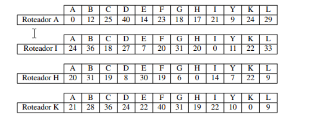 Prova 2 – Protocolos 1) Controle de fluxo: a) Qual é a finalidade do controle de fluxo? b) Explique através de um exemplo como o controle de fluxo do TCP é implementado. Não se esqueça de indicar claramente que informações são utilizadas e como estas informações são obtidas. 2) Aponte as diferenças entre TCP e UDP. 3) Qual o problema que ocorreria caso não houvesse temporização no TCP?. 4) Uma máquina em uma rede TCP/IP é caracterizada pelo endereço IP 128.138.243.100 e máscara 255.255.255.192. Determine o número da rede, o endereço de broadcast dessa rede, o primeiro e último endereços IPs válidos para máquinas nessa rede. 5) Uma rede emprega roteamento por vetor de distância (Bellman-Ford, Ford- Fulkerson). Determine a tabela de roteamento do roteador Y considerando que neste instante o roteador Y recebe os seguintes vetores de distância de seus 4 vizinhos imediatos (A, I, H e K). Os tempos são fornecidos em milisegundos (msec) Sabe-se ainda que o roteador Y mediu os seguintes atrasos em relação a seus vizinhos : 8 msec para o roteador A, 10 msec para o roteador I, 12 msec para o roteador H e 6 msec para o roteador K. 6) Supondo que duas máquinas, A e B, através de uma conexão TCP, desejam trocar entre si o conjunto de dados abaixo: – Máquina A envia 50 bytes de dados para a máquina B ; – Máquina B envia 10 bytes de dados para a máquina A ; – Máquina A envia 20 bytes de dados para a máquina B ; – Máquina A envia 30 bytes de dados para a máquina B ; – Máquina B envia 90 bytes de dados para a máquina A ; – Máquina B envia 50 bytes de dados para a máquina A ; Desenhe de forma esquemática a sequência de mensagens trocados entre essas duas máquinas, incluindo as de abertura e encerramento de conexão. Supor que a máquina A solicita a abertura e o encerramento da conexão. Considere que o número de sequência proposto por A seja 300 e que o número de sequência proposto por B seja 100. Deixe claro, para cada mensagem trocada, incluindo o estabelecimento e o encerramento de conexão, o número de sequência dos dados (SEQ), o número de sequência do ACK, e os flags utilizados (SYN, ACK, FIN). 7) Os caminhos que levam à Região Norte do Brasil são sempre problemáticos em função da quantidade e qualidade das estradas. A Região também possui uma grande bacia hidrográfica, o que impede a construção de estradas em alguns trechos. Um atleta da FATEC Americana que foi aprovado na disciplina de Protocolos deseja fazer o percurso de bicicleta da Cidade de Goiás até a cidade de Boa Vista, em Roraima. Determine a menor distância que esse aventureiro deverá percorrer para atingir o seu objetivo através do Algoritmo de Dijkstra. Apresente os passos do desenvolvimento do Algoritmo através de uma tabela ou de figuras. 8) Suponha que os seguintes caminhos estão intransitáveis devido às chuvas: AM- Boa Vista, AM-PA, TO-PA e MT-TO. Recalcule o trajeto do ciclista. 9) Seja o mapa com algumas das cidades do estado de São Paulo mostrado abaixo e uma tabela de distâncias. Apresente o grafo resultante. 10) Calcule a distância e o caminho entre as cidades de Araçatuba e Ourinhos através do algoritmo de Dijkstra.