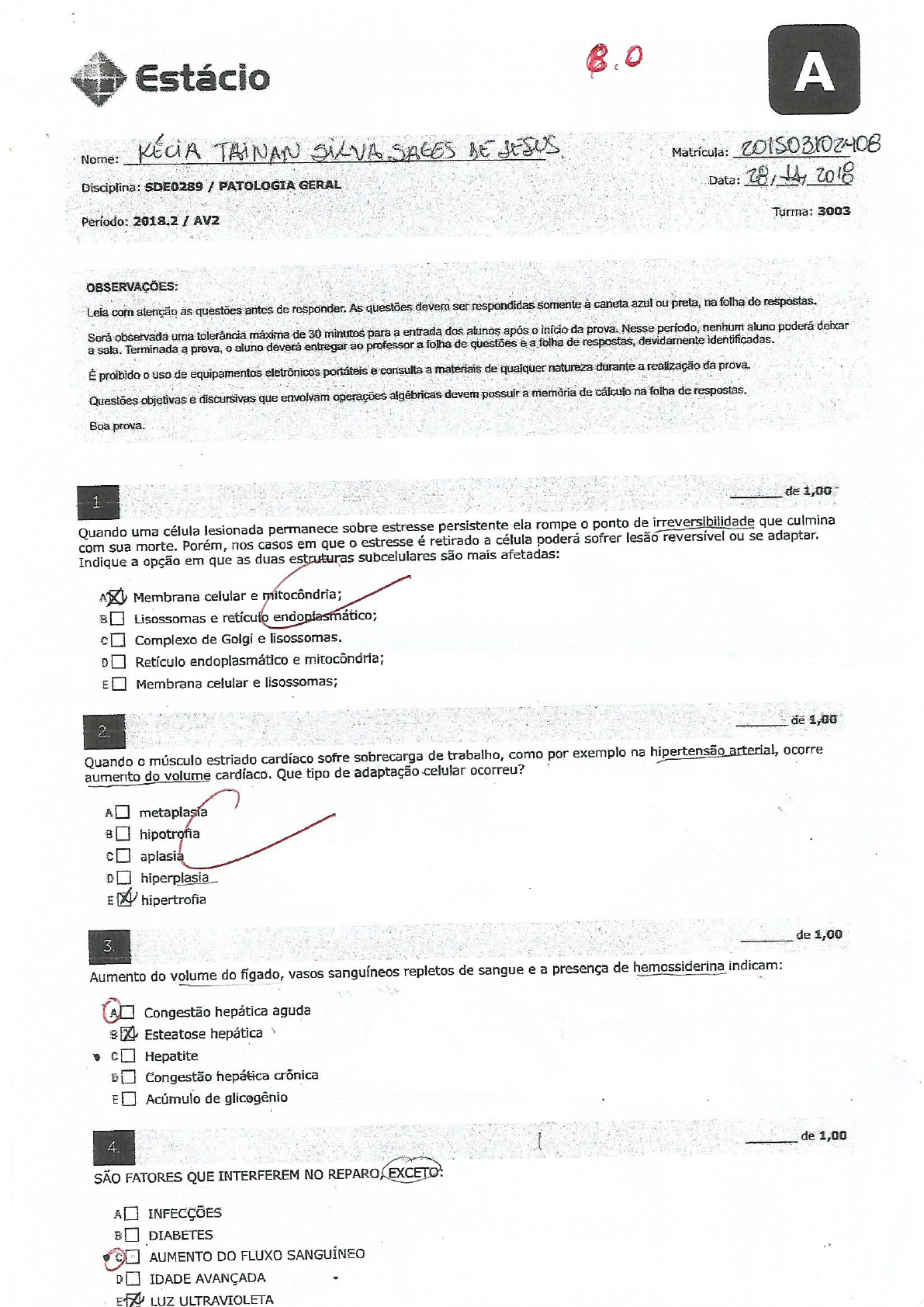 8 Qual é a diferença entre patologia geral e patologia especial?(1 ponto) A) Patologia geral estuda as doenças em geral, enquanto patologia especia...