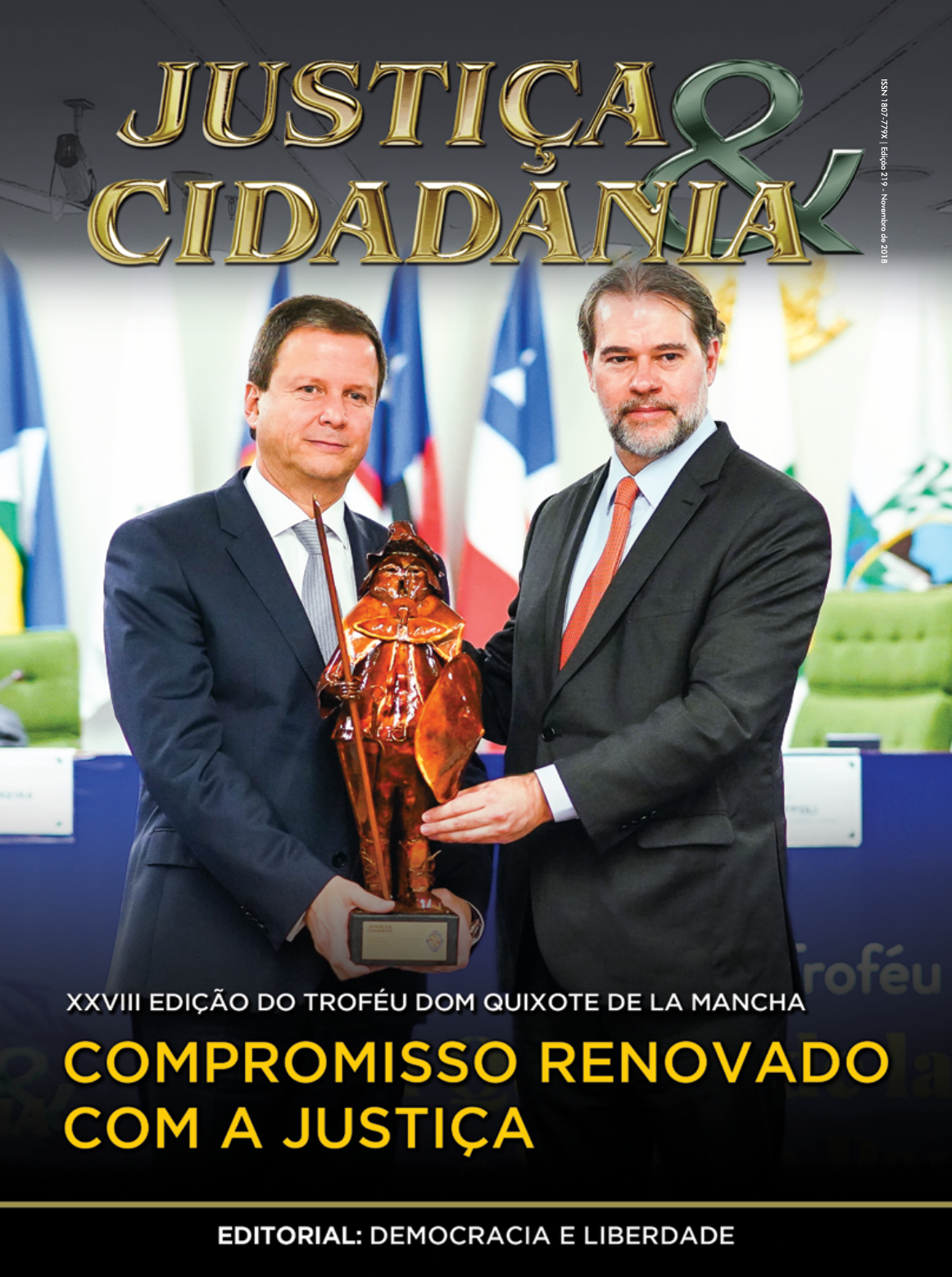 2018 Novembro | Justiça & Cidadania 32 Justiça & Cidadania | Novembro 2018 6 Editorial: Democracia e liberdade 17 A Constituição como bússola da sociedade 18 Ativismo judicial: para quem e por quê? 22 Da jurisprudência aos precedentes 29 STJ debate o agronegócio 34 Os paradoxos da Democracia Ideológica 38 IV Seminário de Direito das Empresas em Dificuldade 40 Em foco: Onde a mãe chora e a Justiça não vê 44 Justa: Entrevista com Maria Cristina Zucchi, primeira mulher no Órgão Especial do TJSP 48 Dom Quixote: Entrevista com o juiz federal Vladimir Vitovsky”: Justiça que se faz presente nas comunidades 51 Competência jurisdicional da Justiça Federal na ação de execução fiscal: breve análise 54 Defensoria Pública: resolução extrajudicial de demandas e gestão constitucional de recursos financeiros em tempos de crise 58 A evolução da Análise Econômica do Direito no Brasil 62 Espaço OAB: A mediação como caminho 64 Improbidade administrativa e sua repercussão na inelegibilidade eleitoral 8 Capa: Homenagem à coragem, renúncia e competência S umário Foto: Lucas Pricken 2018 Novembro | Justiça & Cidadania 5 Instituições parceiras facebook.com/editorajc Edição 219 • Novembro de 2018 • Capa: Celso Junior Conselho Editorial Adilson Vieira Macabu Alexandre Agra Belmonte Ana Tereza Basilio André Fontes Antônio Augusto de Souza Coelho Antônio Souza Prudente Aurélio Wander Bastos Benedito Gonçalves Carlos Ayres Britto Carlos Mário Velloso Cármen Lúcia Antunes Rocha Cláudio dell’Orto Dalmo de Abreu Dallari Darci Norte Rebelo Enrique Ricardo Lewandowski Erika Siebler Branco Ernane Galvêas Fábio de Salles Meirelles Gilmar Ferreira Mendes Guilherme Augusto Caputo Bastos Henrique Nelson Calandra Humberto Martins Ives Gandra Martins João Otávio de Noronha José Antonio Dias Toffoli José Geraldo da Fonseca José Renato Nalini Julio Antonio Lopes Luis Felipe Salomão Luiz Fernando Ribeiro de Carvalho Luís Inácio Lucena Adams Luís Roberto Barroso Luiz Fux Marco Aurélio Mello Marcus Faver Marcus Vinicius Furtado Coêlho Maria Cristina Irigoyen Peduzzi Maria Elizabeth Guimarães Teixeira Rocha Maurício Dinepi Mauro Campbell Maximino Gonçalves Fontes Nelson Tomaz Braga Ney Prado Paulo de Tarso Sanseverino Paulo Dias de Moura Ribeiro Peter Messitte Ricardo Villas Bôas Cueva Roberto Rosas Sergio Cavalieri Filho Sidnei Beneti Siro Darlan Sylvio Capanema de Souza Thiers Montebello Tiago Salles Bernardo Cabral Presidente 1921 - 2016 • Orpheu Santos Salles Av. Rio Branco, 14 / 18o andar Rio de Janeiro – RJ CEP: 20090-000 Tel./Fax (21) 2240-0429 editorajc@editorajc.com.br www.editorajc.com.br ISSN 1807-779X Tiago Salles Editor-Executivo Erika Branco Diretora de Redação Diogo Tomaz Coordenador de Produção Rafael Rodrigues Reportagem Ada Caperuto Jornalista colaboradora Luci Pereira Expedição Correspondente: Manaus Julio Antonio Lopes Av. André Araújo, 1924-A – Aleixo Manaus – AM CEP: 69060-001 Tel.: (92) 3643-1200 CTP, Impressão e Acabamento Edigráfica Associação dos Magistrados Brasileiros E sp e cia l: U m a H o m e n a g e m a S Á LV IO D E F IG U E IR E D O 4 Ano II - nº 4 - Outubro 2007 Conselho dos Tribunais de JusTiça ADVOCACIA SÃO PAULO Avenida Brigadeiro Faria Lima, 1478/1201 – Jardim Paulistano – (55) 11 3815 9475 www.gcoelho.com.br GONÇALVES COELHO 6 Justiça & Cidadania | Novembro 2018 que chegou este ano à XXVIII edição. Foram home- nageadas as 18 personalidades do mundo jurídico que mais se destacaram na defesa da ética, da Justiça e dos direitos da cidadania. Além dos premiados nas categorias Quixote (símbolo da luta incansável por Justiça) e Sancho (símbolo da lealdade e da fidelida- de), este ano a Confraria Dom Quixote instituiu a Medalha de Mérito Justiça & Cidadania, para conti- nuar a homenagear os confrades que, agraciados em edições anteriores, mantiveram acesa a chama da luta por uma sociedade mais justa. A revista traz ainda reportagens sobre o simpósio realizado em parceria com o STJ para discutir as perspectivas do agronegócio; mostra como foi o IV Seminário das Empresas em Dificuldades, na OAB- -RJ; e conta o drama das mães que continuam encar- ceradas, em todo o país, a despeito do habeas corpus do STF que lhes concedeu o direito de aguardar o julgamento em prisão domiciliar. Tudo isso além dos artigos de nossos convidados e parceiros, que discu- tem com a qualidade científica e editorial de sempre alguns dos assuntos mais vibrantes do momento, numa edição que tem como tema central a liberdade. Boa leitura! E ditorial, por Tiago Salles Democracia e liberdade O jogo democrático foi jogado e chegou ao justo resultado. Saudamos o novo presi-dente da República, governadores e par-lamentares eleitos com votos sincero de que possam ajudar o Brasil a retomar o seu desenvol- vimento. Sempre com coragem, união e liberdade, respeito à Constituição Federal e a todas as demais instituições forjadas pelo esforço abnegado de gera- ções de brasileiros. De muito bom grado ouvimos no discurso do presidente eleito Jair Bolsonaro, logo após a procla- mação do resultado, que teremos um governo “cons- titucional e democrático”, comprometido com a de- fesa dos direitos do cidadão e da liberdade enquanto princípio fundamental, incluindo a liberdade de ir e vir, político e religiosa, de informar, de ter opinião e de fazer escolhas. Estaremos atentos ao cumprimen- to deste compromisso. Passado o momento de paixão, tão próprio às dis- putas eleitorais, todos devemos agora curar as feridas para seguir em frente, pensando sempre naquilo que é melhor para nosso país, com Justiça e democracia. Não podemos deixar de registrar, contudo, o descabi- mento de decisões tomadas no calor da reta final das eleições – prontamente repelidas pelas cortes superio- res de Justiça – no sentido de censurar a liberdade de pensamento de alunos e professores do ensino supe- rior, 