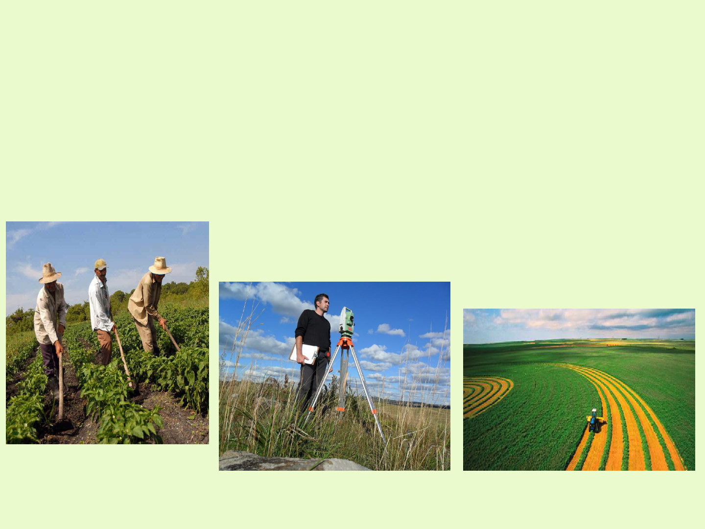 Topografia: Importância para a Agricultura Docente: Me. Jakeline Rosa de Oliveira Definição Topografia = descrição exata e minuciosa de um lugar. Finalidade Determinar o contorno, dimensão e posição relativa de uma porção limitada da superfície terrestre (raio de 30 km), sem considerar o efeito da curvatura terrestre. Geodésia É uma ciência que se ocupa dos processos de medição e especificações para o levantamento e representação cartográfica de uma grande extensão da superfície terrestre, levando-se em consideração a curvatura terrestre. Diferenças entre Topografia e Geodésia TOPOGRAFIA GEODÉSIA Extensões limitadas Grandes extensões Planta ou desenho Carta ou mapa Não leva em consideração a curvatura da terra Leva em consideração a curvatura terrestre Modelos Terrestres No estudo da forma da terra,podemos considerar 4 formas: Modelo real- altas deformações; Modelo Geoidal- acompanha a superfície dos mares; Modelo Elipsoidal – É definido pelas coordenadas geográficas; Modelo esférico- foge da realidade,porém é o mais usual e simplificado. Modelo Geoidal Modelo Elipsoidal Modelo Esférico Rede Cartográfica Conjunto formado pelos paralelos e meridianos, ou seja as linhas que cobrem o globo terrestre e permitem a localização de algo ou alguém em qualquer ponto da superfície terrestre Meridianos e Paralelos Coordenadas Geográficas Com base na rede geográfica, podemos determinar as coordenadas, ou seja, a latitude e a longitude, de qualquer ponto situado sobre a superfície terrestre. Para determinação da latitude, são considerados os paralelos, enquanto que para a longitude levamos em consideração os meridianos. Divisões da Topografia Topometria É o conjunto de métodos empregados para a coleta de dados, dados estes para o cálculo e representação gráfica de parte da superfície terrestre. Planimetria É a representação em projeção horizontal dos detalhes naturais e artificiais, (planta baixa ). Altimetria É a determinação das distâncias verticais de um certo número de pontos sobre a superfície a ser levantada, tendo como referência o nível médio dos mares ou o próprio plano topográfico. Planialtimetria: Planimétrico + Altimétrico Topologia Tem por objetivo o estudo das formas exteriores da superfície terrestre e das leis a que rege o seu modelado. Sua aplicação principal é na representação da altimetria pelas curvas de nível, que são as intersecções obtidas por planos eqüidistantes paralelos ao plano de representação. Taqueometria Tem por finalidade a determinação das distâncias horizontais e verticais, de maneira indireta, através da resolução de triângulos retângulos situados no plano vertical. Sua principal utilização é em terrenos acidentados onde a determinação direta torna-se inviável Taqueometria FALAR EQUIPAMENTOS TEODOLITO Grandezas Medidas num Levantamento Topográfico Grandezas Angulares Ângulo Horizontal (Hz): é medido entre as projeções de dois alinhamentos do terreno, no plano horizontal. Grandezas Medidas num Levantamento Topográfico Grandezas Angulares Azimute É o ângulo formado entre a porção Norte do até a direção considerada, no sentido horário, ou por leste. Varia de 0° a 360°. Rumo o ângulo horizontal que parte do norte ou do sul no sentido horário ou anti-horário até o alinhamento desejado, varia de 0° a 90°, podendo ser NE (Nordeste), NO (Noroeste), SE (Sudeste), SO (Sudoeste) e pode ser rumo verdadeiro ou magnético dependendo de sua partida. Grandezas Medidas num Levantamento Topográfico Desenhar no quadro Grandezas Medidas num Levantamento Topográfico Grandezas Angulares Ângulo Vertical (): é medido entre um alinhamento do terreno e o plano do horizonte. Pode ser ascendente (+) ou descendente (-), conforme se encontre acima (aclive) ou abaixo (declive) deste plano. Grandezas Medidas num Levantamento Topográfico Grandezas Angulares Zênite: ponto da esfera celeste na vertical da nossa cabeça. Nadir: o ponto da esfera terrestre diretamente abaixo do observador e diretamente oposto ao zênite. Grandezas Medidas num Levantamento Topográfico Grandezas Angulares Zênite: ponto da esfera celeste na vertical da nossa cabeça. Nadir: o ponto da esfera terrestre diretamente abaixo do observador e diretamente oposto ao zênite. Grandezas Medidas num Levantamento Topográfico Grandezas Angulares Zênite e Nadir: Grandezas Medidas num Levantamento Topográfico Grandezas Lineares Distância Horizontal (DH): distância medida entre dois pontos, no plano horizontal. Distância Vertical ou Diferença de Nível (DV ou DN): distância medida entre dois pontos, num plano vertical que é perpendicular ao plano horizontal. Distância Inclinada (DI): distância medida entre dois pontos, em planos que seguem a inclinação da superfície do terreno. Desenhar no quadro Importância para a Agricultura Aplicação na Agricultura Curvas de Nível É uma maneira de representar graficamente as irregularidades, ou o relevo, de um terreno É considerada uma linha ou curva imaginaria, ou a linha geométrica no terreno de pontos que tem a mesma cota ou altitude. Aplicação na Agricultura Curvas de Nível Elevação : superfícies nas quais as curvas de nível de menor valor envolvem as de maior valor. Aplicação na Agricultura Curvas de Nível Depressão: superfícies nas quais as curvas de nível de maior valor envolvem as de menor valor. Aplicação na Agricultura Características das Curvas de Nível Todos os pontos de uma mesma curva tem a mesma elevação ou cota Duas curvas de nível nunca se cruzam Aplicação na Agricultura Características das Curvas de Nível Duas curvas de nível não podem se encontrar e continuar numa só Uma curva de nível inicia e termina nomesmo ponto, portanto, ela não pode surgir do nada e desaparecer repentinamente. Aplicação na Agricultura Cultivo em Nível Realizar cultivos em nível significa fazer as operações de prepar