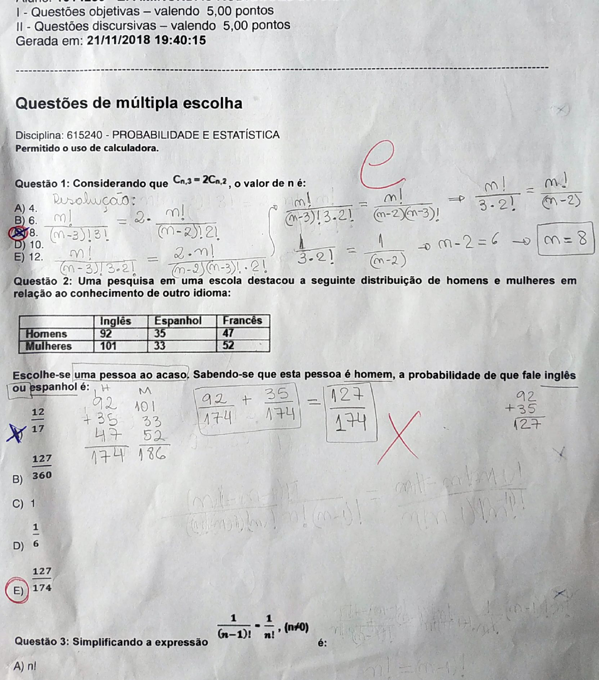 Probabilidade e Estatística - Prova 1 - Pagina 1