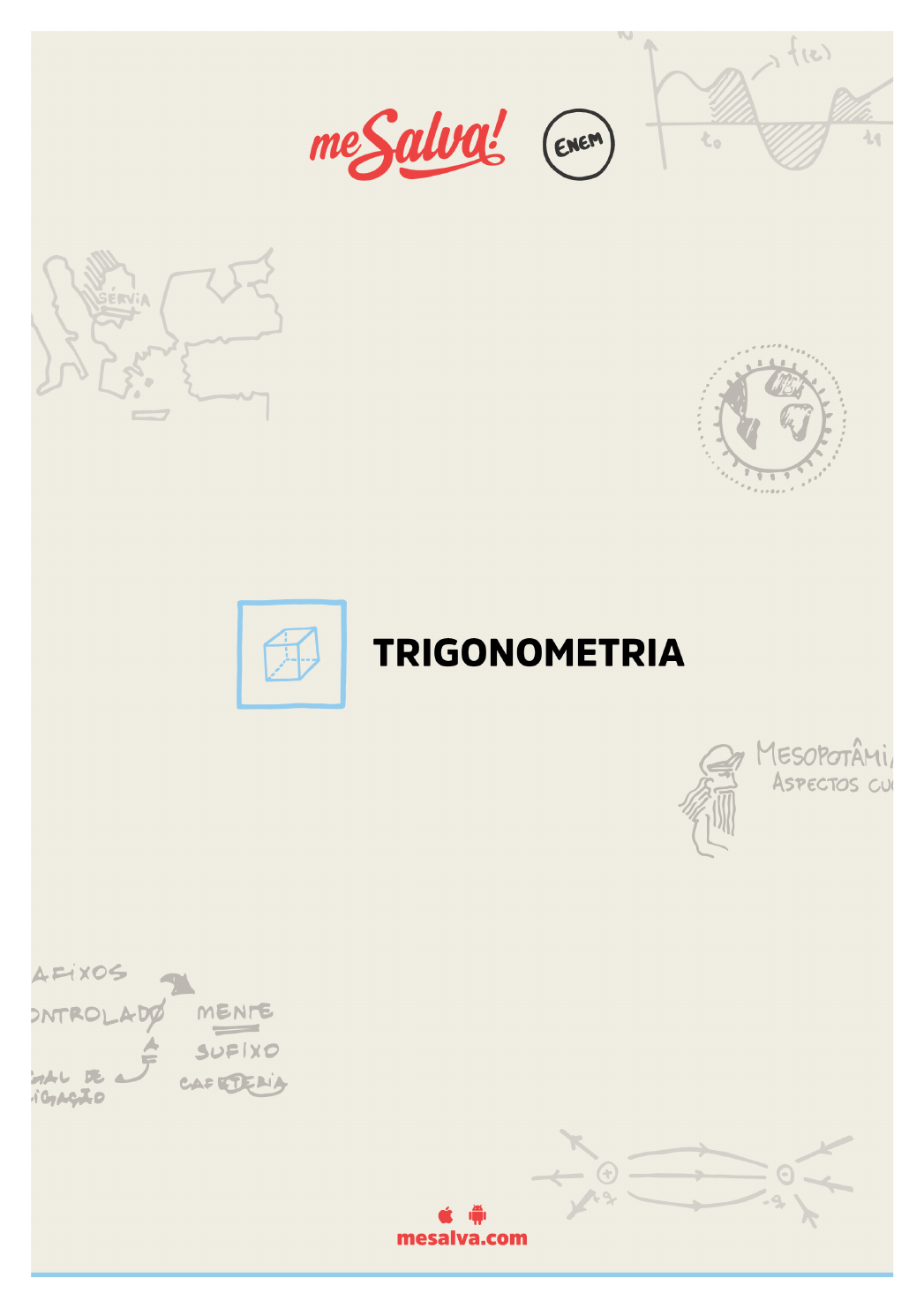 M Ó D U L O S C O N T E M P L A D O S ü RADT - Introdução, radianos, círculo trigonométrico ü SENC - Seno, cosseno e tangente ü RTRG - Outras relações trigonométricas ü PQDA - Relações e equações trigonométricas ü ETRG - Exercícios de trigonometria ü TARC - Transformações de arcos ü TRGI - Funções trigonométricas inversas ü FUTR - Funções trigonométricas (gráficos e translações) C U R S O E X T E N S I V O 2 0 1 7 D I S C I P L I N A M A T E M Á T I C A C A P Í T U L O T R I G O N O M E T R I A P R O F E S S O R E S T A M A R A S A L V A T O R I E A R T H U R L O V A T O T R I G O N O M E T R I A Se você costuma viajar de carro ou de ônibus provavelmente já se deparou com a placa abaixo: Essa placa indica um declive acentuado e é bastante comum que a encontremos em regiões montanhosas. Normalmente, você percebe que está em um local desses quando começa a sentir um cheiro forte de lonas de freio ou de pneu queimado e quando vê que os caminhões pesados estão numa velocidade bem mais reduzida do que os demais veículos, tanto ao descer (direção onde está a placa), quanto ao subir, na direção contrária. Claro que não é apenas na estrada que nos deparamos com ruas inclinadas. Você, se mora ou se já visitou uma cidade montanhosa, provavelmente já precisou traçar um roteiro que evitasse passar caminhando por um morro terrível, não? Ainda, talvez você já tenha se deparado com algum morro e pensado “essa rampa tem quase 90º”, certo? Veja um exemplo de uma inclinação que nos faria pensar isso na foto abaixo, de uma rua de São Francisco, EUA: Pois, para a surpresa de todos, saiba que a rua mais inclinada do mundo fica na Nova Zelândia, com 19º de inclinação (Lang, 2007). Portanto, essa da foto tem uma inclinação menor do que 19º, apesar de parecer muito mais! Devido a essa inclinação essa rua nos EUA possui degraus nas laterais para que as pessoas possam transitar por ela com menos dificuldade. Para garantir a segurança da população, o Departamento Nacional de Infra-estrutura de Transportes (DNIT) propõe que as estradas tenham entre 3 e 5º de inclinação, apenas. Caso a rua/via tenha mais do que isso, alguns veículos não poderão trafegar por ela, como é o caso de uma rua no centro de Porto Alegre (RS), que tem 16º de inclinação e onde é proibida a passagem de caminhões. Outro caso é a Serra do Rio do Rastro (SC) em que, devido à inclinação de 10º, seu asfalto possui ranhuras para facilitar a subida e descida de veículos (Lang, 2007). Veja abaixo uma imagem da Serra: Perceba que 10º caracteriza uma inclinação bem importante e que se fosse algo em torno de 90º certamente seria inviável tentar transitar por ela, certo? Mas, já que isso é tão importante, como se “descobre” qual é a inclinação de uma rua? Como é medido esse ângulo? É isso que veremos a seguir, mas antes precisaremos abordar alguns conceitos iniciais de trigonometria: seno, cosseno e tangente. S E N O , C O S S E N O E T A N G E N T E Para iniciar o nosso estudo de seno, cosseno e tangente vamos analisar uma rua inclinada que uma pessoa precisa subir para chegar até em casa. A altura da casa dela é de 18 m em relação ao nível mais baixo da rua e entre o início e o final da rampa há uma distância (afastamento entre a pessoa e a casa no nível mais baixo da rua) de 100 m. Veja a ilustração abaixo: Lembre que sempre que estamos tentando resolver problemas matemáticos é importante encontrar relações, como de proporcionalidade, triângulos semelhantes, etc. Perceba que podemos traçar um triângulo retângulo que tem como hipotenusa a rua inclinada, certo? Observe as linhas pontilhadas da figura: Como o nosso objetivo é realizar um estudo sobre o ângulo de inclinação da rampa, vamos nomear cada lado do triângulo formado por ela de uma forma bastante intuitiva. O lado que a pessoa precisa caminhar para chegar até a casa será chamado de “percurso”, o lado que indica a distância entre a casa e o nível da rua de “altura” e a base do triângulo será denominada “afastamento”. Veja como fica o desenho: Numa representação simplificada teremos o seguinte triângulo: Podemos dividir tanto o valor de afastamento quando o valor de altura em quatro partes, indicando as quatro partes correspondentes a elas no percurso pelas letras A, B, C e D. A partir de conceitos de proporcionalidade e de semelhança de triângulos podemos calcular um índice que relaciona o afastamento e a altura em cada um dos pontos do percurso, veja: Perceba que o índice de subida é o mesmo em cada um dos pontos e por isso não depende do tamanho do triângulo (ou da rampa/rua) mas sim da inclinação dele. Perceba também que o valor do índice de subida é diretamente proporcional à inclinação, ou seja, quanto maior o valor do índice, maior é a inclinação e, portanto, maior o ângulo. Esse índice de subida é associado à tangente (tan) do ângulo de inclinação, ou seja, o valor que encontramos de 0,18 é o valor da tangente do ângulo do triângulo. A representação é: Mas cuidado! O ângulo não é 0,18. Esse valor é a tangente do ângulo e para descobrirmos qual é normalmente recorremos às tabelas dos livros ou à calculadora, realizando uma operação chamada de arco tangente (arctan). Veja a representação para o caso 0,18: Esse valor foi calculado a partir de uma calculadora científica. Caso você não tenha uma agora, utilize seu celular (nas opções normalmente é possível transformar a calculadora convencional em científica) ou o site Wolfram Alpha (http://wolframalpha.com/). Lembre que os lados do triângulo que nomeamos anteriormente podem ser renomeados como: Então, generalizando, a tangente de um ângulo é calculada como: Caso invertêssemos essa relação chegaríamos a uma outra, denominada cotangente (cotg), que é a inversa da tangente. Veja: Cuidado! Não confunda arco tangente (a funç