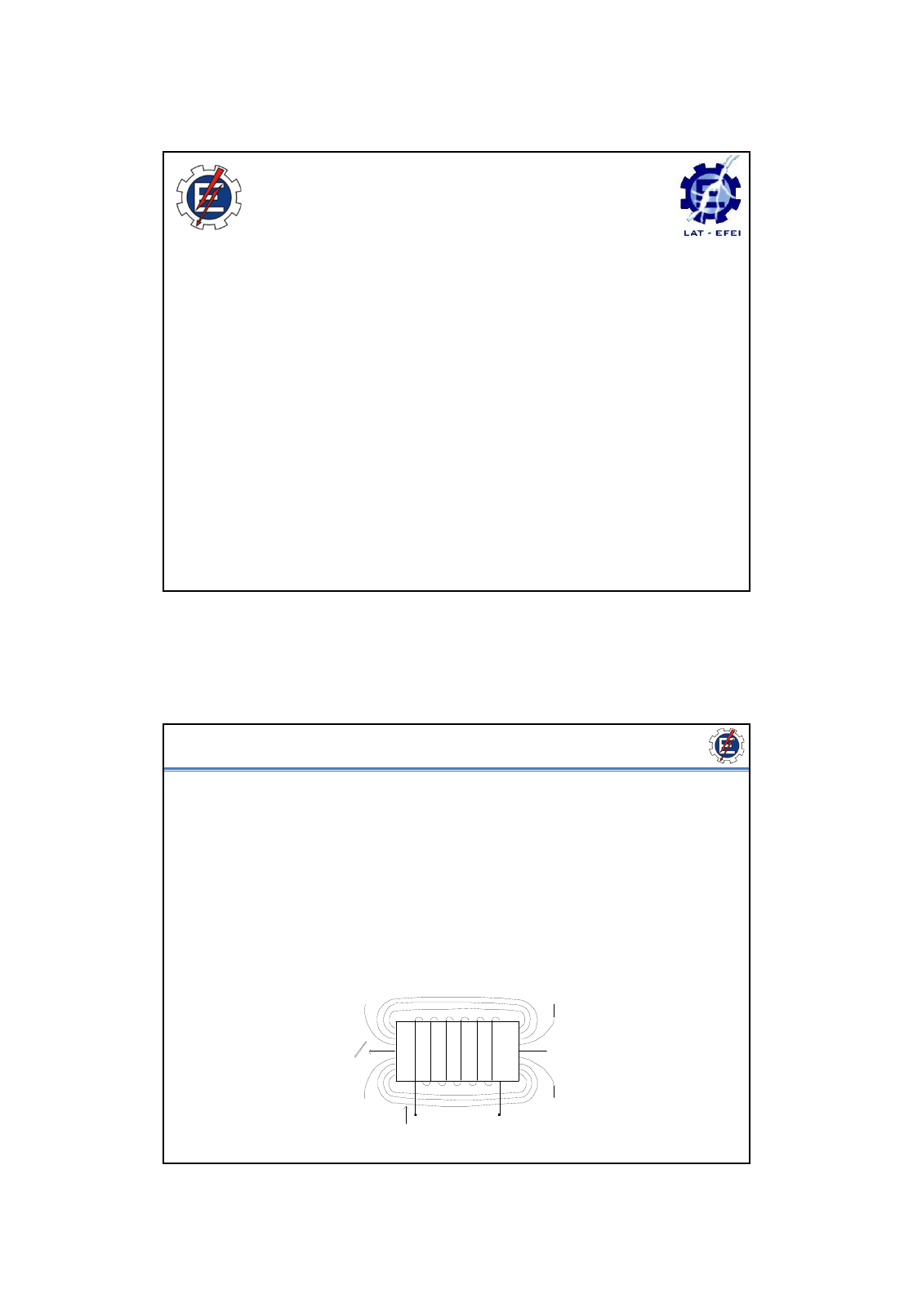 02/08/2018 1 Universidade Federal de Itajubá ISEE – Instituto de Sistemas Elétricos e Energia ELE 401 – CIRCUITOS MAGNÉTICOS 2º Semestre 2018 1. Fluxo Enlaçado, Indutâncias Próprias e Mútuas, Coeficiente de Acoplamento Prof. Gustavo Paiva Lopes 1. Conceitos Básicos 2 1.4 Fluxo Enlaçado Considere uma barra de ferro envolvida por uma bobina com “N” espiras, formando um eletroímã, conforme figura a seguir. De outra forma: um eletroímã consiste em uma bobina enrolada sobre um núcleo ferromagnético que tem como objetivo concentrar as linhas de campo. i N O a b 02/08/2018 2 1. Conceitos Básicos 3 1.4 Fluxo Enlaçado Para uma corrente “i” injetada no terminal “a” da bobina, obtém-se o fluxo “ϕ”. Este fluxo enlaça ou concatena as “N” espiras da bobina. O termo enlaçar significa encadear, juntar ou ligar. Portanto: Onde: ߣ = fluxo enlaçado. ܰ = número de espiras. ∅ = fluxo magnético produzido no material. i N O a b ߣ ൌ ܰ ߶ 1. Conceitos Básicos 4 1.4 Fluxo Enlaçado Qual a unidade para o fluxo enlaçado (ߣ)? Outros exemplos de fluxo enlaçado: Basta verificar o número de espiras que o fluxo enlaça. ߣ ൌ ܹܾ݁݁ݎ · ݁ݏ݅ݎܽ ൌ ሾܹܾ · ݁ݏሿ (1) (3) (2) (4) o o1 2 ߣଵ ൌ? ߣଶ ൌ? ߣଷ ൌ? ߣସ ൌ? 02/08/2018 3 1. Conceitos Básicos 5 1.4 Fluxo Enlaçado Considere a bobina a seguir, que possui 3 espiras. Qual o valor da tensão induzida “e”? Portanto, para uma bobina de “N” espiras, tem-se: e1 e2 e3 a be N=3 Cada vez que um fluxo variável no tempo atravessa uma espira, este produz uma tensão induzida. ݁ ൌ ݁ଵ ݁ଶ ݁ଷ ݁ ൌ െ݀∅݀ݐ െ ݀∅ ݀ݐ െ ݀∅ ݀ݐ ൌ െ3 ݀∅ ݀ݐ ݁ ൌ െܰ݀∅݀ݐ 1. Conceitos Básicos 6 1.4 Fluxo Enlaçado Podemos escrever também: Portanto, quando temos um fluxo “ϕ” que atravessa um conjunto de “N” espiras, este recebe o nome de fluxo enlaçado, “ߣ”. ݁ ൌ െ݀ߣ݀ݐ݁ ൌ െܰ ݀∅ ݀ݐ ൌ െ ݀ሺܰ ∅ሻ ݀ݐ 02/08/2018 4 1. Conceitos Básicos 7 1.5 Indutância Própria Considere uma bobina de “N” espiras conforme figura a seguir: Qual a relação existente entre o fluxo enlaçado “ߣ” e a corrente “i” injetada no terminal “a”? Se o meio é linear, o fluxo enlaçado “ߣ” é proporcional à corrente “i”. N a b i ߣ ∝ ݅ 1. Conceitos Básicos 8 1.5 Indutância Própria A constante de proporcionalidade entre o fluxo enlaçado e a corrente é denominada “indutância própria da bobina”, representada pela letra “L”. Esta indutância depende das dimensões, do número de espiras e do meio onde se encontra a bobina. Um circuito ou parte de um circuito que contém uma indutância é denominado indutor. Em outras palavras, um indutor é um elemento passivo projetado para armazenar energia em seu campo magnético. ߣ ൌ ܮ ݅ 02/08/2018 5 1. Conceitos Básicos 9 1.5 Indutância Própria Podemos definir a indutância “L” de um indutor como a razão entre o fluxo enlaçado “ߣ” e a corrente “i” através do indutor. Dimensão da indutância própria: ߣ ൌ ܮ ݅ ܰ߶ ൌ ܮ ݅ ܮ ൌ ܰ߶݅ ܮ ൌ ܹܾ݁݁ݎ · ݁ݏ݅ݎܽሾܣ݉èݎ݁ሿ ൌ ܪ݁݊ݎݕ ൌ ሾܪሿܮ ൌ ߣ ݅ 1. Conceitos Básicos 10 1.5 Indutância Própria Se a corrente “i” injetada for variável no tempo, esta produzirá um fluxo enlaçado também variável no tempo. Desta forma, temos: Através da Lei de Lenz-Faraday: Portanto: ߣ ൌ ܮ ݅ ݀ߣ݀ݐ ൌ ܮ ݀݅ ݀ݐ ݁ ൌ െܰ݀∅݀ݐ ݁ ൌ െ ݀ߣ ݀ݐ െ݁ ൌ ܮ ݀݅݀ݐ ݁ ൌ െܮ ݀݅ ݀ݐ 02/08/2018 6 1. Conceitos Básicos 11 1.5 Indutância Própria Portanto, conclui-se que existe uma queda de tensão na bobina como efeito de sua indutância própria. De outra forma, a indutância consiste na propriedade de uma bobina se opor a qualquer variação de corrente. ݁ ൌ െܮ ݀݅݀ݐ 1. Conceitos Básicos 12 1.5 Indutância Própria 1.5.1 Fatores de Influência da Indutância Embora a indutância “L” de um indutor seja a razão entre o fluxo enlaçado e a corrente injetada em seus terminais, esta indutância depende de suas características construtivas. É importante observar também que a indutância não é linear no caso de materiais ferromagnéticos onde, devido a saturação, a indutância pode apresentar valores variáveis com a corrente. ܮ ൌ ߣሺ݅ሻ݅ 02/08/2018 7 1. Conceitos Básicos 13 1.5 Indutância Própria 1.5.1 Fatores de Influência da Indutância Por exemplo, para o indutor apresentado a seguir, também conhecido como eletroímã ou solenoide, temos os seguintes fatores de influência: 1) Número de espiras – N: 2) Área da seção – A: 3) Comprimento – l: 4) Permeabilidade do material do núcleo – ߤ: ܮ ∝ ܰଶ ܮ ∝ 1݈ ܮ ∝ ߤ ܮ ∝ ܣ 1. Conceitos Básicos 14 1.5 Indutância Própria 1.5.1 Fatores de Influência da Indutância Portanto, a equação para o cálculo da indutância em um solenoide em função das características construtivas: Onde: ܮ = indutância em henrys (H). ܣ = área da seção transversal do indutor (solenoide) em (m2). ܰ = número de espiras. ݈ = comprimento do solenoide em metros (m). ߤ = permeabilidade do material do núcleo (H/m). ܮ ൌ ߤ ܣ ܰ ଶ ݈ 02/08/2018 8 1. Conceitos Básicos 15 1.6 Indutância Mútua A indutância mútua retrata o efeito de uma bobina com corrente sobre uma ou mais bobinas adjacentes. Quando dois ou mais circuitos com ou se contato entre eles se afetam por meio dos campos magnéticos, diz-se que estão acoplados magneticamente. Pode-se concluir até o presente momento que todos os equipamentos elétricos citados como exemplos de circuitos magnéticos possuem indutâncias próprias e a grande maioria deles também apresentam indutâncias mútuas. 1. Conceitos Básicos 16 1.6 Indutância Mútua As indutâncias mútuas são bastante comuns em linhas de transmissão que percorrem a mesma faixa de servidão, influenciando diretamente nos estudos que envolvem