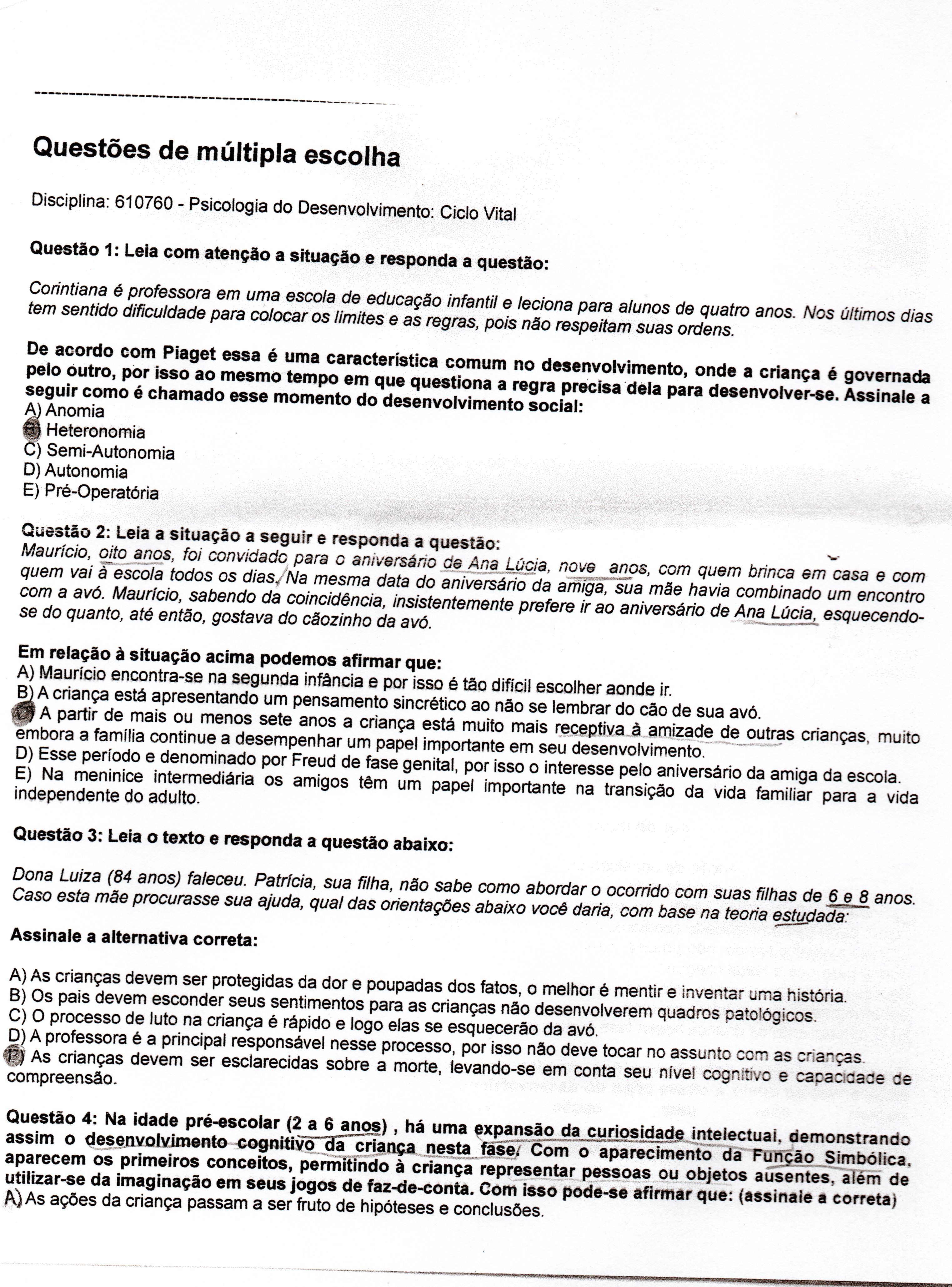 Desenvolvimento x Aprendizagem: marque a alternativa errada. A psicologia do desenvolvimento estuda vários aspectos: motor, emocional, intelectua...