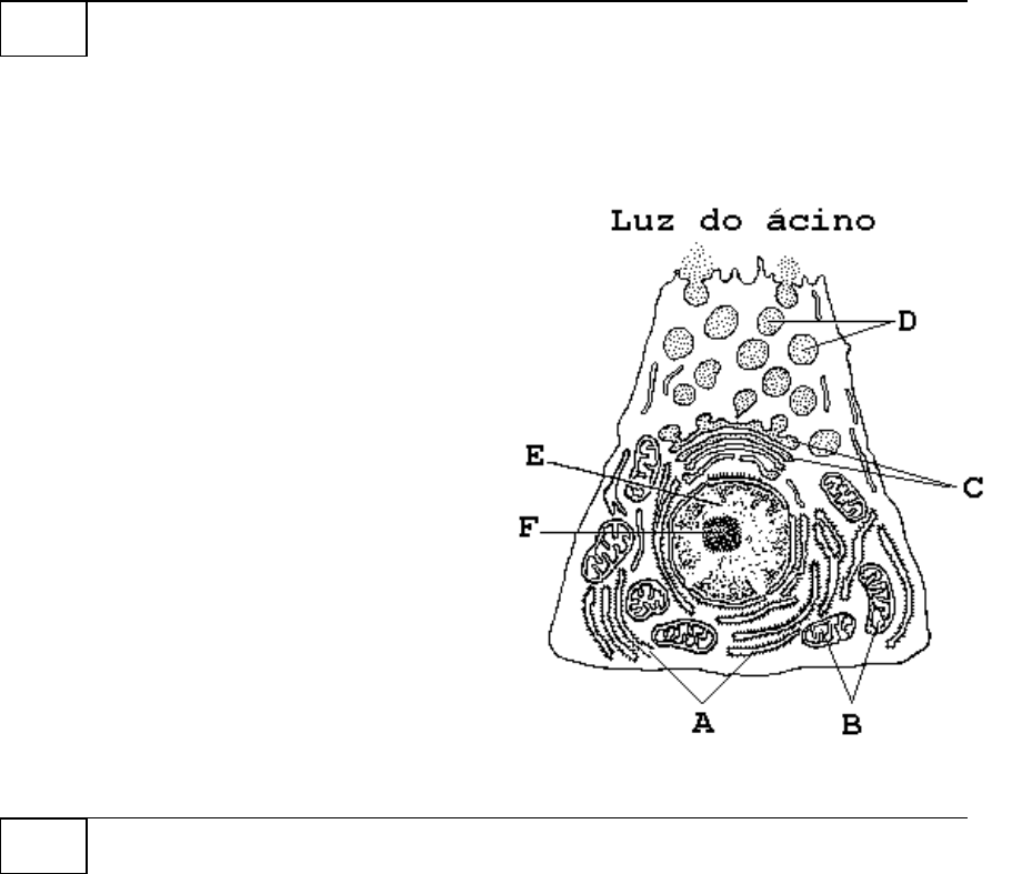 FUVEST 1999 – Prova de Biologia - 1 - Q.01 O esquema a seguir representa um corte de célula acinosa do pâncreas, observado ao microscópio eletrônico de transmissão. a) Identifique as estruturas apontadas pelas setas A, B, e C, e indique suas respectivas funções no metabolismo celular. b) Por meio da ordenação das letras indicadoras das estruturas celulares, mostre o caminho percorrido pelas enzimas componentes do suco pancreático desde seu local de síntese até sua secreção pela célula acinosa. Q.02 Em certa linhagem celular, o intervalo de tempo entre o fim de uma mitose e o fim da mitose seguinte é de 24 horas. Uma célula dessa linhagem gasta cerca de 12 horas, desde o início do processo de duplicação dos cromossomos até o início da prófase. Do fim da fase de duplicação dos cromossomos até o fim da telófase, a célula gasta 3 horas e, do início da prófase até o fim da telófase, ela gasta 1 hora. Com base nessas informações, determine a duração de cada uma das etapas do ciclo celular (G1, S, G2 e mitose) dessas células. FUVEST 1999 – Prova de Biologia - 2 - Q.03 Em vegetais, as taxas de fotossíntese e de respiração podem ser calculadas a partir da quantidade de gás oxigênio produzido ou consumido num determinado intervalo de tempo. O gráfico ao lado mostra as taxas de respiração e de fotossíntese de uma planta aquática, quando se varia a intensidade luminosa. a) Em que intensidade luminosa, o volume de gás oxigênio produzido na fotossíntese é igual ao volume desse gás consumido na respiração? b) Em que intervalo de intensidade luminosa, a planta está gastando suas reservas? c) Se a planta for mantida em intensidade luminosa “ r ” , ela pode crescer? Justifique. Q.04 Ana e Maria são gêmeas idênticas. Maria, aos 10 anos, teve seus dois ovários removidos cirurgicamente e nunca se submeteu a tratamento com hormônios. Atualmente, as gêmeas têm 25 anos de idade e apresentam diferenças físicas e fisiológicas decorrentes da remoção das gônadas. a) Cite duas dessas diferenças. b) Se Maria tivesse sido operada aos 18 anos, as diferenças entre ela e Ana seriam as mesmas que apresentam atualmente? Justifique. FUVEST 1999 – Prova de Biologia - 3 - Q.05 Em cobaias, a cor preta é condicionada pelo alelo dominante D e a cor marrom, pelo alelo recessivo d. Em um outro cromossomo, localiza-se o gene responsável pelo padrão da coloração: o alelo dominante M determina padrão uniforme (uma única cor) e o alelo recessivo m, o padrão malhado (preto/branco ou marrom/branco). O cruzamento de um macho de cor preta uniforme com uma fêmea de cor marrom uniforme produz uma ninhada de oito filhotes: 3 de cor preta uniforme, 3 de cor marrom uniforme, 1 preto e branco e 1 marrom e branco. a) Quais os genótipos dos pais? b) Se o filho preto e branco for cruzado com uma fêmea cujo genótipo é igual ao da mãe dele, qual a proporção esperada de descendentes iguais a ele? Q.06 É comum o cruzamento entre jumento e égua para se obter o híbrido conhecido como burro. Este, apesar de seu vigor físico, é estéril. a) Sabendo-se que o número diplóide de cromossomos do jumento é 62 e o da égua 64, quantos cromossomos devem estar presentes em cada célula somática do burro? b) Com base no conceito biológico de espécie, o jumento e a égua pertencem à mesma espécie? Por quê? FUVEST 1999 – Prova de Biologia - 4 - Q.07 O desenvolvimento da Genética, a partir da redescoberta das leis de Mendel, em 1900, permitiu a reinterpretação da teoria da evolução de Darwin. Assim, na década de 1940, formulou-se a teoria sintética da evolução. Interprete o diagrama ao lado, de acordo com essa teoria. a) Que fator evolutivo está representado pela letra A? b) Que mecanismos produzem recombinação gênica? c) Que fator evolutivo está representado pela letra B? Q.08 Preencha a tabela abaixo, assinalando as características de cada organismo indicado na primeira coluna: Organismo Tipo de célula Número de células Nutrição Procarionte Eucarionte Unicelular Pluricelular Autótrofo Heterótrofo Bactéria Paramécio Anêmona Cogumelo Briófita a) Usando todas e tão somente as características mencionadas na tabela, escolha dois dos organismos citados que podem ser incluídos num mesmo grupo. b) Cite uma característica não mencionada na tabela que diferencie as categorias taxonômicas às quais pertencem os organismos que você agrupou no item a. FUVEST 1999 – Prova de Biologia - 5 - Q.09 A conquista do meio terrestre, pelas plantas, foi possível graças a um conjunto de adaptações. a) Cite duas adaptações dos vegetais terrestres relacionadas à economia de água. b) Que estruturas vegetais permitem a dispersão das pteridófitas e das gimnospermas, independentemente do meio aquático? Q.10 Em determinada região, as populações de capim, preás e cobras constituem uma cadeia alimentar. Medidas das variações no tamanho das três populações, durante certo intervalo de tempo, permitiram a construção dos seguintes gráficos: Elabore uma hipótese plausível para explicar o que aconteceu, nessa região, no intervalo de tempo A – F, identificando as populações representadas, respectivamente, pelos gráficos I, II e III. 27 B io lo g i a Avaliação da Prova de Biologia - Segunda Fase A prova de Biologia do FUVEST-99, foi uma prova muito bem elaborada, abrangente, requerendo o conhecimento básico das várias áreas das Ciências Biológicas, priorizando o raciocínio e não a memorização. As questões, em geral, exigiram mais do que o conhecimento do assunto, isto é, na maioria delas o estudante precisava compreender os conceitos, relacioná-los, analisar e in- terpretar os dados etc. Foram poucas as questões que exigiram apenas conhecimento. Entre elas estavam as questões de zoologia (8), de botânica (9), do item a da questão 1, onde o vestibulando deveria conhecer as organelas e suas funções, e as do item b 