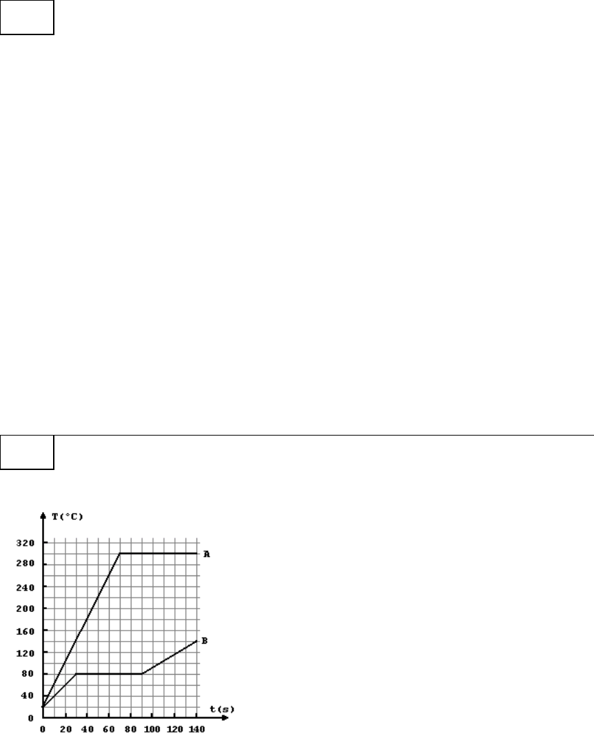 FUVEST 98 – SEGUNDA FASE – PROVA DE FÍSICA Q.01 Estamos no ano de 2095 e a "interplanetariamente" famosa FIFA (Federação Interplanetária de Futebol Amador) está organizando o Campeonato Interplanetário de Futebol, a se realizar em MARTE no ano 2100. Ficou estabelecido que o comprimento do campo deve corresponder à distância do chute de máximo alcance conseguido por um bom jogador. Na TERRA esta distância vale LT = 100m. Suponha que o jogo seja realizado numa atmosfera semelhante à da TERRA e que, como na TERRA, possamos desprezar os efeitos do ar, e ainda, que a máxima velocidade que um bom jogador consegue imprimir à bola seja igual à na TERRA. Suponha que MM/MT = 0,1 e R M/R T =0,5, onde M M e R M são a massa e o raio de MARTE e M T e R T são a massa e raio da TERRA. a) Determine a razão g M/g T entre os valores da aceleração da gravidade em MARTE e na TERRA. b) Determine o valor aproximado L M, em metros, do comprimento do campo em MARTE. c) Determine o valor aproximado do tempo t M, em segundos, gasto pela bola, em um chute de máximo alcance, para atravessar o campo em MARTE (adote g T= 10 m/s 2). Q.02 As curvas A e B na figura representam a variação da temperatura (T) em função do tempo (t) de duas substâncias A e B, quando 50 g de cada uma é aquecida separa- damente, a partir da temperatura inicial de 20ºC, na fase sólida, recebendo calor numa taxa constante de 20 cal/s. Considere agora um experimento em que 50 g de cada uma das substâncias são colocadas em contato térmico num recipiente termicamente isolado, com a substância A na temperatura inicial TA=280ºC e a substância B na temperatura inicial T B = 20ºC. a) Determine o valor do calor latente de fusão L B da substância B. b) Determine a temperatura de equilíbrio do conjunto no final do experimento. c) Se a temperatura final corresponder à mudança de fase de uma das substâncias, determine a quantidade da mesma em cada uma das fases. FUVEST 98 – SEGUNDA FASE – PROVA DE FÍSICA Q.03 Duas cunhas A e B, de massas MA e MB respectivamente, se deslocam juntas sobre um plano horizontal sem atrito, com aceleração constante a r , sob a ação de uma força horizontal F r aplicada à cunha A, como mostra a figura. A cunha A permanece parada em relação à cunha B, apesar de não haver atrito entre elas. a) Determine a intensidade da força F r aplicada à cunha A. b) Determine a intensidade da força N r , que a cunha B aplica à cunha A. c) Sendo qq o ângulo de inclinação da cunha B, determine a tangente de qq. Q.04 No circuito mostrado na Fig. 1, os três resistores têm valores R 1=2W, R 2=20W e R3=5W. A bateria B tem tensão constante de 12V. A corrente i 1 é considerada positiva no sentido indicado. Entre os instantes t=0s e t=100s, o gerador G fornece uma tensão variável V=0,5t (V em volt e t em segundo). a) Determine o valor da corrente i 1 para t=0s. b) Determine o instante t 0 em que a corrente i 1 é nula. c) Trace a curva que representa a corrente i 1 em função do tempo t, no intervalo de 0 a 100s. Utilize os eixos da figura ao lado indicando claramente a escala da corrente, em ampère (A). d) Determine o valor da potência P recebida ou fornecida pela bateria B no instante t=90s. FUVEST 98 – SEGUNDA FASE – PROVA DE FÍSICA Q.05 Na figura abaixo, em escala, estão representados uma lente L delgada, divergente , com seus focos F, e um espelho plano E, normal ao eixo da lente. Uma fina haste AB está colocada normal ao eixo da lente. Um observador O, próximo ao eixo e à esquerda da lente, mas bastante afastado desta, observa duas imagens da haste. A primeira, A 1B1, é a imagem direta de AB formada pela lente. A segunda, A 2B2, é a imagem, formada pela lente, do reflexo A'B' da haste AB no espelho E. a) Construa e identifique as 2 imagens: A 1B1 e A 2B2 b) Considere agora o raio R, indicado na figura, partindo de A em direção à lente L. Complete a trajetória deste raio até uma região à esquerda da lente. Diferencie claramente com linha cheia este raio de outros raios auxiliares. Q.06 Considere uma mola ideal de comprimento L 0 = 35cm presa no fundo de uma piscina vazia (Fig.1). Prende-se sobre a mola um recipiente cilíndrico de massa m = 750g, altura h = 12,5cm e secção transversal externa S = 300cm2, ficando a mola com comprimento L 1 = 20cm (Fig.2). Quando, enchendo-se a piscina, o nível da água atinge a altura H, começa a entrar água no recipiente (Fig.3). Dados: rágua =1,0g/cm3; g=10m/s 2. a) Qual o valor da tensão T na mola, em N, quando começa a entrar água no recipiente? b) Qual o valor da altura H em cm? FUVEST 98 – SEGUNDA FASE – PROVA DE FÍSICA Q.07 Quatro pequenas esferas de massa m, estão carregadas com cargas de mesmo valor absoluto q, sendo duas negativas e duas positivas, como mostra a figura. As esferas estão dispostas formando um quadrado de lado a e giram numa trajetória circular de centro O, no plano do quadrado, com velocidade de módulo constante v. Suponha que as únicas forças atuantes sobre as esferas são devidas à interação eletrostática. A constante de permissividade elétrica é e0. Todas as grandezas (dadas e solicitadas) estão em unidades SI. a) Determine a expressão do módulo da força eletrostática resultante F r que atua em cada esfera e indique sua direção. b) Determine a expressão do módulo da velocidade tangencial v r das esferas. Q.08 Duas fontes sonoras F 1 e F 2 estão inicialmente separadas de 2,5m. Dois observadores A e B estão distantes 10m da fonte F 1, sendo que o observador A está no eixo x e o observador B no eixo y, conforme indica a figura. As duas fontes estão em fase e emitem som numa freqüência fixa f=170Hz. Num dado instante, a fonte F 2 começa a se deslocar lentamente ao longo do eixo x, afastando-se da fonte F 1. Com este deslocamento, os dois observadores detectam uma variação periódica na intensidade do som resultante das duas fontes, passando por máximos e mí