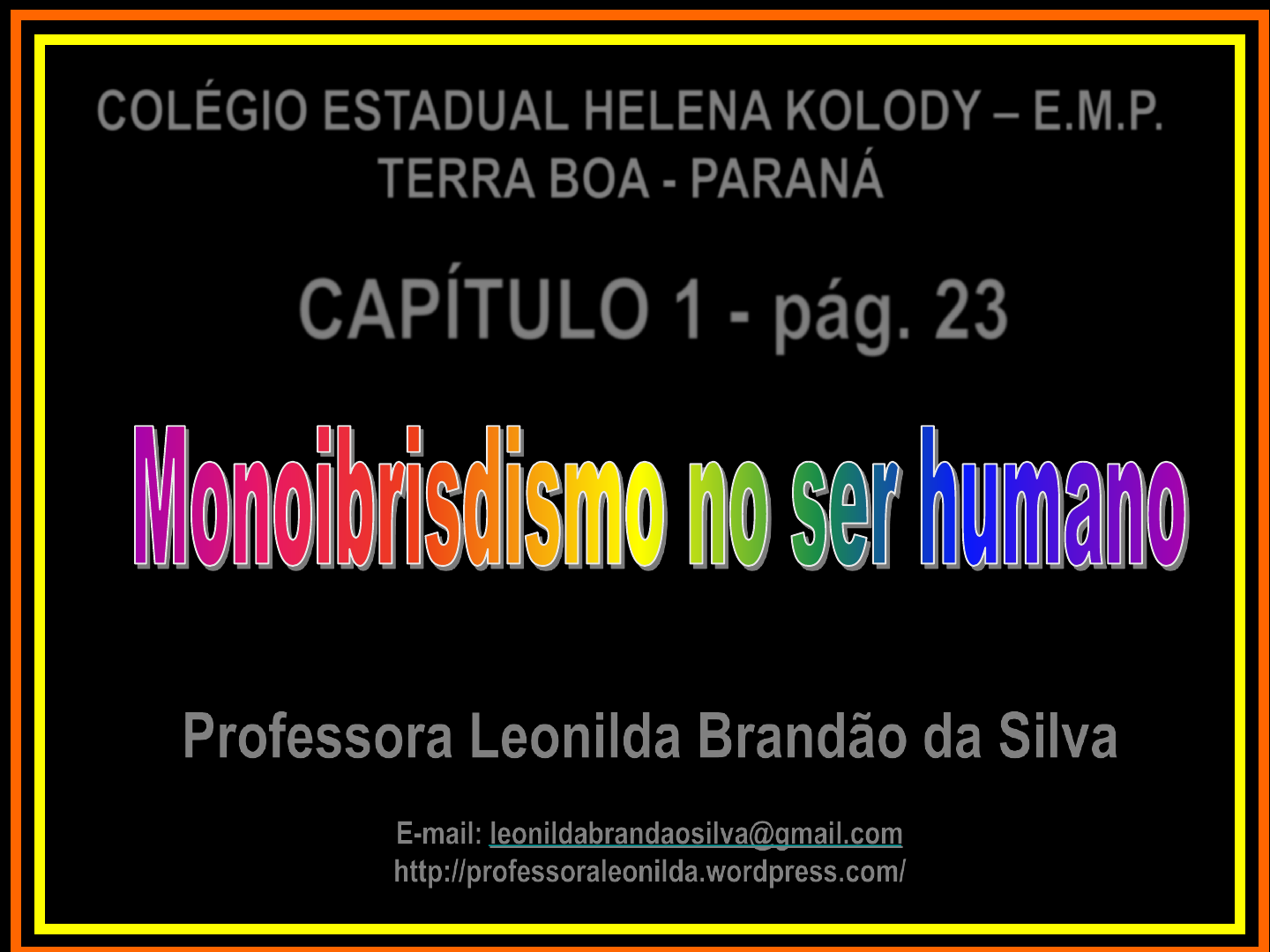 COLÉGIO ESTADUAL HELENA KOLODY – E.M.P. TERRA BOA - PARANÁ CAPÍTULO 1 - pág. 23 Professora Leonilda Brandão da Silva E-mail: leonildabrandaosilva@gmail.com http://professoraleonilda.wordpress.com/ 4.Monoibrisdismo no ser humano - p. 23 A transmissão de algumas características humanas obe- dece à 1ª lei de Mendel, ou seja, elas são condicionadas por um par de alelo (monoibridismo ou herança monogênica). Essas características são autossômicas, isto é, devem-se aos genes presentes nos autossomos. Ex.: Albinismo Ex. Hemofilia. 22 PARES de AUTOSSOMOS 1 PAR DE CROMOSSOMOS SEXUAIS Exemplos de monoibridismo no ser humano 1) Forma do lobo da orelha: Lobo solto característica dominante. LOBO SOLTO LOBO PRESO FENÓTIPO GENÓTIPO Lobo solto ou livre PP ou Pp Lobo preso ou aderido pp 2) Covinha no queixo: dominante. FENÓTIPO GENÓTIPO Com covinha SS e Ss Sem covinha ss 3) Capacidade de enrolar a língua em U: característica dominante. FENÓTIPO GENÓTIPO Enrola a língua NN e Nn Não enrola nn Enrola as bordas da língua em U 4) Bico-de-viúva, sardas e mecha branca no cabelo: São condicionadas por alelos dominantes. FENÓTIPO GENÓTIPO Com bico-de-viúva RR e Rr Sem bico-de-viúva (Linha frontal reta) rr 5) Cruzar dos polegares ou braços: as pessoas que dei- xam automaticamente que o polegar esquerdo sobrepo- nha o direito possui o genótipo dominante. FENÓTIPO GENÓTIPO Esquerdo s/direito DD e Dd Direito s/ esquerdo dd Várias doenças genéticas também são casos de herança monogênica. Elas surgem de genes que sofreram mutações e são transmitidas aos descendentes. 6) Polidactilia: é uma anomalia hereditária que se caracteriza pe- la presença de maior nº de dedos que o normal, sendo condicio- nada por um gene dominante. FENÓTIPO GENÓTIPO Polidáctilo PP - Pp Normal pp 7) Albinismo: falta de melanina – característica recessiva. FENÓTIPO GENÓTIPO Albino aa Pigmentação normal AA e Aa ALBINISMO Na Tanzânia (África) os albinos além de fugirem dos sol, precisam fugir de pessoas que acreditam numa antiga crença da região, de que as partes do corpo de um albino servem para fazer poções para enriquecer rapidamente. Segundo a Folhateen, o cadáver de um albino vale R$7.600, valor muito alto pela renda média da Tanzânia. Nos últimos dois anos, 60 albinos foram mortos, metade deles era adolescentes. Nos EUA e América do Norte uma a cada 20 mil pessoas têm alguma forma de albinismo. Na Tanzânia, esse número é cinco ve- zes mais. O CASO DA TANZÂNIA VÍDEO: 5 fatos incríveis sobre o albinismo - DURAÇÃO: 4:39 https://www.youtube.com/watch?v=PiJO8h5FfdE V i s ã o N o r m a l H i p e r m e t r o p i a ATIVIDADE PRÁTICA O SABOR AMARGO NA VIDA Uma forma de descobrir como ocorre a herança das características humanas é elaborar heredogramas ou árvo- res genealógicas. Esses esquemas apresentam, com uma série de símbolos, os indivíduos de uma família, indicando o grau de paren- tesco, o sexo, a geração, a ordem de nascimento, a pre- sença de um de um caráter afetado por determinada ano- malia, etc. Genealogias, Heredogramas ou Árvores Genealógicas – pg.23 Símbolos usados em genealogias Símbolos usados em genealogias Em estudo Para discussão: -Em cada casal, o homem deve ser coloca- do à esquerda, e a mulher à direita, sempre que possível. A montagem de heredograma obedece a algumas regras: -Os filhos devem ser colocados em ordem de nascimento, da esquerda para a direita. - Uma das formas de representação é indicar todos os indivíduos de um heredograma por algarismos arábicos, começando-se pelo 1º da esquerda, da 1ª geração. - Outra possibilidade é se indicar cada geração que se sucede por algarismos romanos (I, II, III, etc.). Dentro de cada geração, os indivíduos são indicados por algarismos arábicos, da esquerda para a direita. TRABALHO 1) Construir numa folha de sulfite a genealogia de sua família iniciando pelos avós paternos e maternos. 2) Numerar todos os indivíduos da genealogia. 3) Anotar abaixo da genealogia os fenótipos da família para duas das características estudadas. 1ª Característica: Forma do lobo da orelha 13) Aderente 23) Solto 29) Aderente 30) Solto FENÓTIPOS 2ª Característica: Capacidade de enrolar a língua 13) Não enrola 23) Enrola 29) Enrola 30) Não enrola Avós paternos: Avós maternos: Eu Pai Mãe MODELO Interpretação dos Heredogramas A análise de uma genealogia permite: – determinar o padrão de herança de uma certa caracte- rística se é autossômica ou ligada ao sexo – se é dominante ou recessiva; – descobrir o genótipo das pessoas envolvidas. O fenótipo aparece em todas as gerações. A pessoa afetada ge- ralmente tem um dos pais afeta- dos. a) Herança autossômica dominante São necessários 2 genes reces- sivos, um do pai e um da mãe para que a pessoa tenha a característica. O fenótipo pode ficar por várias gerações sem aparecer. O fenótipo que aparece no filho e não se manifesta nos pais é um fenótipo recessivo. b) Herança autossômica recessiva 1. A 1ª informação a se obter é se o caráter é condicionado por um gene dominante ou recessivo. Para isso, devemos procurar casais que são fenotipicamente iguais e tiveram filhos diferentes deles, pois indicam que o caráter presente no filho é recessivo! 2. A seguir localizar os homozigotos recessivos (anotar o genótipo). 3. Depois disso, podemos começar a descobrir os outros genótipos. Para isso devemos observar que a) Em um par de genes alelos, um veio do pai e o outro veio da mãe. Se um indivíduo é homozigoto recessivo, ele deve ter recebido um gene recessivo de cada ancestral. b) Se um indivíduo é homozigoto recessivo, ele envia o gene recessivo para todos os seus filhos. Dessa forma, como em um “quebra-cabeças”, os outros genótipos vão sendo descobertos. OBS.: Quando um dos membros manifesta um fenó-tipo dominante, e não conseguimos determinar se ele é homozigoto ou heterozigo