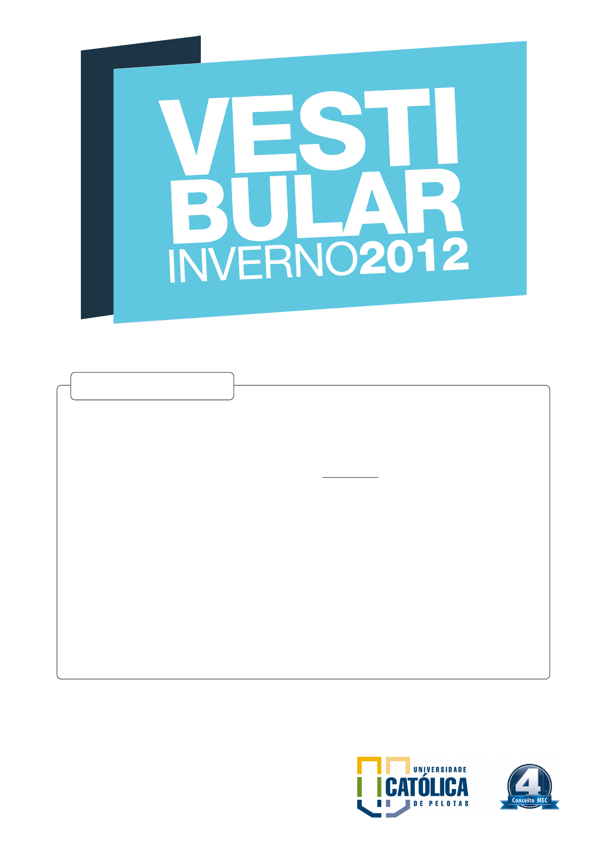 V E S T I B U L A R I N V E R N O 2 0 1 2 1 1 - A duração da prova, incluindo o tempo para a marcação do cartão de respostas, é de 4 horas. 2 - Mantenha silêncio absoluto na sala durante a realização da prova. 3 - Verifique se o caderno está sem defeito e contém 50 questões. 4 - Verifique se o seu número de inscrição e o seu nome estão impressos corretamente no cartão de respostas e coloque sua assinatura no local destinado para isso. 5 - Leia, com atenção, as questões. Escolha apenas uma das 5 opções que são apresentadas em cada questão e a assinale no cartão de respostas. Mais de uma resposta assinalada anula a questão. 6 - Utilize APENAS caneta esferográfica azul ou preta. 7 - Na prova de língua estrangeira (questões do número 47 a 50), escolha apenas UMA das duas opções oferecidas: Inglês OU Espanhol. 8 - Ao finalizar a prova, entregue este caderno, o cartão de respostas, a folha de redação e o rascunho da redação ao fiscal de sala. Vestibular UCPEL [ INVERNO 2012 ] Este não é apenas o seu primeiro passo para começar um curso, mas para uma nova etapa de vida em uma Universidade. Boa prova! Seu futuro, nosso compromisso. Instruções PROVA ÚNICA 2 U N I V E R S I D A D E C A T Ó L I C A D E P E L O T A S P R O V A Ú N I C A – Escolha um dos temas propostos e elabore um texto de caráter dissertativo/argumentativo, contendo de 25 a 30 linhas. – Os textos que acompanham os temas da dissertação servem para leitura e informação; portanto, não devem ser copiados. – A cópia – parcial ou total – poderá anular o trabalho. TEMA 1 RedaçãoVESTIBULAR INVERNO 2012 “Talvez o resultado mais precioso de toda a educação seja a habilidade de fazer com que a gente faça o que deve fazer, quando deve ser feito, quer goste, quer não de fazê-lo.” HUXLEY, Thomas Henry. A educação técnica. São Paulo: Cultrix,1981. V E S T I B U L A R I N V E R N O 2 0 1 2 3 TEMA 2 TEMA 3 “Um levantamento sobre infraestrutura urbana do Instituto Brasileiro de Geografia e Estatística (IBGE) mostrou que as cidades ainda têm muito trabalho pela frente em bem-estar da população. O Rio Grande do Sul ficou abaixo da média nacional nos seguintes itens: identificação das ruas, pavimentação, calçadas, esgoto a céu aberto e lixo acumulado nas ruas.” Zero Hora, Porto Alegre, 26 de maio 2012, p.30. “Os estudos neurocognitivos têm avançado consideravelmente nos últimos anos, na busca da compreensão do processamento cerebral acerca da aprendizagem humana. Em tempos de caminhada para uma educação inclusiva, onde se fomenta que as diferenças sejam valorizadas e respeitadas, faz-se, cada vez mais, necessário o conhecimento acerca da neuroaprendizagem para auxílio na mediação dentro e fora da sala de aula.” Revista Tanto. Pelotas: Tanto Editora de Revistas Ltda., maio 2011, p.13. 4 U N I V E R S I D A D E C A T Ó L I C A D E P E L O T A S P R O V A Ú N I C A PortuguêsVESTIBULAR INVERNO 2012 1 2 3 4 5 6 7 13 14 15 16 17 18 Leia o texto a seguir. R A S C U N H O 8 9 10 11 12 19 20 21 22 23 24 25 26 27 28 OS PRIVILEGIADOS DA TERRA O fragmento de satélite artificial – só podia ser de satélite – caído sobre o povoado transformou de repente a vida dos moradores, que não chegavam a trezentos. Repórteres e cinegrafistas cobriram o fato com o maior relevo. Não houve ninguém que deixasse de dar entrevista: mesmo as crianças. O fiscal do Governo apareceu para recolher o pedaço de coisa inédita, mas foi obstado pelo juiz de paz, que declarou aquilo um bem da comunidade. A população rendeu guarda ao objeto e jurou defender sua posse até o último sopro de vida. A força policial enviada para manter a ordem aderiu aos moradores, pois seu comandante era filho do lugar. Acorreram turistas, pessoas dormiam na rua por falta de acomodação, surgiram batedores de carteira, que foram castigados, e começou a correr o boato de que aquele corpo metálico tinha propriedades mágicas. Quem chegava perto dele seria fulminado, se fosse mau caráter; conquistava a eterna juventude, se fosse limpo de coração; e certa ardência que se evolava da superfície convidava ao amor. Não se desprendeu de satélite, diziam uns; veio diretamente do céu, emanado de uma estrela, alvitravam outros. De qualquer modo, era dádiva especial para o lugarejo, pois ao tombar não ferira ninguém, não partira uma telha, nem se assustaram os animais domésticos com a sua vinda insólita. Tudo acabou com o misterioso desaparecimento da coisa. Seus guardas foram tomados de letargia e, ao recobrarem a consciência, viram-se despojados do grande bem. Mas tinham assimilado esse bem e passaram a viver de uma alegria inefável, que ninguém lhes poderia roubar. Eram os privilegiados da Terra. ANDRADE, Carlos Drummond de. Prosa seleta. Rio de Janeiro: Nova Aguilar, 2003. 29 30 31 32 33 34 1. Na linha 28, “insólita” só não pode ser entendida como (A) desusada. (B) comum. (C) insueta. (D) infrequente. (E) rara. 2. Leia as alternativas a seguir e assinale a opção correta. I. O fragmento de satélite artificial, caído sobre o povoado, transformou, repentinamente e para pior, a vida dos moradores. II. O texto nos diz que a força policial apareceu para recolher o pedaço de coisa inédita, mas foi obstada pelo juiz de paz, que declarou aquilo um bem da comunidade. III. Na narrativa, existem marcantes referências às destruições provocadas pelos moradores no fragmento de satélite. (A) Apenas a terceira está correta. (B) Todas as afirmativas estão corretas. (C) A primeira e a segunda estão corretas. (D) A segunda e a terceira estão corretas. (E) Todas as afirmativas estão erradas. V E S T I B U L A R I N V E R N O 2 0 1 2 5 LiteraturaVESTIBULAR INVERNO 20123. Em “...uma alegria inefável, que ninguém...” (linha 33), a classe gramatical da palavra sublinhada é (A) substantivo. (B) adjetivo. (C) advérbio. (D) pronome. (E) conjunção. 4. A função sintát