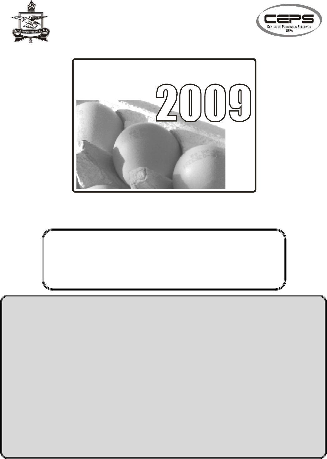 UNIVERSIDADE FEDERAL DO PARÁ SERVIÇO PÚBLICO FEDERAL CENTRO DE PROCESSOS SELETIVOS 2 ª f a se processo seriado seletivo EDITAL N.º 009/2008 (11 de janeiro de 2009) _____________________________________________________ NOME DO(A) CANDIDATO(A) __________________________________ N.º DE INSCRIÇÃO LEIA COM MUITA ATENÇÃO AS INSTRUÇÕES SEGUINTES. 1 Este BOLETIM DE QUESTÕES contém 54 questões objetivas, sendo 6 questões de cada uma das seguintes disciplinas: Língua Portuguesa, Matemática, História, Geografia, Física, Química, Biologia, Literatura e Língua Estrangeira (considerando-se apenas a de opção do candidato). 2 Cada questão objetiva apresenta cinco opções de resposta, identificadas com as letras (A), (B), (C), (D) e (E). Apenas uma é correta. 3 É necessário conferir se a prova está completa e sem falhas. Caso exista algum problema, comunique-o imediatamente ao fiscal de sala. 4 As respostas das questões devem ser assinaladas no CARTÃO-RESPOSTA, fornecido especificamente para este fim. 5 A marcação do CARTÃO-RESPOSTA deve ser feita com caneta (esferográfica, de preferência) de tinta preta. 6 O CARTÃO-RESPOSTA não pode ser dobrado, amassado, rasurado, manchado ou conter qualquer registro fora dos locais destinados às respostas. Não é permitida a utilização de qualquer espécie de corretivo. 7 O CARTÃO-RESPOSTA só será substituído se contiver falha de impressão. 8 A assinatura do seu nome na LISTA DE PRESENÇA deve corresponder àquela que consta no seu documento de identificação. 9 Esta prova terá duração de cinco horas, com início às 8 horas e término às 13 horas, observado o horário de Belém-PA. 10 Ao término da resolução das questões, devolva ao fiscal de sala todo o material referente a esta prova. PROCESSO SELETIVO SERIADO 2009 − 2ª FASE EDITAL N.º 009/2008 2 MARQUE A ÚNICA ALTERNATIVA CORRETA NAS QUESTÕES DE 1 A 54. LÍNGUA PORTUGUESA Leia o texto abaixo para responder às questões de 1 a 6. Uma incrível jornada 01 02 03 04 05 06 07 08 09 10 11 12 13 14 15 16 17 18 19 20 21 22 23 24 25 26 27 28 Há 5 mil anos, um pequeno grupo de pescadores japoneses, habitantes da ilha de Kyushu, no sul do Japão, se perdeu em alto-mar após uma tempestade. Semanas depois, levados pelas correntes marítimas que formam uma rota em círculo entre o Japão e o norte da América do Sul, os pescadores teriam aportado no litoral do Equador. Após um período de mútua adaptação, os viajantes japoneses ensinaram a manufatura cerâmica para a população local. Parece enredo de livro de aventura, mas, para os formuladores da teoria de migração transpacífica, os primeiros ceramistas americanos, treinados pelos orientais, foram os responsáveis por espalhar a nova tecnologia pelo Novo Mundo, por meio do processo chamado de difusão cultural, que consiste na transmissão do conhecimento de uma sociedade para outra. Para quem não é arqueólogo, provavelmente o primeiro pensamento após a leitura do parágrafo anterior será “essa viagem poderia de fato ter acontecido?”. Na verdade, toda a teoria engloba diversos aspectos problemáticos, proporcionais à odisséia que narra, e o efetivo sucesso da viagem é apenas um deles. Vários pesquisadores argumentam que a possibilidade técnica de uma viagem entre o litoral japonês e o equatoriano, 5 mil anos atrás, é praticamente nula, em razão da dificuldade de navegação em mar aberto, das condições climáticas ao longo da rota proposta, das baixas temperaturas, ou simplesmente da ausência de evidências arqueológicas atestando que populações dos períodos Jomon Antigo e Médio possuíam embarcações capazes de suportar tal jornada. Todavia, viagens oceânicas não foram totalmente inviáveis naquela época. Pesquisas baseadas em antigos textos chineses indicam, por exemplo, que a tecnologia náutica na China era mais sofisticada que a japonesa, contando inclusive com barcos de maior porte. Além disso, correntes marítimas que fluem a partir das Filipinas possibilitariam, de fato, a navegação entre o sul da Ásia e o litoral norte da América do Sul. A própria criadora da teoria da migração transpacífica, Betty Meggers, apresenta a expedição do barco Yasei-go III como exemplo concreto de uma viagem oceânica entre Japão e América do Sul com o intuito de rebater críticas à tese. Se tais viagens aconteceram no passado, isso não comprova que a cerâmica Valdivia, encontrada em sítios do litoral norte do Equador, com datações entre 5000 e 3000 anos, seja uma derivação da Jomon, nem que a tecnologia oleira foi introduzida nas Américas. Elisangela Regina de Oliveira (texto adaptado) Revista Scientific American Brasil, Amazônia, nº1, 2008. Questão 1 Em relação ao conteúdo abordado em “Uma incrível jornada”, é correto afirmar que esse texto (A) documenta a viagem dos japoneses ao litoral do Equador. (B) discute o processo de difusão cultural entre orientais e americanos. (C) atesta viagens oceânicas, nos períodos Jomon Antigo e Médio. (D) descreve a sofisticada tecnologia náutica na China, nos períodos Jomon Antigo e Médio. (E) explica o fluxo das correntes marítimas entre o sul da Ásia e o litoral norte da América do Sul. Questão 2 Com base na leitura do texto, compreende-se que um dos argumentos favoráveis à teoria da migração transpacífica é (A) o relato da viagem mal sucedida de um pequeno grupo de pescadores japoneses, habitantes da ilha de Kyushu. (B) o relato das viagens oceânicas realizadas pelos chineses nos períodos Jomon Antigo e Médio. (C) a existência de correntes marítimas que possibilitam a viagem entre o continente asiático e o americano. (D) o relato da viagem realizada, do Japão ao Equador, por Betty Meggers no barco Yasei-go III. (E) a existência da cerâmica Valdivia como evidência da viagem dos japoneses à América do Sul. PROCESSO SELETIVO SERIADO 2009 − 2ª FASE EDITAL N.º 009/2008 3 Questão 3 No te