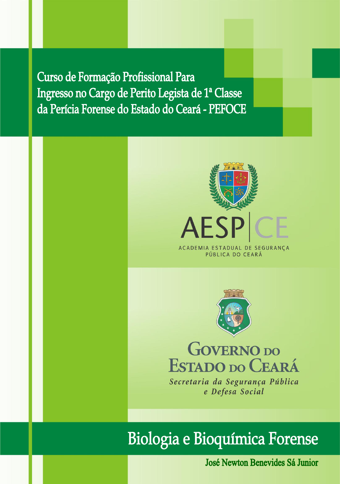 Academia Estadual de Segurança Pública do Ceará – AESP|CE Curso de Formação Profissional Para Ingresso no Cargo de Perito Legista de 1ª Classe da Perícia Forense do Estado do Ceará - PEFOCE BIOLOGIA E BIOQUÍMICA FORENSE 1 Academia Estadual de Segurança Pública do Ceará – AESP|CE Curso de Formação Profissional Para Ingresso no Cargo de Perito Legista de 1ª Classe da Perícia Forense do Estado do Ceará - PEFOCE BIOLOGIA E BIOQUÍMICA FORENSE 2 SECRETARIA DA SEGURANÇA PÚBLICA E DEFESA SOCIAL - SSPDS DELCI Carlos TEIXEIRA SECRETÁRIO DA SSPDS PERÍCIA FORENSE DO CEARÁ MAXIMIANO Leite Barbosa Chaves PERITO GERAL DA PERÍCIA FORENSE DO ESTADO DO CEARÁ ACADEMIA ESTADUAL DE SEGURANÇA PÚBLICA DO CEARÁ – AESP|CE José Herlínio DUTRA – Cel PM DIRETOR-GERAL DA AESP|CE ELIANA Maria Torres Gondim - DPC SECRETÁRIA EXECUTIVA DA AESP|CE DOUGLAS Afonso Rodrigues da Silva – Ten Cel PM COORDENADOR GERAL DE ENSINO DA AESP|CE Amarílio LOPES Rebouças – TC BM COORDENADOR PEDAGÓGICO NEYLA Adriano de Santana ORIENTADORA DA CÉLULA DE EDUCAÇÃO À DISTÂNCIA DA AESP|CE CURSO DE FORMAÇÃO PROFISSIONAL PARA INGRESSO NO CARGO DE PERITO LEGISTA DE 1ª CLASSE DA PERÍCIA FORENSE DO ESTADO DO CEARÁ - PEFOCE DISCIPLINA BIOLOGIA E BIOQUÍMICA FORENSE CONTEUDISTA José Newton Benevides Sá Junior Atualizada por: Telma Maria Melo Nazareth REVISÃO DE COERÊNCIA DIDÁTICA Erika Maria da Silva Pereira Francisco José Amaral Lima Jorgeana Reis da Silva Luciana Canito Austregésilo de Amorim Luciana Moreira da Silva Renata Teixeira de Azevedo FORMATAÇÃO JOELSON Pimentel da Silva – Sd PM • 2015 • Academia Estadual de Segurança Pública do Ceará – AESP|CE Curso de Formação Profissional Para Ingresso no Cargo de Perito Legista de 1ª Classe da Perícia Forense do Estado do Ceará - PEFOCE BIOLOGIA E BIOQUÍMICA FORENSE 3 SUMÁRIO 1. INTRODUÇÃO ............................................................................................................................................................ 4 2. FUNDAMENTOS DE BIOLOGIA CELULAR DE INTERESSE FORENSE ............................................................................ 4 3. FUNDAMENTOS DA BIOLOGIA MOLECULAR FORENSE ............................................................................................. 6 POLIMORFISMO DE CADEIAS DE DNA ...................................................................................................................... 6 DNA MITOCONDRIAL ................................................................................................................................................ 7 CROMOSSOMO Y ...................................................................................................................................................... 8 4. ANÁLISES BIOLÓGICAS FORENSES ............................................................................................................................ 8 SANGUE .................................................................................................................................................................... 8 TESTES PRESUNTIVOS OU DE ORIENTAÇÃO PARA DETECÇÃO DE SANGUE .............................................................. 9 TESTES DE CERTEZA OU CONFIRMATÓRIOS PARA DETECÇÃO DE SANGUE ............................................................ 10 TIPAGEM SANGUÍNEA COM FINALIDADE FORENSE ............................................................................................... 10 SÊMEN HUMANO ................................................................................................................................................... 12 5. CADEIA DE CUSTÓDIA E PRESERVAÇÃO DA AMOSTRA BIOLÓGICA ........................................................................ 14 INDÍCIO, VESTÍGIO E EVIDÊNCIA ............................................................................................................................. 14 CADEIA DE CUSTÓDIA ............................................................................................................................................. 15 6. COLETA, ACONDICIONAMENTO, CONSERVAÇÃO E TRANSPORTE DE AMOSTRAS BIOLÓGICAS ............................. 15 7. NOÇÕES DE BIOSSEGURANÇA ................................................................................................................................ 17 BIBLIOGRAFIA ............................................................................................................................................................. 18 Academia Estadual de Segurança Pública do Ceará – AESP|CE Curso de Formação Profissional Para Ingresso no Cargo de Perito Legista de 1ª Classe da Perícia Forense do Estado do Ceará - PEFOCE BIOLOGIA E BIOQUÍMICA FORENSE 4 BIOLOGIA E BIOQUÍMICA FORENSE 1. INTRODUÇÃO A análise dos vestígios de origem biológica atrelados a fatos delituosos é feita, pelo ramo da criminalística, conhecido como Biologia Forense. Seu principal objetivo é confirmar se realmente são amostras biológicas (ex. sangue ou outros fluídos corporais) e se possível, obter dados suficientes que possam identificar o autor do delito ou comprovar seu vínculo ao fato criminoso, auxiliando assim nas investigações criminais. Dentre os principais vestígios analisados por este ramo, podemos citar o sangue, o esperma, os fios de cabelos, os insetos, os vegetais, entre outros. Como se observa, existe uma grande variedade de vestígios que podem ser coletados em locais de crimes e que são objetos de estudo da Biologia Forense. A biologia aplicada às análises criminais é uma atividade multidisciplinar, sendo assim, subdividida em diferentes áreas de pesquisa, das quais podemos citar a Bioquímica Forense, a Hematologia Forense, a Botânica Forense, a Entomologia Forense, a Genética Forense, etc. A Bioquímica Forense utiliza técnicas bioquímicas e ensaios para auxiliar na