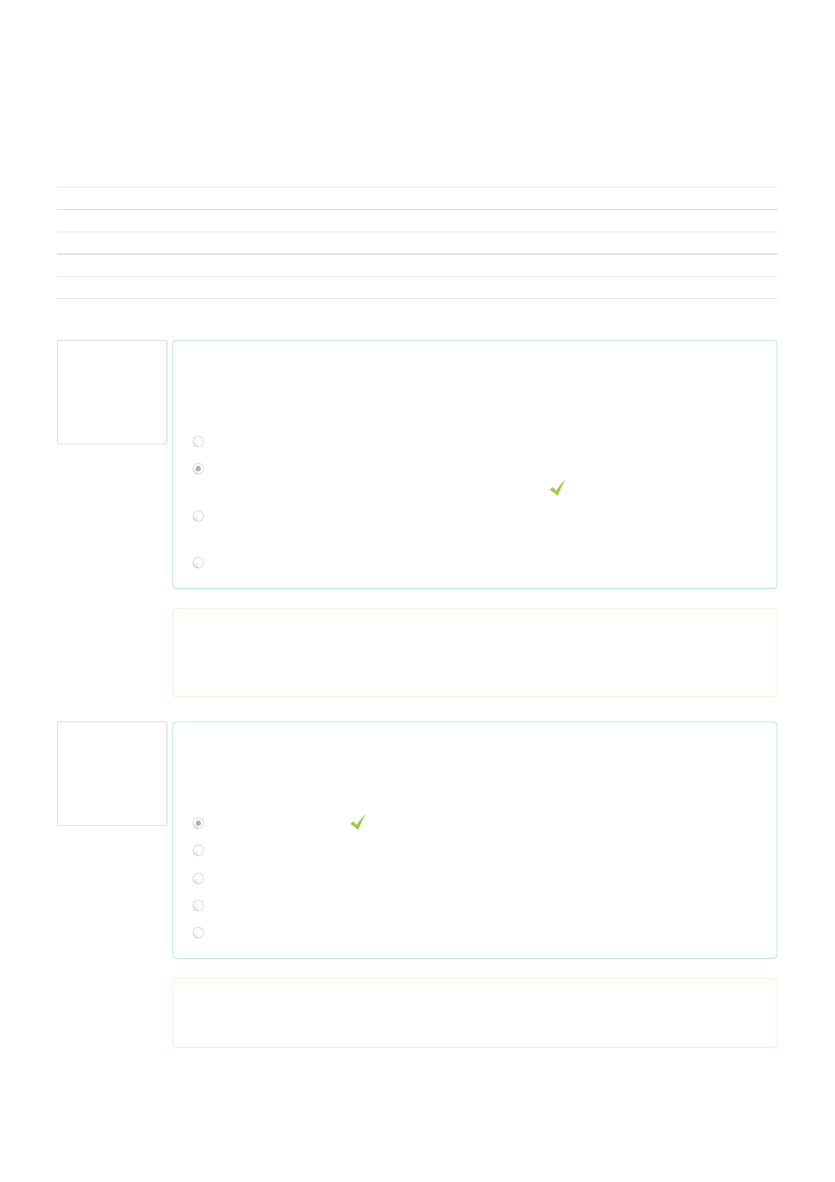 06/02/2019 Conceitos de Mecânica https://graduacao.cederj.edu.br/ava/mod/quiz/review.php?attempt=42491&cmid=277369 1/10 Página inicial ► Minhas Disciplinas ► Conceitos de física para o ensino de ciências ► Semana 2 ► Conceitos de Mecânica Questão 1 Correto Atingiu 1,00 de 1,00 Questão 2 Correto Atingiu 1,00 de 1,00 Iniciado em quarta, 6 Fev 2019, 22:25 Estado Finalizada Concluída em quarta, 6 Fev 2019, 22:53 Tempo empregado 28 minutos 9 segundos Notas 20,00/20,00 Avaliar 10,00 de um máximo de 10,00(100%) Qual das seguintes situações não é uma das restrições às propriedades gerais do movimento, conforme descrito no texto? Escolha uma: a. O movimento pode estar em linha reta. b. Sementes conduzidas pelo vento é um bom exemplo de uma partícula que pode ser descrita pelas equações dadas na seção 2 do texto. c. Um carro que está viajando a 70 km / h para o sul é um bom exemplo de uma partícula que pode ser descrita pelas equações dadas na seção 2 do texto. d. Forças podem causar movimento ou alterar o movimento. Sua resposta está correta. A resposta correta é: Sementes conduzidas pelo vento é um bom exemplo de uma partícula que pode ser descrita pelas equações dadas na seção 2 do texto.. Qual das seguintes quantidades é definida como o deslocamento de um objeto dividido pelo tempo decorrido para o deslocamento? Escolha uma: a. velocidade média b. rapidez média c. aceleração média d. velocidade instantânea e. aceleração instantânea Sua resposta está correta. A resposta correta é: velocidade média. 06/02/2019 Conceitos de Mecânica https://graduacao.cederj.edu.br/ava/mod/quiz/review.php?attempt=42491&cmid=277369 2/10 Questão 3 Correto Atingiu 1,00 de 1,00 Questão 4 Correto Atingiu 1,00 de 1,00 Qual das seguintes quantidades é definida como a distância percorrida dividida pelo tempo decorrido para a viagem? Escolha uma: a. velocidade média b. aceleração média c. aceleração instantânea d. rapidez média e. velocidade instantânea Sua resposta está correta. A resposta correta é: rapidez média. O velocímetro no painel de um carro mede qual das seguintes quantidades? Escolha uma: a. aceleração média b. velocidade instantânea c. rapidez média d. velocidade média e. aceleração instantânea Sua resposta está correta. A resposta correta é: velocidade instantânea. 06/02/2019 Conceitos de Mecânica https://graduacao.cederj.edu.br/ava/mod/quiz/review.php?attempt=42491&cmid=277369 3/10 Questão 5 Correto Atingiu 1,00 de 1,00 Qual dos seguintes gráficos de posição versus tempo representa um objeto em movimento com uma velocidade constante negativa? Escolha uma: a. b. c. d. 06/02/2019 Conceitos de Mecânica https://graduacao.cederj.edu.br/ava/mod/quiz/review.php?attempt=42491&cmid=277369 4/10 Questão 6 Correto Atingiu 1,00 de 1,00 e. Sua resposta está correta. A resposta correta é: . Qual das seguintes quantidades pode ser determinada a partir da inclinação de um gráfico de posição versus tempo para um objeto em movimento? Escolha uma: a. posição b. aceleração c. distância percorrida d. velocidade Sua resposta está correta. A resposta correta é: velocidade. 06/02/2019 Conceitos de Mecânica https://graduacao.cederj.edu.br/ava/mod/quiz/review.php?attempt=42491&cmid=277369 5/10 Questão 7 Correto Atingiu 1,00 de 1,00 Questão 8 Correto Atingiu 1,00 de 1,00 Questão 9 Correto Atingiu 1,00 de 1,00 Complete a seguinte afirmação: Para um objeto que se move a uma velocidade constante, a distância percorrida Escolha uma: a. é o mesmo, independentemente do tempo em que o objeto se move. b. aumenta para cada segundo que o objeto se move. c. é o mesmo para cada segundo em que o objeto se move. d. não pode ser determinado, mesmo que o tempo decorrido seja conhecido. e. diminui para cada segundo que o objeto se move. Sua resposta está correta. A resposta correta é: é o mesmo para cada segundo em que o objeto se move.. Um cachorro está andando ao longo de uma rua. Conforme o cão se move, um gráfico é feito de sua posição no eixo vertical com o tempo decorrido no eixo horizontal. A inclinação da curva é determinada em algum ponto no gráfico. A inclinação dessa curva é uma medida de qual dos seguintes parâmetros? Escolha uma: a. a aceleração do cão b. velocidade instantânea do cão c. o tempo decorrido para a caminhada do cachorro d. a velocidade média do cão e. a velocidade do cachorro Sua resposta está correta. A resposta correta é: velocidade instantânea do cão. Partindo do repouso, uma partícula que se limita a se mover ao longo de uma linha reta é acelerada a uma taxa de 5,0 m / s . Qual das seguintes afirmações sobre a inclinação do gráfico de posição versus tempo para esta partícula é verdadeira? Escolha uma: a. A inclinação tem um valor constante de 5,0 m / s. b. A inclinação tem um valor constante de 5,0 m / s2. c. A inclinação não é constante e aumenta com o aumento do tempo. d. A inclinação é constante e negativa. e. A inclinação não é constante e diminui com o aumento do tempo. Sua resposta está correta. A resposta correta é: A inclinação não é constante e aumenta com o aumento do tempo.. 2 06/02/2019 Conceitos de Mecânica https://graduacao.cederj.edu.br/ava/mod/quiz/review.php?attempt=42491&cmid=277369 6/10 Questão 10 Correto Atingiu 1,00 de 1,00 Questão 11 Correto Atingiu 1,00 de 1,00 Questão 12 Correto Atingiu 1,00 de 1,00 Qual das seguintes quantidades pode ser determinada a partir da inclinação de um gráfico de velocidade versus tempo para um objeto em movimento? Escolha uma: a. distância viajada b. velocidade c. posição d. deslocamento e. aceleração Sua resposta está correta. A resposta correta é: aceleração. Qual dos seguintes parâmetros você pode determinar encontrando a inclinação de um gráfico de velocidade versus tempo em um determinado momento para um objeto em movimento? Escolha uma: a. aceleração instantânea b.