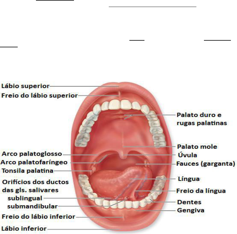 Vinícius Gomes – M3 – 2019.1 – FACULDADE NACIONAL DE MEDICINA - UFRJ Cavidade Oral * = Prováveis na prova. Fontes : Anotações da aula , Transcrição do João , Slide. Qual é a função da cavidade oral? -Realizar os eventos de mastigação mecânica do alimento , desencadeando sua fragmentação em moléculas menores para posterior atuação enzimática. Quais são as regiões anatômicas da cavidade oral? -São duas , o vestibulo oral que é especificamente a área delimitada pelo o arco dentário , bochechas e dentes. Além disso, existe a cavidade oral propriamente dita que é a área vulgarmente conhecida com o “céu da boca” posicionada anteriormente ao arco dentário e posteriormente ao istmo das fauces(garganta). Descreva anatomicamente a Cavidade Oral! -A cavidade oral é delimitada anteriormente pelos lábios e posteriormente pela istmo das fauces. Sendo o istmo das fauces delimitada lateralmente por dois arcos , sendo o mais anterior o Arco Palatoglosso e o mais posterior o Arco palatofaríngeo, entre esses dois arcos existem as Tonsilas Palatinas. Já o limite lateral da cavidade oral é delimitado pelas bochechas. Além disso, o limite superior é delimitado pelo teto da cavidade oral que é subdividido na região mais anterior que é formada pelo Palatos duro e Palato mole posterior. Defina o que é mucosa . -Mucosa é o que reveste toda a cavidade oral , sendo caracterizada pela junção do ( Epitélio de revestimento + Tecido conjuntivo frouxo adjacente “lâmina própria” ). *Como o epitélio pavimentoso estratificado queratinizado é formado?* -Esse epitélio é formado em um processo de diferenciação em que a camada basal composto por células-tronco apresenta um formato cuboide formando a segunda camada a de células do estrato espinhoso que existe uma intensificação de filamentos de citoqueratina. Posteriormente , as células do estrato espinhoso vão se tornando achatadas e formam o estrato granuloso onde existe a produção de querato-hialina,proteína essa que se associa aos filamentos de citoqueratina e forma uma rede compacta filamentosa que acumula no citoplasma da célula de acordo com a diferenciação basal-superficial até chegar em um momento em que o citoplasma da célula é tomado completamente pela rede compacta filamentosa e entre em apoptose dando origem a camada córnea. Além disso , na epiderme existem grânulos lamelares que contém lipídeos de diferente naturezas e que formam uma camada lipídica impermeável. Ademais, no epitélio pode ser encontrado CELULAS DE LANGERHANS (apresentam antígenos) e células de MERKEL (celulas sensitivas). Quais são as subdivisões da área queratinizada da cavidade oral? -São duas ,sendo a primeira a MUCOSA MASTIGATÓRIA presente em locais que possuem maior atrito com a comida , sendo o palato duro ( “ceu da boca”) que corresponde a maior parte da gengiva. Além disso , existe também a MUCOSA ESPECIALIZADA presente nos ⅔ anterior da língua , denominada assim , pois possuem papilas linguais. Quais são as subdivisões da área não queratinizada da cavidade oral? -Presente em regiões de atrito menos intenso ,apresentam também queratinização , no entanto ocorre de maneira lenta e a célula não perde o núcleo. O que é a paraqueratinização? - Nesse caso , o estrato granuloso não está presente e os queratinócitos do estrato córneo retêm núcleos das organelas. Epitélio estratificado pavimentoso paraqueratinizado. Caracterize o Epitélio Estratificado pavimentoso não queratinizado! -Possui um grande número de camadas , maior do que do epitélio queratinizado. Presente na mucosa da bochecha , denominada mucosa bucal. *Como o epitélio pavimentoso estratificado não queratinizado é formado?*(MUCOSA MASTIGATÓRIA) -Semelhantemente ao que ocorre no epitélio pavimentoso estratificado queratinizado , no entanto existem alterações em algumas etapas. Esta presente por exemplo , na mucosa da bochecha.Composto por 1 camada Basal , em que onde existem células troncos que realizam a reposição de celular de acordo com a perda de celulas na camada mais superior devido ao atrito. Posteriormente , existe o 2 estrato espinhos que apesar de haver a produção de esqueleto de citoqueratina ele não se associa com a querato-hialina para formação de uma rede compacta filamentosa. No 3 estrato filamentoso as células não sofrem apoptose e por isso mantem-se vivas até o último estrato . Por último , o 4 estrato disjunto por não haver uma junção eficiente se descama facilmente. Como não existe a camada córnea , o epitélio pavimentoso estratificado não queratinizado é mais sucessível a aftas. Qual é a vantagem do epitélio pavimentoso estratificado não queratinizado?(MUCOSA DE REVESTIMENTO) -Administração de remédios , pois por haver o estrato disjunto fica mais fácil a difusão de medicamentos de ação rápida pois favorece a ação de medicamentos pois, a lamina própria vasculariza se torna mais acessível. Qual é a importância das Fibras de ancoragem? -Essas fibras são extremamente importantes , formadas por colágeno do tipo 7 , realizam fixação entre a lâmina basal(Lâmina rara+ Lâmina densa) e o tecido conjuntivo da lâmina própria. Possuem grande importância clínicas , pois se houve destruição dessas âncoras ocorre doenças bolhosas na cavidade oral. Descreva as estruturas histológicas do lábio. -O lábio é Subdividido em 3 partes -Face externa do Lábio> Possui pele delgada , epiderme e derme com anexos cultaneos-folículo piloso , glâdulas sebácias e sudoripas écrinas . -Borda vermelha do Lábio> zona de transição entre pele mucosa , papilas dermicas ficam cada vez mais longas e possuem alças capilares que se tornam cada vez mais altas,além disso possuem o músculo orbicular geralmente presente no corte. Local onde ocorre a redução da camada córnea até seu desaparecimento na face interna. -Face interna do Lábio> mucosa vestibula