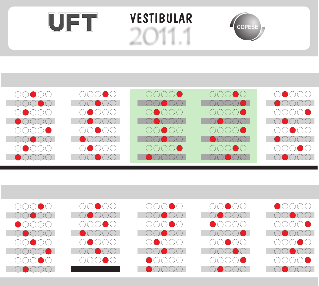 GABARITO DEFINITIVO - 1ª Etapa - Manhã Universidade Federal do Tocantins Pró-Reitoria de Graduação Comissão Permanente de Seleção LÍNGUA PORTUGUESA LITERATURA BRASILEIRA MATEMÁTICALÍNGUA ESTRANGEIRA INGLÊS ESPANHOL A B C D E A B C D E A B C D E A B C D E A B C D E A B C D E A B C D E A B C D E 01 02 03 04 05 06 07 08 A B C D E A B C D E A B C D E A B C D E A B C D E A B C D E A B C D E A B C D E 09 10 11 12 13 14 15 16 A B C D E A B C D E A B C D E A B C D E A B C D E A B C D E A B C D E A B C D E A B C D E A B C D E A B C D E A B C D E A B C D E A B C D E A B C D E A B C D E A B C D E A B C D E A B C D E A B C D E A B C D E A B C D E A B C D E A B C D E 17 18 19 20 21 22 23 24 17 18 19 20 21 22 23 24 25 26 27 28 29 30 31 32 GABARITO DEFINITIVO - 2ª Etapa - Tarde A B C D E A B C D E A B C D E A B C D E A B C D E A B C D E A B C D E A B C D E 01 02 03 04 05 06 07 08 A B C D E A B C D E A B C D E A B C D E A B C D E A B C D E A B C D E A B C D E 09 10 11 12 13 14 15 16 A B C D E A B C D E A B C D E A B C D E A B C D E A B C D E A B C D E A B C D E A B C D E A B C D E A B C D E A B C D E A B C D E A B C D E A B C D E A B C D E A B C D E A B C D E A B C D E A B C D E A B C D E A B C D E A B C D E A B C D E 17 18 19 20 21 22 23 24 33 34 35 36 37 38 39 40 2011.1 25 26 27 28 29 30 31 32 FÍSICA QUÍMICA BIOLOGIAGEOGRAFIAHISTÓRIA CANCELADA Página 1