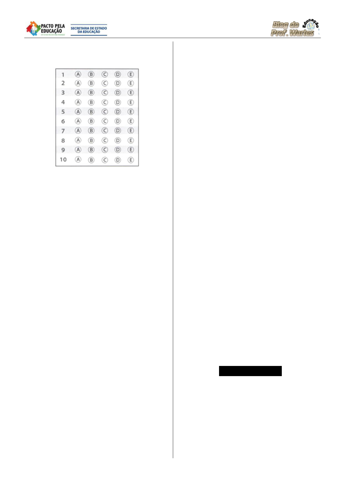 ��� �� 1ª Prova diagnóstica – 2015 – 3ª Série SEDUC-GO – Língua Portuguesa – Ens. M � ESCOLA: ________________________ Prof.:____________________________ Nome: ___________________________ Leia o texto abaixo e, em seguida, responda questões 1 e 2. Os Moralistas Luis Fernando Veríssimo — Você pensou bem no que vai fazer, Paulo? — Pensei. Já estou decidido. Agora não volto atrás. — Olhe lá, hein, rapaz... Paulo está ao mesmo tempo comovido e surpreso com os três amigos. Assim que souberam do seu divórcio iminente, correram para visitá-lo no hotel. A solidariedade lhe faz bem. Mas não entende aquela insistência deles em dissuadi-lo. Afinal, todos sabiam que ele não se acertava com a mulher. — Pense um pouco mais, Paulo. Reflita. Essas decisões súbitas... — Mas que súbitas? Estamos praticamente separados há um ano! — Dê outra chance ao seu casamento, Paulo. — A Margarida é uma ótima mulher. — Espera um pouquinho. —Você mesmo deixou de frequentar nossa casa por causa da Margarida. Depois que ela chamou vocês de bêbados e expulsou todo mundo. — E fez muito bem. Nós estávamos bêbados e tínhamos que ser expulsos. — Outra coisa, Paulo. O divórcio. Sei lá. — Eu não entendo mais nada. Você sempre defendeu o divórcio! — É. Mas quando acontece com um amigo... — Olha, Paulo. Eu não sou moralista. Mas acho a família uma coisa importantíssima. Acho que a família merece qualquer sacrifício. — Pense nas crianças, Paulo. No trauma. — Mas nós não temos filhos! — Nos filhos dos outros, então. No mau exemplo. — Mas isto é um absurdo! Vocês estão falando como se fosse o fim do mundo. Hoje, o divórcio é uma coisa comum. Não vai mudar nada. — Como, não muda nada? — Muda tudo! — Você não sabe o que está dizendo, Paulo! Muda tudo. — Muda o quê? — Bom, pra começar, você não vai poder mais frequentar as nossas casas. — As mulheres não vão tolerar. — Você se transformará num pária social, Paulo. — O quê?! — Fora de brincadeira. Um reprobo. — Puxa. Eu nunca pensei que vocês... — Pense bem, Paulo. Dê tempo ao tempo. — Deixe pra decidir depois. Passado o verão. — Reflita, Paulo. É uma decisão seríssima. Deixe para mais tarde. — Está bem. Se vocês insistem... Na saída, os três amigos conversam: — Será que ele se convenceu? — Acho que sim. Pelo menos vai adiar. — E no solteiros contra casados da praia, este ano, ainda teremos ele no gol. — Também, a ideia dele. Largar o gol dos casados logo agora. Em cima da hora. Quando não dava mais para arranjar substituto. — Os casados nunca terão um goleiro como ele. — Se insistirmos bastante, ele desiste definitivamente do divórcio. — Vai aguentar a Margarida pelo resto da vida. — Pelo time dos casados, qualquer sacrifício serve. — Me diz uma coisa. Como divorciado, ele podia jogar no time dos solteiros? — Podia. — Impensável. — É. — Outra coisa. — O quê? — Não é reprobo. É réprobo. Acento no "e". — Mas funcionou, não funcionou? VERISSIMO, Luis Fernando. Moralistas. In: As Mentiras que os Homens Contam. Rio de Janeiro: Editora Objetiva, 2000, pág. 4. D4 –––––––– QUESTÃO 01 ––––––––––– Infere-se do texto que (A) os amigos de Paulo são solidários. (B) Paulo decidiu se separar de sua esposa. (C) os amigos de Paulo são falsos moralistas. (D) os amigos de Paulo defendem a importância da família. (E) Paulo, como divorciado, seria um mau exemplo para todos. D15 ––––––––– QUESTÃO 02 –––––––––– No trecho, “Assim que souberam do seu divórcio iminente, correram para visitá-lo no hotel.”, a expressão destacada estabelece uma relação de (A) conclusão. (B) concessão. (C) causalidade. (D) sequenciação. (E) temporalidade. D18 –––––––––– QUESTÃO 03 –––––––––– Leia o texto abaixo e, em seguida, responda: Por parte de pai Bartolomeu Campos Queirós Minha cama ficava no fundo do quarto. Pelas frestas da janela soprava um vento resmungando, cochichando, esfriando meus pensamentos, anunciando fantasmas. As roupas, dependuradas em cabides na parede, se transfiguravam em monstros e sombras. Deitado, enrolado, parado, imóvel, eu lia recado em cada mancha, em cada dobra, em cada sinal. O barulho do colchão de palha me arranhava. O escuro apertava minha garganta, roubava meu ar. O fio da luz terminava amarrado na cabeceira do catre. O medo assim maior do que o quarto me levava a apertar a pera de galalite e acender a luz, enfeitada com papel crepom. O claro me devolvia as coisas em seus tamanhos verdadeiros. O nariz do monstro era o cabo do guarda-chuva, o rabo do demônio o cinto do meu avô, o gigante, a capa ―Ideal‖ cinza para os dias de chuva e frio. Então, procurava distrair meu pavor decifrando os escritos na parede, no canto da cama, tão perto de mim. Mas era minha a dificuldade de acomodar as coisas dentro de mim. Sobrava sempre um pedaço [...] QUEIRÓS, Bartolomeu Campos. Por parte de pai. Belo Horizonte:RHJ, 1995. No trecho,“Pelas frestas da janela soprava um vento resmungando, cochichando, esfriando meus pensamentos, anunciando fantasmas.”, o termo sublinhado sugere (A) medo. (B) calma. (C) alívio. (D) remorso. (E) desânimo. D17 –––––––––– QUESTÃO 04 –––––––––– Leia o texto abaixo e, em seguida, responda: Disponível em: http://tiras-do-calvin.tumblr.com/image/26502826556 . Acesso em: 21/11/2014. O negrito utilizado no segundo quadrinho nas palavras “Meu” e “Minha” sugere (A) ironia. (B) crítica. (C) ênfase. (D) humor. (E) desprezo. Leia o texto abaixo e, em seguida, responda aos itens 5, 6 e 7. Quem vai encarar o Facebook? Felipe Vicilic "Sua rede social é controlada por publicitários. Você é o produto comprado e vendido." Assim, com desmedido exagero, a startup americana Ello anunciou o l