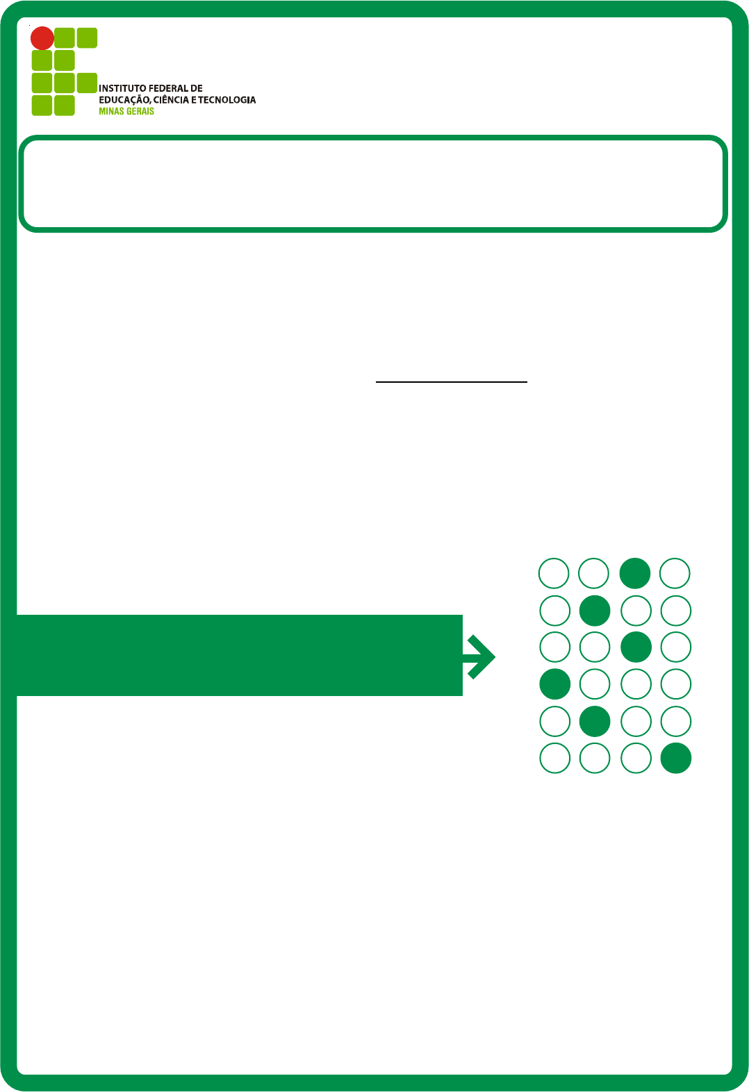 1) Esta prova é composta de 50 questões, todas de múltipla escolha, com 4 opções de escolha, e a proposta de redação. 2) A prova terá início às 8 horas com duração de 4 horas e 30 minutos. Você será avisado quando restarem 30 minutos para o final. 3) Tenha em mãos apenas o material necessário para a resolução da prova. Não é permitido o uso de calculadoras, nem o empréstimo de qualquer tipo de material. 4) Resolva as questões neste caderno de provas. Logo após, solicite ao fiscal o seu cartão de resposta para preenchimento das respostas. Transcreva-as a lápis, confira com atenção e então cubra a opção escolhida com caneta azul ou preta. Atenção: só existe uma alternativa correta. 5) Assine o cartão de resposta no local indicado. SÓ ABRA QUANDO AUTORIZADO 01 A A A A A B B B B C C C C D D D D D 02 03 04 05 06 OBSERVE COMO SE DEVE PREENCHER O CARTÃO DE RESPOSTA 6) A apuração do resultado será feita por leitora ótica, não havendo processamento manual dos cartões. 7) NÃO dispomos de outros cartões de resposta para substituir os errados, portanto, atenção. 8) Trancreva para o Formulário de Redação a versão final do seu texto. 9) Caso você perceba alguma irregularidade, comunique-a imediatamente aos fiscais. 10) Encontram-se, no final desse caderno de prova, a tabela periódica, rascunho para a redação e informações ao candidato. 11) Os três últimos candidatos deverão permanecer na sala para entrega simultânea do cartão de resposta e assinar na folha de ocorrência. 1º VESTIBULAR/2016 SUPERIOR TURNO: MATUTINO – 20/12/2015 1º VESTIBULAR DE 2016 DO IFMG MODALIDADE: SUPERIOR 1 DATA: 20/12/2015 TURNO: MATUTINO LINGUAGENS E CÓDIGOS QUESTÕES DE 01 A 15 Questão 01: Leia o trecho do livro O Cortiço, de Aluísio Azevedo. Do cortiço, onde esta novidade causou sensação, via-se nas janelas do sobrado, abertas de par em par, surgir de vez em quando Leonor ou Isaura, a sacudirem tapetes e capachos, batendo-lhes em cima com um pau, os olhos fechados, a cabeça torcida para dentro por causa da poeira que a cada pancada se levantava, como fumaça de um tiro de peça. Chamaram-se novos criados para aqueles dias. No salão da frente, pretos lavavam o soalho, e na cozinha havia rebuliço. Dona Estela, de penteador de cambraia enfeitado de laços cor-de-rosa, era lobrigada de relance, ora de um lado, ora de outro, a dar as suas ordens, abanando-se com um grande leque; ou aparecia no patamar da escada do fundo, preocupada em soerguer as saias contra as águas sujas da lavagem, que escorriam para o quintal. Zulmira também ia e vinha, com a sua palidez fria e úmida de menina sem sangue. Henrique, de paletó branco, ajudava o Botelho nos arranjos da casa e, de instante a instante, chegava à janela, para namoriscar Pombinha, que fingia não dar por isso, toda embebida na sua costura, à porta do número 15, numa cadeira de vime, uma perna dobrada sobre a outra, mostrando a meia de seda azul e um sapatinho preto de entrada baixa; só de longo em longo espaço, ela desviava os olhos do serviço e erguia-os para o sobrado. Em qual alternativa o termo entre parênteses se refere, corretamente, à palavra sublinhada? A) “Do cortiço, onde esta novidade causou sensação, via-se nas janelas do sobrado (...)” (esta = sensação) B) “(...) os olhos fechados, a cabeça torcida para dentro por causa da poeira que a cada pancada se levantava (...)” (se = cabeça) C) “(...) preocupada em soerguer as saias contra as águas sujas da lavagem, que escorriam para o quintal.” (que = lavagem) D) “(...) de instante a instante, chegava à janela, para namoriscar Pombinha, que fingia não dar por isso (...)” (que = Pombinha) 1º VESTIBULAR DE 2016 DO IFMG MODALIDADE: SUPERIOR 2 DATA: 20/12/2015 TURNO: MATUTINO Questão 02: Leia o texto a seguir e observe as palavras em destaque. Pesquisa mostra morador de favelas mais conectado à tecnologia que o do asfalto Portal EBC (18/09/2015) §1º Pesquisa divulgada hoje (18), no Green Gallery, em Nova York, pelo presidente do Instituto Data Popular e fundador do Data Favela, Renato Meirelles, indicou que os moradores de favelas são mais conectados com os meios tecnológicos que os habitantes do asfalto. “O número de internautas nas favelas é maior que no asfalto, porque, para as favelas, a internet tem antes de tudo uma função de geração de renda.” §2º De acordo com a pesquisa, apresentada durante a Semana Global da Central Única das Favelas (Cufa), 89% dos internautas de favelas acreditam que a rede pode ajudá-los a ganhar mais dinheiro e 57% já tiveram aumento de renda graças à internet. §3º Hoje à tarde, durante lançamento do projeto Cufa Global, na sede da Organização das Nações Unidas (ONU), Renato Meirelles apresentou estudo sobre a existência de um novo país formado no Brasil. “É um país chamado favelas brasileiras, em que 53% das pessoas já passaram fome, em que ainda existe racismo e que tem preconceito policial.” §4º Conforme Renato Meirelles, os 12,3 milhões de moradores de favelas no Brasil movimentaram cerca de US$ 19,5 bilhões em 2015. Segundo ele, isso decorre do crescimento da classe média e do aumento da escolaridade média das pessoas. §5º Para o presidente do instituto, as favelas constituem um país de contrastes. "Em razão da inserção recente dos habitantes das comunidades no mercado de consumo, as favelas têm 2,7 milhões de passageiros de avião, mas, ao mesmo tempo, 2,5 milhões de pessoas lidam com dificuldade para pagar as contas." (Disponível em: <http://goo.gl/qVUWuk>. Acesso em 15 de nov. de 2015. Fragmento) Assinale a afirmativa CORRETA: A) No §1º, “porque” é usado para concluir sobre o uso da internet pelos moradores da favela. B) No §2º, a conjunção “e” exprime ideia de adição entre os internautas de favela que acreditam no potencial da internet e aqueles que já comprovaram isso. C) No §4º, as palavras “conforme