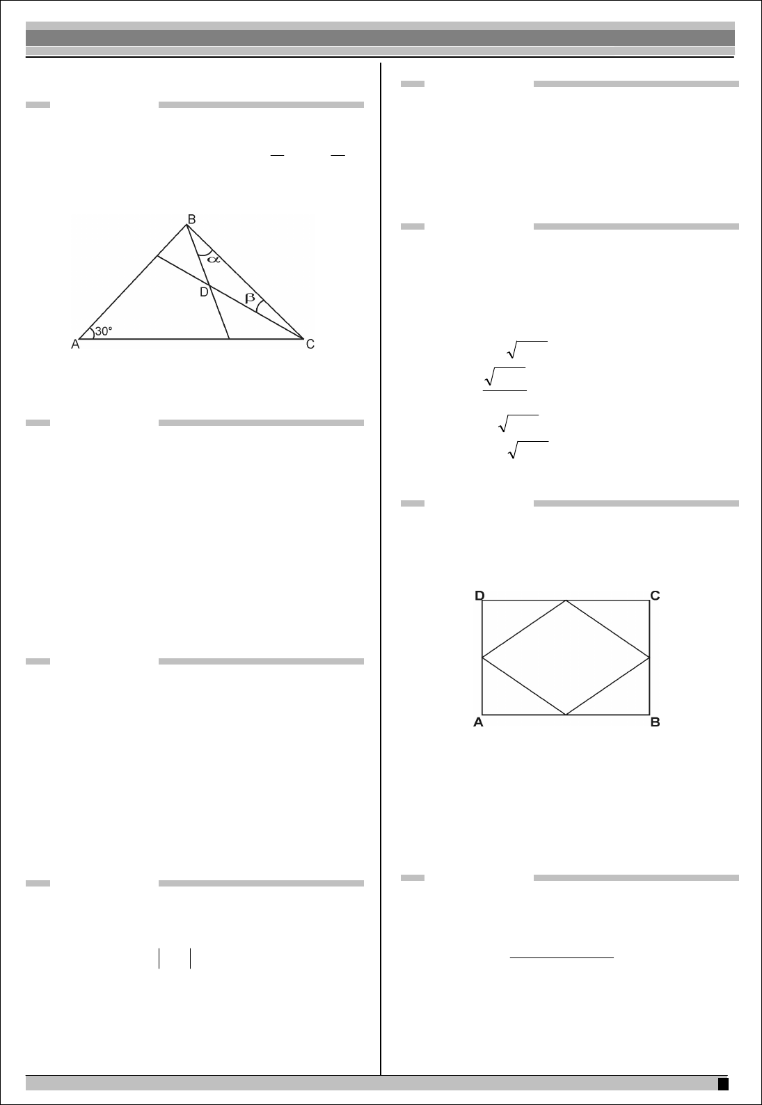 UFT/COPESE Vestibular/2008 PROVAS DE CONHECIMENTO – 1ª Etapa - Manhã 01 PROVA DE MATEMÁTICA QUESTÃO 01 Na figura abaixo considere 3 ˆ e 3 ˆ ,30 CBÂ O === βα . No triângulo BDC o ângulo Dˆ é: (A) o90 (B) o130 (C) o150 (D) o120 QUESTÃO 02 Considere no plano cartesiano xy, a circunferência de equação ( ) ( ) 412 22 =++− yx e o ponto P dado pela interseção das retas 0532:1 =+− yxL e 042:2 =+− yxL . Então a distância do ponto P ao centro da circunferência é: (A) o dobro do raio da circunferência (B) igual ao raio da circunferência. (C) a metade do raio da circunferência. (D) o triplo do raio da circunferência. QUESTÃO 03 Em uma fazenda produtora de soja duas colheitadeiras A e B são utilizadas para a colheita da produção. Quando trabalham juntas conseguem fazer toda a colheita em 72 horas. Porém, utilizando apenas a colheitadeira A, em 120 horas. Se o produtor utilizar apenas a colheitadeira B, toda a colheita será feita em: (A) 180 horas (B) 165 horas (C) 157 horas (D) 192 horas QUESTÃO 04 Sejam gf e funções reais de uma variável real definidas por: 5)( e 1)( =−= xgxxf A área da região limitada pelos gráficos dessas funções é: (A) 10 unidades de área. (B) 30 unidades de área. (C) 50 unidades de área. (D) 25 unidades de área. QUESTÃO 05 Considere i a unidade imaginária dos números complexos. O valor da expressão ( )81+i é: (A) i32 (B) 32 (C) 16 (D) i16 QUESTÃO 06 Seja ] ] [ [∞−→∞− ,12,:f definida por 34)( 2 +−= xxxf Então a função inversa 1−f é: (A) 12)(1 +−=− xxf (B) 2 1)(1 +=− xxf (C) 1 )(1 +−=− xxf (D) 12)(1 ++=− xxf QUESTÃO 07 Seja ABCD um retângulo de área igual a ².80cm Considere o ponto médio de cada lado conforme a figura abaixo Sabendo que o lado menor do retângulo mede ,8cm podemos afirmar que o perímetro do quadrilátero inscrito é: (A) cm16 (B) cm12 (C) cm18 (D) cm14 QUESTÃO 08 Considere a seguinte inequação: 0 22 1 23 23 ≤ −+− −+− xxx xxx O conjunto solução em IR é: (A) [ [2,1 − (C) [ ]3,2 (B) [ [2,1− (D) [ [2,1 UFT/COPESE Vestibular/2008 PROVAS DE CONHECIMENTO – 1ª Etapa - Manhã 02 PROVA DE FÍSICA QUESTÃO 09 Uma pessoa atira uma pedra verticalmente para cima, com velocidade inicial escalar de 5m/s, da beira de um penhasco. Considerando-se que o módulo da aceleração da gravidade é de 10 m/s2, em quanto tempo a pedra irá passar por um ponto situado a 30 m abaixo do ponto onde foi lançada? Despreze a resistência do ar. (A) 3,0s (B) 2,0s (C) 0,5s (D) 3,5s QUESTÃO 10 Joaquim mora na zona rural e enfrenta vários desafios para conseguir estudar. Um destes desafios é o deslocamento de sua casa até à escola. Ele mora em um sítio, a 25 km de sua escola, e percorre esse trajeto diariamente. Joaquim caminha por 4,5 km até ao ponto de ônibus escolar, a uma velocidade escalar constante de 6 km/h. O ônibus gasta 20 minutos do ponto até à escola, chegando pontualmente. Joaquim acordou atrasado e agora precisa correr até ao ponto de ônibus para não perder a aula. O atraso de Joaquim foi de 15 minutos. Qual a velocidade média escalar de Joaquim, e qual o gráfico que representa a distância percorrida (S) em função do tempo (t) para este trajeto. (A) 7,0 km/h (B) 7,0 km/h (C) 9,0 km/h (D) 9,0 km/h QUESTÃO 11 Raios são descargas elétricas produzidas quando há uma diferença de potencial da ordem de 2,7 x 107 V, entre dois pontos da atmosfera. Nessas circunstâncias, estima-se que a intensidade da corrente seja 2,0 x 105 A, e que o intervalo de tempo em que ocorre a descarga seja de um milésimo de segundo. Se armazenássemos esta energia, quanto seria o valor de cada raio, sabendo-se que um kWh custa R$0,50 (cinqüenta centavos de real)? (A) R$ 12000,00 (B) R$ 10,00 (C) R$ 2500,00 (D) R$ 750,00 QUESTÃO 12 Em uma aula de física, os alunos observam um objeto descrevendo um movimento circular uniforme. Seja vr a velocidade e ar a aceleração do objeto. Após observarem o fenômeno, fazem os seguintes comentários: I - No movimento circular uniforme a soma das forças que agem no objeto não é nula, portanto existe aceleração não nula. II - No movimento circular uniforme vr muda constantemente, enquanto a velocidade angular é constante. (A) Os comentários I e II estão corretos. (B) Os comentários I e II estão errados. (C) Apenas o comentário I está correto. (D) Apenas o comentário II está correto. QUESTÃO 13 Um estudante precisa manter sua moto diariamente a uma altura de 60 cm e decide construir um elevador hidráulico. A S(km) t(h) t(h) S(km) t(h) S(km) t(h) S(km) UFT/COPESE Vestibular/2008 PROVAS DE CONHECIMENTO – 1ª Etapa - Manhã 03 massa da moto é de 125 kg. O estudante encontra em sua casa dois canos cilíndricos de aço, com diâmetros de 4 e 40 cm, e constrói o elevador utilizando água. Qual a massa que o estudante terá de colocar sobre o cano de menor diâmetro para manter levantada a moto na altura desejada? Adote: ρagua=1000 kg/m3, g=10m/s2, pi=3,14. Aproximadamente: (A) 21 kg (B) 77 kg (C) 13 kg (D) 40 kg QUESTÃO 14 Dois materiais, “A” e “B”, com massas mA e mB, possuem calor específico cA e cB, respectivamente. Ao fornecer certa quantidade de calor ao material “A”, e metade desta mesma quantidade de calor ao material “B”, observa-se que a temperatura nos materiais sofre a mesma variação. Com base nessas informações podemos afirmar que: (A) Se cA < cB então mA > mB. (B) Se cA = cB então mA < mB. (C) Se mA = mB então cA > cB. (D) Se mA = mB então cA = cB. QUESTÃO 15 Um professor levanta-se de sua mesa e puxa com uma força de 70 N um livro de física quântica, que estava sobre um livro de física clássica na beirada da mesa. O livro de física quântica desliza sobre o livro de física clássica, que cai no chão, conforme figura abaixo. As massas dos livros de física quântica e clássica são: 2 kg e 3 kg, respectivamente. O coeficiente de atrito cinético entre os livros é de 0,7