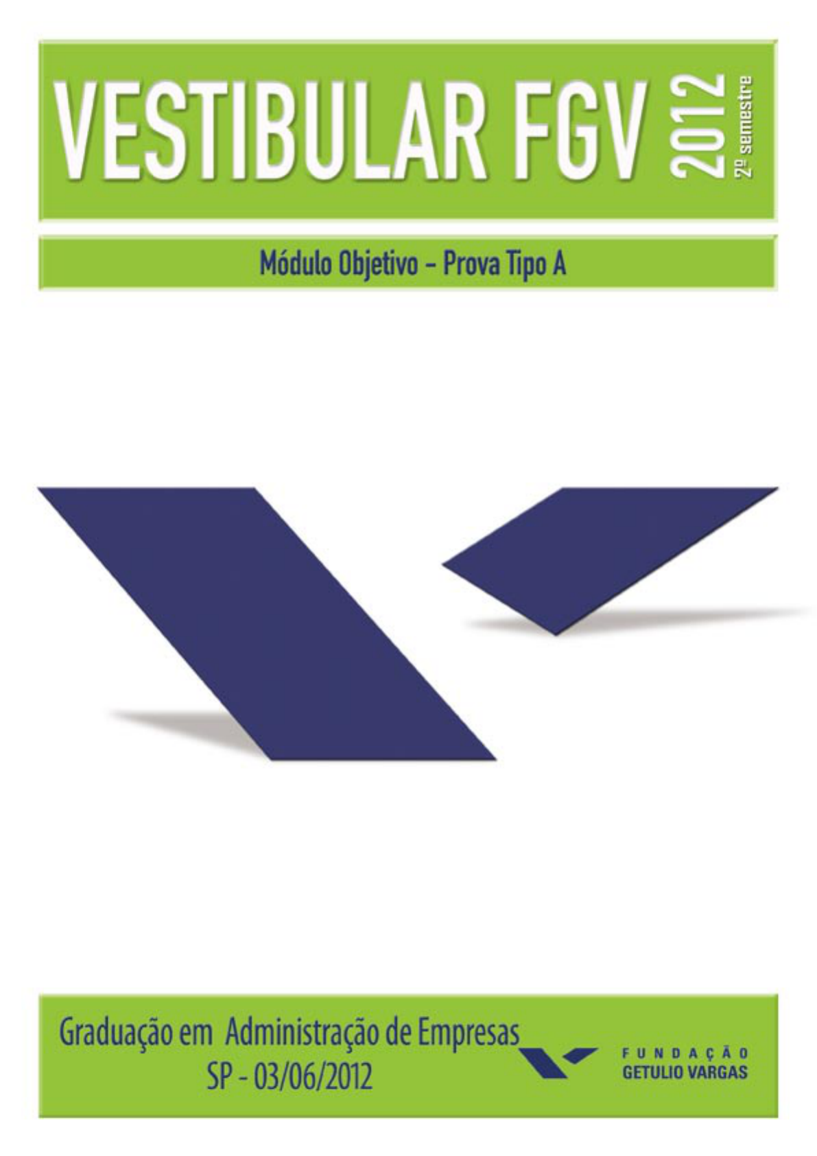1 Matemática 1 Em um período de grande volatilidade no mercado, Rosana adquiriu um lote de ações e verificou, ao final do dia, que ele sofrera uma valorização de 8% em relação ao preço pago na compra. No final do dia seguinte, o mesmo lote sofrera uma desvalorização de 6% em relação ao valor do final do dia anterior; nesse momento, isto é, no final do segundo dia, Rosana decidiu vender o lote e recebeu por ele R$10 152,00. Entre a compra e a venda, ela ganhou x reais. A soma dos algarismos de x é: A 5 B 6 C 7 D 8 E 9 2 Em um paralelogramo, as coordenadas de três vértices consecutivos são, respectivamente, (1, 4), (−2, 6) e (0, 8). A soma das coordenadas do quarto vértice é: A 8 B 9 C 10 D 11 E 12 3 Quando o preço por unidade de certo modelo de telefone celular é R$ 250,00, são vendidas 1 400 unidades por mês. Quando o preço por unidade é R$ 200,00, são vendidas 1 700 unidades mensalmente. Admitindo que o número de celulares vendidos por mês pode ser expresso como função polinomial do primeiro grau do seu preço, podemos afirmar que, quando o preço for R$ 265,00, serão vendidas: A 1 290 unidades B 1 300 unidades C 1 310 unidades D 1 320 unidades E 1 330 unidades 4 A matriz c b a é a solução da equação matricial MAX = em que: = 300 410 521 A e = 9 15 28 M . Então 222 cba ++ vale: A 67 B 68 C 69 D 70 E 71 2 5 Considere a região do plano cartesiano cujos pontos satisfazem simultaneamente as inequações: ≥ ≥ ≤+ ≤+ 0 0 4 62 y x yx yx A área dessa região é: A 6 B 7 C 8 D 9 E 10 6 Aplicando 1 real a juros compostos durante 12 anos, obtém-se um montante de 64 reais. Usando a tabela abaixo, pode-se dizer que a taxa anual de juros é: x 1 2 3 4 5 6 x 1 1,4142 1,7321 2 2,2361 2,4495 A 41,42% B 73,21% C 100% D 123,61% E 144,95% 7 Uma loja vende semanalmente x relógios quando seu preço por unidade p , em reais, é expresso por xp 10600 −= . A receita semanal de vendas desse produto é R$ 5 000,00 para dois valores de p . A soma desses valores é: A R$ 400,00 B R$ 450,00 C R$ 500,00 D R$ 550,00 E R$ 600,00 8 O número de soluções inteiras da inequação 0 214 62 ≥ − + x x é: A 8 B 9 C 10 D 11 E infinito 3 9 Sob certas condições ambientais, o número de bactérias de uma colônia cresce exponencialmente (isto é, xaby = , em que y é o número de bactérias e x o tempo), de modo que esse número dobra a cada hora. Se em determinado instante há n bactérias, quanto tempo levará para que seu número atinja o valor n20 ? Use a tabela abaixo para resolver: x 1 2 3 4 5 xlog 0 0,30 0,48 0,60 0,70 A 4,1 horas B 4,3 horas C 4,5 horas D 4,7 horas E 4,9 horas 10 Uma indústria química produz dois produtos A e B em quantidades diárias x e y respectivamente. As quantidades x e y expressas em toneladas relacionam-se pela equação 1 100400 22 =+ yx . A máxima quantidade do produto A que a empresa consegue produzir diariamente é: A 5 toneladas B 10 toneladas C 15 toneladas D 20 toneladas E 25 toneladas 11 Na figura abaixo, o ângulo  do triângulo ABC inscrito na circunferência é reto. O lado AB mede 4, e o lado AC mede 5. A área do círculo da figura é: A pi75,9 B pi10 C pi25,10 D pi50,10 E pi75,10 4 12 Uma doença D atinge 1% de certa população. Um exame de sangue detecta a doença (dá resultado positivo) em 95% das pessoas que a têm. Por outro lado, o exame detecta erroneamente (dá resultado positivo) em 10% das pessoas que não a têm. Se uma pessoa, escolhida ao acaso na população, fizer o exame e o resultado for positivo, a probabilidade de que ela tenha, de fato, a doença é aproximadamente: A 11% B 13% C 5% D 7% E 9% 13 No intervalo [ ]pi4,0 , a equação 0652 23 =+−− senxxsenxsen tem raízes cuja soma é: A 2 B -2 C 6 D 2/pi E pi3 14 As raízes da equação 8 9 0 2 =∑ ∞ =k kx têm soma igual a: A -3 B -2 C -1 D 0 E 1 15 Um prisma hexagonal tem duas faces hexagonais paralelas, as bases, e seis faces laterais retangulares. Quantas diagonais, não das faces, tem esse prisma? A 18 B 19 C 20 D 21 E 22 Fim da Prova de Matemática 5 Língua Portuguesa, Literatura e Interpretação de Textos Texto para as questões 16, 17 e 18 Leia o seguinte parágrafo, extraído de uma matéria jornalística: Hoje, as famílias que vivem na cidade de São Paulo gastam uma fatia maior do orçamento com ração para o cãozinho ou o gato de estimação (0,55%) do que com o feijão (0,39%), um alimento básico. Em contrapartida, o desembolso com aluguel caiu pela metade nos últimos dez anos, porque um número crescente de famílias teve acesso à casa própria. Também o peso da prestação do carro zero nas despesas, triplicou no período. O Estado de S. Paulo, 12/07/2011. Adaptado. 16 A relação de sentido que se estabelece entre os dois primeiros períodos do texto seria mantida, se a expressão “em contrapartida” fosse substituída por A todavia. B embora. C uma vez que. D tanto que. E se bem que. 17 Embora trate de aumento de despesas, a exemplo da primeira frase do texto, e não de redução, como a segunda, a frase “Também o peso da prestação do carro zero nas despesas, triplicou no período” NÃO poderia vir logo depois da primeira, devido a um dos termos que nela ocorrem, ou seja, A “também”. B “prestação”. C “despesas”. D “triplicou”. E “período”. 18 Ao se adaptar o texto, foi introduzida uma vírgula que contraria as normas da língua escrita padrão. Ela ocorre em: A “Hoje, as famílias”. B “feijão (0,39%), um alimento básico”. C “Em contrapartida, o desembolso com aluguel”. D “nos últimos dez anos, porque um número”. E “nas despesas, triplicou no período”. 6 Texto para as questões de 19 a 25 Leia o seguinte texto, que é parte de uma entrevista concedida por Érico Veríssimo a Clarice Lispector: – Érico, por que você acha que não agrada aos críticos e aos intelectuais? – Para começo de conversa, devo confessar que não me considero um escritor importante. 