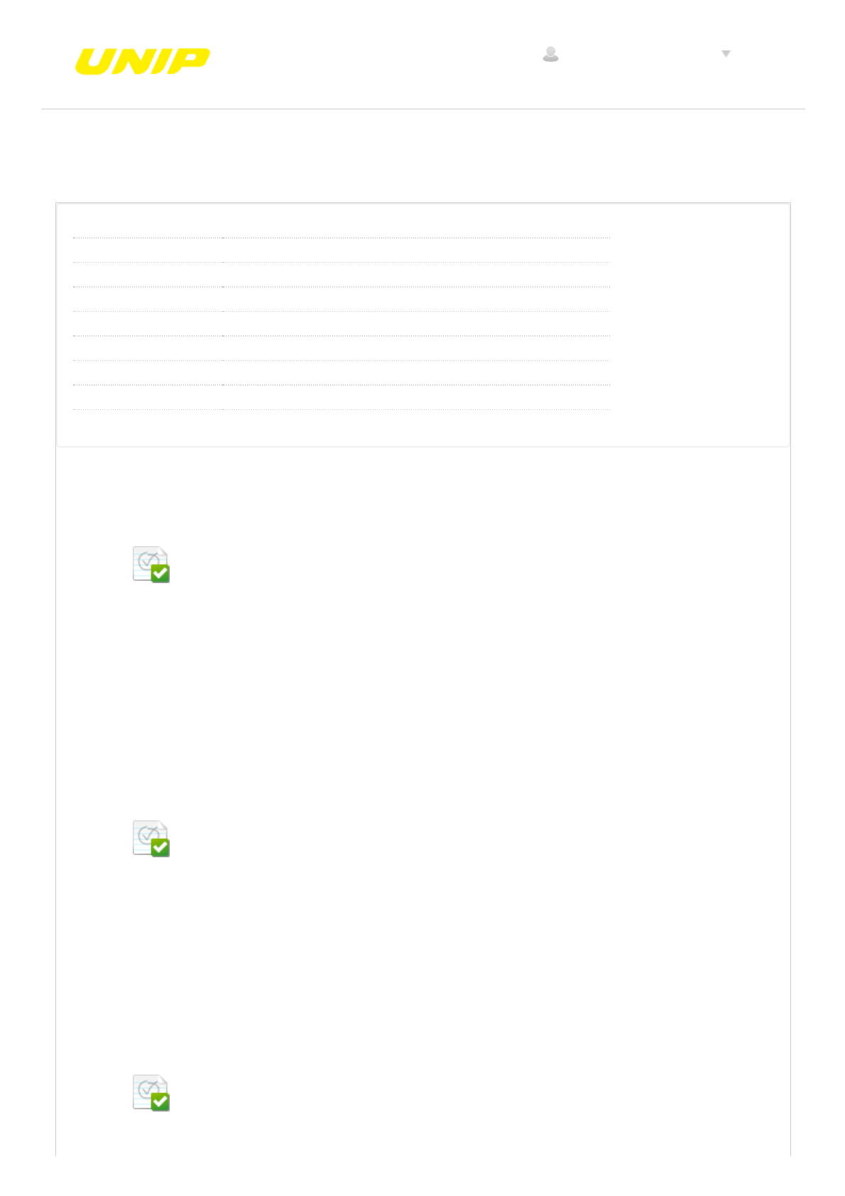 05/05/2018 Revisar envio do teste: QUESTIONÁRIO UNIDADE II – D565_... https://ava.ead.unip.br/webapps/assessment/review/review.jsp?attempt_id=_3942185_1&course_id=_7654_1&content_id=_131829_1&return_content=1&step= Revisar envio do teste: QUESTIONÁRIO UNIDADE II CIRCUITOS ELETRONICOS D565_15325_R_20181 CONTEÚDO Usuário ANDERSON MOREIRA PIRES BATISTA Curso CIRCUITOS ELETRONICOS Teste QUESTIONÁRIO UNIDADE II Iniciado 05/05/18 22:36 Enviado 05/05/18 22:55 Status Completada Resultado da tentativa 2,7 em 3 pontos Tempo decorrido 18 minutos Resultados exibidos Respostas enviadas, Perguntas respondidas incorretamente Pergunta 1 Resposta Selecionada: b. Qual o modelo de circuito usado para análise de resposta em frequência para baixas frequências de acordo com o diagrama de Bode? Um circuito RC diferenciador passivo. Pergunta 2 Resposta Selecionada: d. Qual a alternativa correta? O ganho cai de 3 db na frequência de corte. Pergunta 3 Resposta Selecionada: Da curva de resposta em frequência dos ampli�cadores de pequenos sinais a JFET, a relação entre o ganho nas frequências médias e o máximo ganho é de: CONTEÚDOS ACADÊMICOS BIBLIOTECAS MURAL DO ALUNOUNIP 0,3 em 0,3 pontos 0,3 em 0,3 pontos 0,3 em 0,3 pontos ANDERSON BATISTA 2 05/05/2018 Revisar envio do teste: QUESTIONÁRIO UNIDADE II – D565_... https://ava.ead.unip.br/webapps/assessment/review/review.jsp?attempt_id=_3942185_1&course_id=_7654_1&content_id=_131829_1&return_content=1&step= b. 1 Pergunta 4 Resposta Selecionada: b. A curva de resposta de um ampli�cador apresenta nas frequências de cortes um circuito passa alta e passa baixa, então: Passa-alta para a frequência de corte inferior e passa-baixa para a frequência de corte superior. Pergunta 5 Resposta Selecionada: d. Determinar para o ampli�cador de pequeno sinal a JFET a impedância de entrada e de saída, sabendo-se que VDD = 20V, RD = 2K, RG= 10K, RB2 = 50K, RB1 = 200K. ZIN = 40K e ZOUT = 2K. Pergunta 6 Um ampli�cador de pequeno sinal a JFET, modelo autopolarização, possui frequência de corte superior em 1,5MHz. Sabendo-se que a tensão aplicada na entrada é de 1000mV e�caz e o ganho do circuito é de 10, qual é a tensão e�caz medida na saída do circuito na frequência de corte? 0,3 em 0,3 pontos 0,3 em 0,3 pontos 0,3 em 0,3 pontos 05/05/2018 Revisar envio do teste: QUESTIONÁRIO UNIDADE II – D565_... https://ava.ead.unip.br/webapps/assessment/review/review.jsp?attempt_id=_3942185_1&course_id=_7654_1&content_id=_131829_1&return_content=1&step= Resposta Selecionada: c. Aproximadamente 7V. Pergunta 7 Resposta Selecionada: a. A curva de resposta em frequência de um ampli�cador de pequenos sinais apresenta um ganho igual a 10 em frequências médias. Determinar o ganho que o ampli�cador apresenta na frequência de corte do ampli�cador. Aproximadamente igual a 7. Pergunta 8 Resposta Selecionada: a. A curva de resposta em frequência de ampli�cador de pequeno sinal a JFET, na região de zero até a frequência de corte inferior e, na região de frequência de corte superior, até a frequência em que o ganho é unitário se comporta, respectivamente, como circuito: Passa-baixa e passa-alta. Pergunta 9 Resposta Selecionada: a. Qual o modelo de circuito usado para realizar análise AC em alta frequência nos circuitos ampli�cadores de pequenos sinais a transistor? O modelo é um circuit RC integrativo. Pergunta 10 0,3 em 0,3 pontos 0 em 0,3 pontos 0,3 em 0,3 pontos 0,3 em 0,3 pontos 05/05/2018 Revisar envio do teste: QUESTIONÁRIO UNIDADE II – D565_... https://ava.ead.unip.br/webapps/assessment/review/review.jsp?attempt_id=_3942185_1&course_id=_7654_1&content_id=_131829_1&return_content=1&step= Sábado, 5 de Maio de 2018 22h55min11s BRT Resposta Selecionada: a. Sabendo-se que a frequência de corte superior de um ampli�cador de pequenos sinais é igual a 1,5MHz; o ganho nas frequências médias é igual a 10. Qual o valor do ganho em 1,5MHz. 7 ← OK