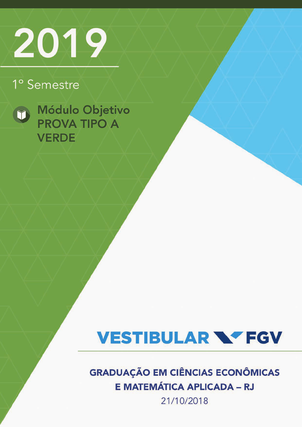 • Veri�que se o tipo de prova que você está recebendo é o mesmo marcado na Folha de Respostas e na etiqueta colada na carteira. • Veri�que também se a última folha deste caderno contém as imagens ampliadas e em cores das questões 53, 56, 57, 59, 61, 62, 63 e 65. • Não é permitido o uso de calculadoras. • Não haverá substituição da Folha de Respostas. • A Folha de Respostas deverá ser preenchida a caneta; depois de marcada, a alternativa não poderá ser apagada ou rasurada, sob pena de anulação da resposta. • A duração total do Módulo Objetivo é de 4h. • O candidato só poderá deixar de�nitivamente o local das provas a partir de uma hora após seu início, não podendo levar o Caderno de Questões; ou a partir de duas horas após o início da prova, podendo levar o Caderno de Questões. • Este módulo consiste em 4 (quatro) provas de múltipla escolha, com 15 questões em cada uma das áreas de conhecimentos a seguir: • Exatas (Matemática e Física) - 1 a 20 • Língua Portuguesa, Literatura e Interpretação de Textos - 21 a 35 • Língua Inglesa e Interpretação de Textos - 36 a 50 • Humanas (História, Geogra�a e Atualidades) - 51 a 65 Instruções Leia com atenção: 1 O professor Paulo entregou as provas de matemática para a turma da manhã, que tem 19 alunos, e anunciou que a média na prova tinha sido 5,00. Após este anúncio, os alunos informaram ao professor que Eduardo tinha acabado de pedir para passar da turma da tarde para a da manhã e que a turma da manhã tinha, portanto, 20 alunos agora. Paulo então anunciou que, contando com a prova do Eduardo, a média tinha passado para 5,25. A nota que o Eduardo obteve na prova foi A 9 B 6 C 8 D 7 E 10 Durante a aula de matemática, Beto anotou um exercício do quadro negro para refazer quando chegasse em casa. O exercício pedia para encontrar as raízes de certa equação de segundo grau 02 =++ CBxAx . Quando chegou em casa, Beto releu o exercício, mas percebeu que só tinha anotado os valores de 2=A e 8−=B e não tinha anotado o valor de C. A equação era, portanto, 082 2 =+− Cxx . Porém, Beto lembrava-se de que o professor tinha dito que a equação tinha uma única solução. A solução da equação do exercício é A 2 B 5 C 4 D 6 E 3 No plano cartesiano, a circunferência C tem centro no ponto )12,0(=P e raio 13=R . Esta circunferência tem dois pontos de interseção com o eixo Ox (reta y=0). A distância entre estes dois pontos é A 8 B 6 C 9 D 7 E 10 2 O navegante português Antônio Alvarinho partiu com sua caravela da latitude 30° norte em direção ao sul. Após exatos 16 dias, navegando sempre para o sul, Alvarinho observou as estrelas do céu e notou que estava na latitude 15° sul. Considerando que o raio da terra é de aproximadamente 6400 km, a velocidade média da caravela de Alvarinho nestes 16 dias foi aproximadamente de A 250 km/dia B 314 km/dia C 416 km/dia D 825 km/dia E 125 km/dia O conjunto A é { }10002,,32,22,12 ⋅⋅⋅⋅ K . O conjunto B é { }2000,,6,4,2 K . O número de elementos de BA∩ é A 24 B 20 C 16 D 22 E 18 Dois amigos, em visita a uma praia, estão decidindo se vão ou não nadar até uma ilha que se encontra em frente. Resolvem então tentar estimar a distância da praia à ilha. A praia é retilínea e tem exatamente um quilômetro. Usando um instrumento improvisado, eles medem o ângulo entre a linha da praia e a reta na direção da ilha nos dois pontos extremos da praia, os pontos A e B da figura. Em um extremo, o ângulo é de 30° e, no outro, o ângulo é de 45°. A distância da praia à ilha, em metros, de acordo com estas medidas, é de A 13 1000 + B 23 1000 + C 6 1000 D 12 1000 + E 3 1000 3 Na gaveta de Vicente, há 3 canetas pretas, 3 vermelhas e 3 azuis. Apressado para chegar no horário da prova, Vicente pegou três canetas aleatoriamente, sem conferir as cores. Qual é a probabilidade de Vicente ter pego três canetas vermelhas? A 81 2 B 150 2 C 84 1 D 100 3 E 27 1 Hugo coletou dados sobre o censo populacional brasileiro de 1940 até 2010 e encontrou uma reta que descreve bem como a expectativa de vida do brasileiro , ao nascer, tem crescido com o tempo. A reta que ele encontrou tem equação 880 1000 475 −= xy , onde x é o ano, 20101940 ≤≤ x , e y é a expectativa de vida ao nascer (em anos). Segundo este modelo descrito pelo Hugo, em que ano o Brasil atingiu a expectativa de vida de 70 anos? A 1990 B 2010 C 2000 D 1995 E 2005 4 Alice entrou em uma refinada confeitaria e pediu água quente para fazer chá. O garçom serviu a água em um bule com aquecimento elétrico, onde a água estava fervendo (temperatura de 100° C). Alice quer a temperatura de 70°C e não quer esperar. Ela pode misturar água fria (10° C) disponível em uma jarra sobre sua mesa. O bule com água fervendo contém 200 ml de água. Alice desliga o bule da tomada e despeja água fria dentro dele. Desprezando a troca de temperatura para o meio ambiente, o volume de água fria que Alice deve verter no bule para que a temperatura passe imediatamente para 70°C após a mistura é de A 130 ml B 100 ml C 120 ml D 140 ml E 110 ml A empresa de fundição Progresso S.A. vai produzir um novo modelo de chapas metálicas que são usadas como cobertura provisória de buracos na rua. O modelo atual de chapa é um quadrado com lado medindo 2 metros. O novo modelo de uma chapa tem a mesma espessura, mas é retangular com o lado maior medindo o dobro do lado menor. Para que a chapa retangular tenha o mesmo peso da chapa quadrada, o comprimento do lado menor deve ser A 2 m B 3 m C 6 23 m D 6 32 m E 2 32 m 5 Certa empresa pretende vender amêndoas torradas em embalagens de papel com formato de pirâmides. O setor de marketing da empresa sugeriu três características para a embalagem: a base da pirâmide deve ser um quadrado, a altura deve ter o dobro do comprimento do lado do quadrado da base e o volume da embalagem deve ser de 144 cm3 para caber a q