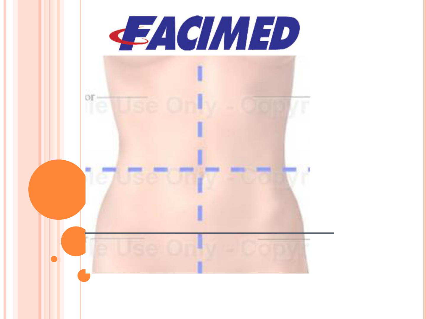 Prof. Mestre Gizeli Silva Gimenez 2018 Curso de Medicina Habilidades Específicas III Semiologia Abdominal História Clínica Dor abdominal Apetite Disfagia Intolerância alimentar Náuseas e vômitos Hábitos intestinais História abdominal pregressa Medicamentos Hiporexia / Anorexia 2 Achados Disfagia Pirose Dor esofageana Regurgitacão Eructacão Soluço Sialorréia Odinofagia Vômitos Hematêmese Epigastralgia Diarréia Constipação Distensão abdominal Flatulência Tenesmo Prurido anal Melena Hematoquezia Herniações Hematoquezia – sangramento intestinal com sangue vivo Melena – sangramento nas fezes de origem alta. Fezes em “borra de café” Tenesmo- É uma condição caracterizada pela vontade constante de defecar, desconfortavel. Dolorosa.. Com pouca eliminação de fezes 3 Exame físico Delimitação da região abdominal Sequência do Exame Físico Posicionar o paciente em decúbito dorsal, com tronco e abdome expostos, em ambiente com boa luminosidade e temperatura adequada. O médico deve ficar à sua direita, aquecer as mãos e explicar o procedimento ao paciente. Inspeção Ausculta Percussão Palpação Inspeção abdominal Divisão Topográfica do abdome Divisão Topográfica do abdome Divisão Topográfica do abdome 10 Tipos de Abdome Plano Escavado Globoso Batráquio Avental Pendular Tipos de Abdome Plano – descrição do Abdome normal Plano Tipos de Abdome Escavado Retração da parede abdominal Ex: Pessoas muito magras Escavado Tipos de Abdome Globoso: Aumentado globalmente de tamanho Diâmetro ântero-posterior maior que o transverso Exemplos: Gravidez, ascite, obesidade, obstrução intestinal. Globoso Tipos de Abdome Batráquio Diâmetro Transverso maior que diâmetro ântero-posterior Ex: Ascite em regressão (pressão nas laterais) Batráquio Tipos de Abdome Avental Porção inferior cai nas coxas Ex: Obesos Em avental Tipos de Abdome Pendular Protusão da parte inferior pelas vísceras Ex: Flacidez puerperal Pendular Circulação colateral Tipo Cava versus Tipo Porta Circulação colateral Tipo Cava versus Tipo Porta Cabeça de Medusa Circulação colateral tipo portal: ocorre quando há obstáculo ao fluxo venoso proveniente do tubo digestivo e baço em direção ao fígado. É o tipo de circulação colateral mais frequente, caracterizada por manter o sentido normal da circulação, sempre centrífuga em relação ao umbigo. Geralmente melhor percebidas acima da cicatriz umbilical, quando exuberantes em torno do umbigo confere o aspecto denominadocabeça de medusa. - Circulação colateral tipo cava inferior: observa-se ectasia venosa em andar inferior de abdome e regiões laterais, sentido da corrente é ascendente. Ocorre quando há trombose de cava inferior. - Circulação colateral tipo cava superior- observam-se ectasias de vasos em andar superior de abdome, sendo o sentido da corrente, descendente. - Circulação colateral do tipo misto - associa-se a circulação colateral tipo portal e de cava inferior, com sentido da corrente, ascendente 19 Herniações A hérnia da parede abdominal ocorre quando parte de um órgão (p ex., alças do intestino delgado) se desloca, através de um orifício (chamado de anel herniário), e invade um espaço indevido (saco herniário). As hérnias mais frequentes na região envolvida pela parede abdominal são: - epigástrica: ocorre na linha média do abdômen (Linha Alba), como resultado do afastamento dos músculos retos abdominais (dois músculos localizados na parte anterior e central do abdômen, acima do umbigo). A cirurgia é o procedimento indicado para tratar, pois não há fechamento espontâneo dessa hérnia. - umbilical (ou paraumbilical): surge exatamente na região da cicatriz umbilical, geralmente, quando uma alça intestinal atravessa o tecido muscular. Isso pode acontecer por um defeito congênito ou adquirido, devido a esforços em demasia, gestação ou obesidade. No início, o principal sintoma é dor local ao toque ou quando é feito algum esforço. Ao longo do tempo, surge um abaulamento. Se a hérnia for diagnosticada ainda no início é possível reduzir o conteúdo herniário, retornando-o para seu local natural. Mas se esse conteúdo estiver muito volumoso e com um anel herniário estreito, a hérnia umbilical pode se tornar irredutível, aumentando o desconforto e as dores. Esta situação é perigosa, pois pode acontecer o estrangulamento herniário. Os bebês estão mais vulneráveis a este tipo de hérnia, mas neles, normalmente ela desaparece espontaneamente ao longo dos primeiros anos de vida. - inguinal: Atinge a virilha (zona de junção entre a coxa e a parte inferior do abdome) e corresponde a 80% dos registros da doença. Os homens são mais vulneráveis a esse tipo de hérnia e ainda sofrem o risco de terem a doença expandida para os testículos, desenvolvendo, assim, a hérnia inguinoescrotal. - inguinoescrotal: ocorre na bolsa escrotal, normalmente, em consequência da hérnia inguinal que se expande e invade essa estrutura. 20 Manobra de valsalva Amplamente difundida, é realizada ao se exalar forçadamente o ar contra os lábios fechados e nariz tapado. A manobra de Valsalva aumenta a pressão intraabdominal e protrui a hérnia. CICATRIZES ausculta Ausculta Deve sempre preceder a percussão e a palpação, para não alterar o sons abdominais. Ruídos Hidroaéreos - RHA São ruídos decorrentes da movimentação de ar e líquidos no intestino delgado (peristalse) Normal: 5-30 vezes/min, numa média de 8 RHA/minuto Ruídos Hiperativos x Silêncio abdominal Borborigmos Roncos predominância de gases em relação ao conteúdo liquido do órgão Fome Borborigmo: Ocorre quando houver predominância de gases em relação ao conteúdo liquido do órgão. É o ronco da barriga, que indivíduos normais podem apresentar quando estão com fome. Em casos de obstrução incompleta do intestino o ruído hiperativo pode ser audível até dois metros do paciente. Ausencia de ruidos –