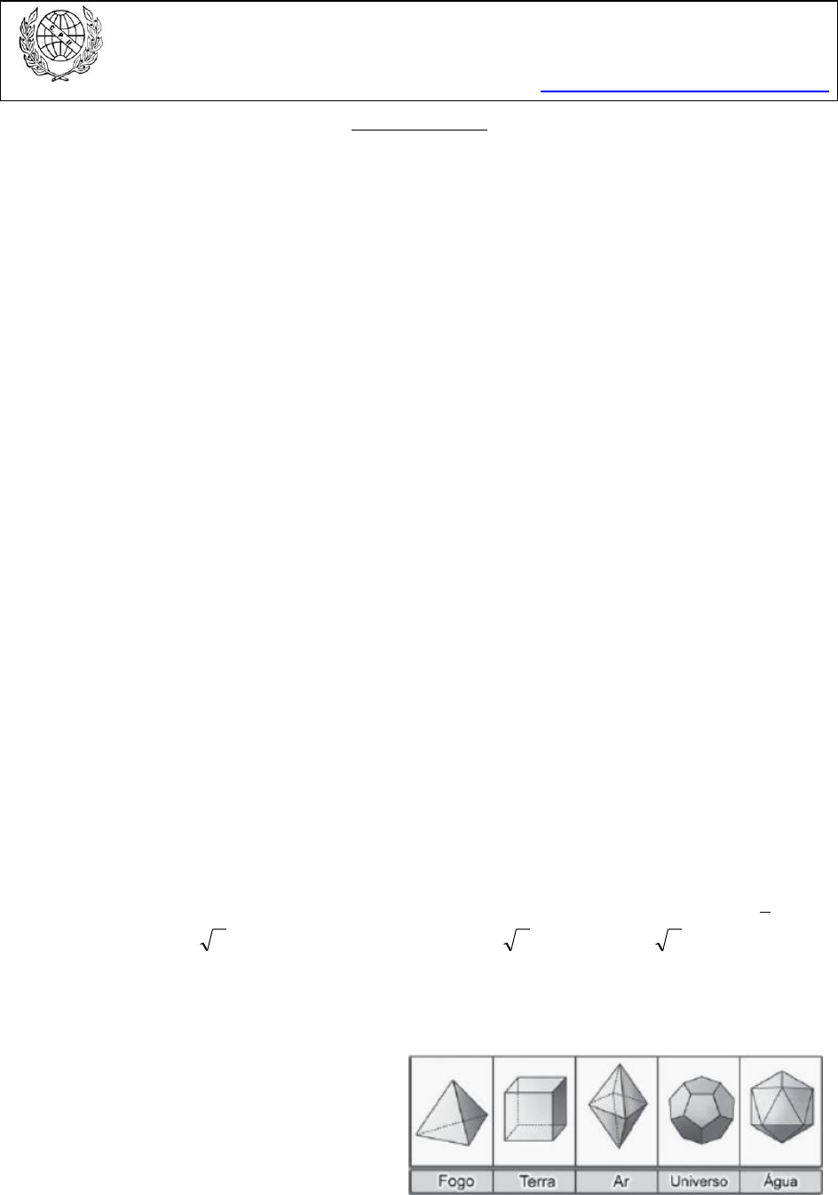 COLÉGIO PEDRO II - CAMPUS SÃO CRISTÓVÃO III 3ª SÉRIE – MATEMÁTICA II – PROF. WALTER TADEU www.professorwaltertadeu.mat.br Poliedros - 2013 1. (Cesgranrio) Um poliedro convexo tem 14 vértices. Em 6 desses vértices concorrem 4 arestas, em 4 desses vértices concorrem 3 arestas e, nos demais vértices, concorrem 5 arestas. O número de faces desse poliedro é igual a: a) 16 b) 18 c) 24 d) 30 e) 44 2. (UFPE) Um poliedro convexo possui 10 faces com três lados, 10 faces com quatro lados e 1 face com dez lados. Determine o número de vértices deste poliedro. 3. (Fuvest) O número de faces triangulares de uma pirâmide é 11. Pode-se, então, afirmar que essa pirâmide possui: a) 33 vértices e 22 arestas b) 12 vértices e 11 arestas c) 22 vértices e 11 arestas d) 11 vértices e 22 arestas e) 12 vértices e 22 arestas. 4. (Mack) A soma dos ângulos de todas as faces de uma pirâmide é . Então o número de lados do polígono da base da pirâmide é: a) 8 b) 9 c) 10 d) 11 e) 12 5. (Mack) Considere uma pirâmide cuja base é um polígono convexo. Se a soma das medidas dos ângulos internos de todas as suas faces é 3600º, o número de lados da base dessa pirâmide é igual a: a) 11 b) 12 c) 9 d) 10 e) 8 6. (Cesgranrio) Um poliedro convexo é formado por 80 faces triangulares e 12 pentagonais. O número de vértices do poliedro é: a) 80 b) 60 c) 50 d) 48 7. Um poliedro convexo tem 15 faces triangulares, 7 faces pentagonais e 2 faces hexagonais. O número de vértices desse poliedro é: a) 24 b) 48 c)73 d) 96 8. (Unitau) A soma dos ângulos das faces de um poliedro convexo vale 720°. Sabendo-se que o número de faces vale 2/3 do número de arestas, pode-se dizer que o número de faces vale. a) 6 b) 4 c) 5 d) 12 e) 9 9. (UFPE) Calcule a oitava potência do comprimento, em metros, da aresta de um icosaedro regular, sabendo-se que sua área mede 15m2. 10. (UNITAU) A soma S das áreas das faces de um tetraedro regular em função de sua aresta a é: a) b) c) d) e) 11. (UEL) Para explicar a natureza do mundo, Platão “[...] apresenta a teoria segundo a qual os ‘quatro elementos’ admitidos como constituintes do mundo - o fogo, o ar, a água e a terra - [...] devem ter a forma de sólidos regulares. [...] Para não deixar de fora um sólido regular, atribuiu ao dodecaedro a representação da forma de todo o universo.” (DEVLIN, Keith. Matemática: a ciência dos padrões. Porto: Porto Editora, 2002. p.119.) As figuras a seguir representam esses sólidos geométricos, que são chamados de poliedros regulares. Um poliedro é um sólido limitado por polígonos. Cada poliedro tem um certo número de polígonos em torno de cada vértice. Uma das figuras anteriores representa um octaedro. A soma das medidas dos ângulos em torno de cada vértice desse octaedro é: a) 180º b) 240º c) 270º d) 300º e) 324º Respostas: 1) a; 2) 21; 3) e; 4) c; 5) a; 6) b; 7) a; 8) b; 9) 9m; 10) b; 11) b _1430650356.unknown _1430650507.unknown _1430650508.unknown _1430650506.unknown _1430650505.unknown _1428864514.unknown