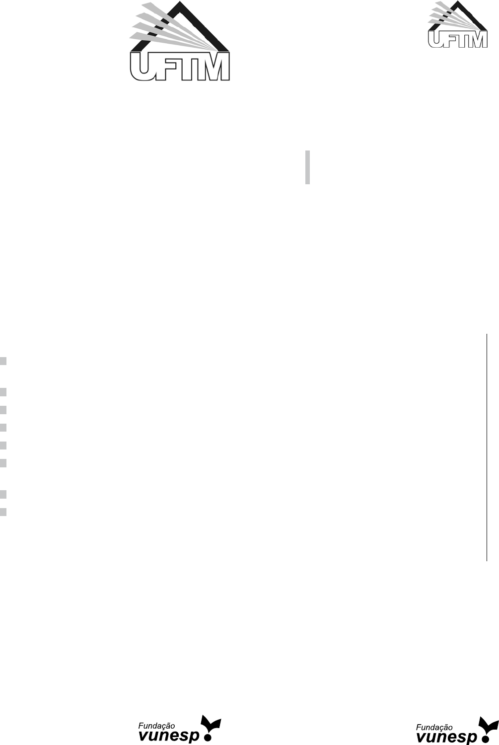 Vestibular de inVerno 2010 Segunda FaSe 4. ProVa de ConheCimentos esPeCífiCos e redação instruçÕes Verifique se estão corretos seu nome e número de inscrição impressos na capa deste caderno. Assine com caneta de tinta azul ou preta apenas no local indicado. Esta prova contém 20 questões discursivas e uma proposta de redação. A prova terá a duração total de 5 horas. A prova deve ser feita com caneta de tinta azul ou preta. A resolução e a resposta de cada questão devem ser apresentadas no espaço correspondente. Não serão consideradas questões resolvidas fora do local indicado. Os rascunhos não serão considerados na correção. O candidato somente poderá entregar este caderno e sair do prédio depois de transcorridas 3 horas, contadas a partir do início da prova. AguArdE A OrdEm dO fiscAl pArA Abrir EstE cAdErNO dE quEstõEs. 10.07.2010 VeStibular de inVerno 2010 Segunda FaSe 10.07.2010 as si na tu ra d o ca nd id at o 2FMTM1002/04-CursoFísMatQuí n à o e SC r eV a n eS te e SP a Ç o 3 R E S E R VA D O À B A N C A C O R R E TO R A a) b) TOTAL FMTM1002/04-CursoFísMatQuí RESolução E RESpoSta FÍSICa 01. Um pedreiro ergue uma cavadeira de 1,5 kg, até que sua extremidade inferior fique a 1,2 m do solo. a) Se o movimento retilíneo e vertical ocorre em 0,4 s, determine a aceleração, suposta constante, impressa à cavadeira durante a sua descida. b) Se, no entanto, o pedreiro simplesmente soltar a cavadeira a 1,2 m do solo, determine a energia mecânica total a ser dissipada no impacto da cavadeira com o solo. Despreze as perdas de energia com o ar durante a queda e considere g = 10 m/s2. 4FMTM1002/04-CursoFísMatQuí R E S E R VA D O À B A N C A C O R R E TO R A a) b) TOTAL RESolução E RESpoSta 02. Um jogo bastante antigo tem como objetivo derrubar um pino metálico apoiado verticalmente sobre uma superfície horizontal. O objeto que derruba o pino é a “malha”, um disco de bronze bastante massivo, que é lançado em direção ao pino. Após um breve sobrevoo, a malha toca a superfície e nela desliza, perdendo gradativamente sua velocidade. a) Considerando o movimento retilíneo e horizontal da malha imediatamente antes de atingir o pino, indique o nome, direção e sentido das forças que atuam sobre a malha. b) Suponha que a malha, no momento em que toca a superfície, tenha velocidade horizontal de 6 m/s. Levando em conta que ela ainda escorregará sobre a superfície por uma distância de 10 m até parar, sem colidir com o pino, determine o valor absoluto da aceleração média a que é submetida a malha. 5 R E S E R VA D O À B A N C A C O R R E TO R A a) b) TOTAL FMTM1002/04-CursoFísMatQuí RESolução E RESpoSta 03. Dois termômetros, um perfeitamente calibrado, foram colocados simultaneamente dentro do mesmo recipiente, com a finalidade de ser feita a calibração do segundo termômetro. No recipiente, os dois termômetros alcançam o equilíbrio térmico com gelo fundente, momento em que registraram 0 ºC e 10 ºC. Tendo o gelo se tornado água líquida, observou-se que, em um dado mo- mento, ambos os termômetros indicaram o mesmo valor numérico de temperatura, 20º. Indicando por C as leituras de temperatura obtidas a partir do termômetro aferido (em ºC) e por E, as leituras de temperatura obtidas pelo termômetro a ser aferido (em ºE), e considerando que a experiência foi feita ao nível do mar, determine: a) A equação que permite a calibração do termômetro E, em função da leitura do termômetro aferido C. b) O valor indicado no termômetro a ser aferido, quando a temperatura da água for 100 ºC. 6FMTM1002/04-CursoFísMatQuí R E S E R VA D O À B A N C A C O R R E TO R A a) b) TOTAL RESolução E RESpoSta 04. Um gás ideal passa pelo processo ABCD apresentado no gráfico. a) Se no ponto A a temperatura era de 100K, determine o valor da temperatura alcançada pelo gás no ponto D. b) Determine o trabalho, em joules, realizado pelo gás em sua fase de expansão isobárica. 7 R E S E R VA D O À B A N C A C O R R E TO R A a) b) TOTAL FMTM1002/04-CursoFísMatQuí RESolução E RESpoSta 05. Uma pequena calota esférica, obtida de uma esfera de diâmetro 4 m, é espelhada em ambos os lados, podendo servir como es- pelho esférico côncavo ou convexo. Suponha que a superfície da calota seja suficientemente pequena para que as condições de estigmatismo de Gauss sejam garantidas. a) Quando a calota é utilizada como espelho esférico côncavo e um objeto é diante dela colocado a uma distância de 2 m de seu vértice, sobre o eixo principal, a que distância se formará a imagem? A imagem obtida é imprópria, real ou virtual? b) Utilizando a calota como espelho esférico convexo, a que distância do vértice do espelho deve ser colocado um objeto, sobre o eixo principal, para que a imagem obtida tenha a metade do tamanho do objeto? Neste caso, a imagem obtida é direita ou invertida em relação à posição do objeto? 8FMTM1002/04-CursoFísMatQuí R E S E R VA D O À B A N C A C O R R E TO R A a) b) TOTAL RESolução E RESpoSta 06. Utilizando cinco resistores de 300 Ω, foi montado o circuito elétrico esquematizado. Determine: a) A resistência equivalente do circuito. b) A força eletromotriz do gerador, considerando que a corrente elétrica em cada resistor tem intensidade de 2 A. 9 R E S E R VA D O À B A N C A C O R R E TO R A a) b) TOTAL FMTM1002/04-CursoFísMatQuí RESolução E RESpoSta MatEMÁtICa 07. O lucro mensal, em reais, de um empreendimento comercial é descrito pela expressão matemática L(t) = 2000 . (2,5)t, sendo L(t) o lucro após t meses e t = 0 o tempo inicial. Dado log2 = 0,30, determine: a) o lucro inicial. b) o tempo t necessário para que o lucro seja de R$ 8.000,00. 10FMTM1002/04-CursoFísMatQuí R E S E R VA D O À B A N C A C O R R E TO R A a) b) TOTAL RESolução E RESpoSta 08. Analise o gráfico da função f(x). Determine: a) f(1). b) f(1) + f(3) + f(5). 11 R E S E R VA D O À B A N C A C O R R