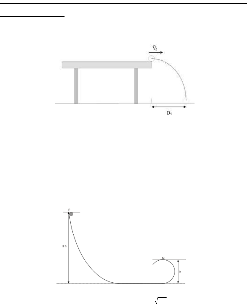 PASES 1 a ETAPA – TRIÊNIO 2010-2012 1 o DIA GABARITO 4 3 FÍSICA – QUESTÕES DE 11 A 20 11. Um estudante lançou, do alto de uma mesa, uma esfera com velocidade horizontal de módulo V1. A figura abaixo ilustra a trajetória descrita pela esfera e o respectivo alcance horizontal D1. Sabe-se que foi desprezível a resistência do ar e que o tempo de queda da esfera foi t1. Em seguida, o estudante repetiu o experimento, apenas alterando o módulo da velocidade inicial da esfera, e mediu, nessa nova situação, o tempo t2 de queda e o alcance horizontal D2. Se, nesse segundo experimento, a velocidade inicial da esfera foi o triplo da velocidade inicial do experimento anterior, é CORRETO afirmar que: a) t2 = 3 t1 e D2 = 3 D1 b) t2 = t1 e D2 = D1/3 c) t2 = t1 e D2 = 3 D1 d) t2 = t1/3 e D2 = D1 12. Uma esfera de massa m, partindo do repouso no ponto P, desliza ao longo da trajetória curva ilustrada na figura abaixo. Sabendo-se que o módulo da velocidade da esfera no ponto Q é 2gh , onde g é o módulo da aceleração gravitacional local, é CORRETO afirmar que o módulo da energia mecânica dissipada pela esfera entre os pontos P e Q é: a) 3 mgh/2 b) 2 mgh c) mgh d) nulo 4 GABARITO 4 1 o DIA PASES 1 a ETAPA – TRIÊNIO 2010-2012 13. Uma pessoa puxa um bloco entre os pontos P e Q, ao longo da rampa inclinada ilustrada na figura abaixo. Nessa situação, o módulo do trabalho realizado pela pessoa e a potência foram W1 e P1, respectivamente. Gastando o mesmo intervalo de tempo, uma outra pessoa eleva o mesmo bloco entre os pontos R e S, ao longo de uma linha vertical, também ilustrada. SITUAÇÃO 1 SITUAÇÃO 2 Em ambas as situações 1 e 2, o bloco é puxado com velocidade constante e são desprezíveis os atritos. Indicando por W2 o módulo do trabalho realizado na segunda situação e por P2 a respectiva potência, é CORRETO afirmar que: a) W2 < W1 e P2 = P1 b) W2 = W1 e P2 = P1 c) W2 = W1 e P2 > P1 d) W2 < W1 e P2 > P1 14. A figura abaixo ilustra um conjunto de duas polias 1 e 2 que giram acopladas por uma correia que não desliza. A polia 2 tem o diâmetro duas vezes maior que o diâmetro da polia 1. Se a polia 1 gira a uma frequência angular constante de 100 rpm (rotações por minuto), é CORRETO afirmar que a frequência angular da polia 2 é: a) 400 rpm b) 50 rpm c) 200 rpm d) 25 rpm 15. Um elevador ora se encontra em repouso, ora sobe com velocidade de módulo constante V, ora desce com velocidade de módulo constante 2V. Indicando-se por To , T1 e T2, respectivamente, as trações no cabo desse elevador quando ele está parado, ou subindo ou descendo nessas condições, é CORRETO afirmar que a relação entre essas tensões é: a) T2 = T1 = T0 b) T2 > T0 > T1 c) T2 < T1 < T0 d) T2 > T1 > T0 PASES 1 a ETAPA – TRIÊNIO 2010-2012 1 o DIA GABARITO 4 5 16. A figura abaixo ilustra um diagrama com três vetores M r , N r e Q r . É CORRETO afirmar que: a) NQM rrr += b) QMN rrr −= c) NQM rrr −= d) QMN rrr += 17. A figura abaixo ilustra as órbitas de três satélites A, B e C, com velocidades de módulos VA , VB e VC, respectivamente. Sendo mA > mB > mC, onde mA, mB e mC são as respectivas massas desses satélites, é CORRETO afirmar que: a) VA > VB = VC b) VA < VB < VC c) VA > VB > VC d) VA < VB = VC 18. Um passageiro de um trem move-se ao longo do corredor de um vagão, afastando-se do maquinista com uma velocidade de módulo 4 km/h. Um observador parado na estação vê, nesse instante, o trem passar com velocidade de módulo 80 km/h. A velocidade do passageiro em relação ao observador na estação é: a) 76 km/h b) 42 km/h c) 80 km/h d) 84 km/h 6 GABARITO 4 1 o DIA PASES 1 a ETAPA – TRIÊNIO 2010-2012 19. Em um mesmo laboratório, um manômetro, cujo tubo da direita é aberto, encontra-se ligado separadamente a três recipientes contendo gases, como ilustrado nas figuras abaixo. Em relação às pressões P1, P2 e P3 exercidas pelos gases 1, 2 e 3, respectivamente, é CORRETO afirmar que: a) P1 = P3 < P2 b) P1 = P2 = P3 c) P1 < P2 < P3 d) P1 > P2 > P3 20. Uma criança de massa igual a 40 kg caminha para a direita sobre uma tábua homogênea que está apoiada em dois suportes, conforme ilustrado na figura abaixo. A tábua tem 30 kg de massa e 10,0 m de comprimento. É CORRETO afirmar que a tábua perde o contato com o suporte da esquerda quando a distância X entre a criança e o suporte da direita é de: a) 1,0 m b) 2,0 m c) 3,0 m d) 1,5 m