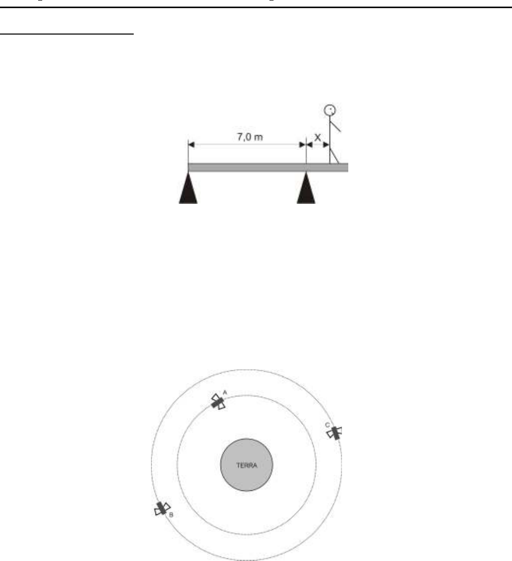 PASES 1 a ETAPA – TRIÊNIO 2010-2012 1 o DIA GABARITO 2 3 FÍSICA – QUESTÕES DE 11 A 20 11. Uma criança de massa igual a 40 kg caminha para a direita sobre uma tábua homogênea que está apoiada em dois suportes, conforme ilustrado na figura abaixo. A tábua tem 30 kg de massa e 10,0 m de comprimento. É CORRETO afirmar que a tábua perde o contato com o suporte da esquerda quando a distância X entre a criança e o suporte da direita é de: a) 1,5 m b) 3,0 m c) 2,0 m d) 1,0 m 12. A figura abaixo ilustra as órbitas de três satélites A, B e C, com velocidades de módulos VA , VB e VC, respectivamente. Sendo mA > mB > mC, onde mA, mB e mC são as respectivas massas desses satélites, é CORRETO afirmar que: a) VA > VB = VC b) VA > VB > VC c) VA < VB = VC d) VA < VB < VC 4 GABARITO 2 1 o DIA PASES 1 a ETAPA – TRIÊNIO 2010-2012 13. Um estudante lançou, do alto de uma mesa, uma esfera com velocidade horizontal de módulo V1. A figura abaixo ilustra a trajetória descrita pela esfera e o respectivo alcance horizontal D1. Sabe-se que foi desprezível a resistência do ar e que o tempo de queda da esfera foi t1. Em seguida, o estudante repetiu o experimento, apenas alterando o módulo da velocidade inicial da esfera, e mediu, nessa nova situação, o tempo t2 de queda e o alcance horizontal D2. Se, nesse segundo experimento, a velocidade inicial da esfera foi o triplo da velocidade inicial do experimento anterior, é CORRETO afirmar que: a) t2 = t1 e D2 = D1/3 b) t2 = 3 t1 e D2 = 3 D1 c) t2 = t1 e D2 = 3 D1 d) t2 = t1/3 e D2 = D1 14. Uma esfera de massa m, partindo do repouso no ponto P, desliza ao longo da trajetória curva ilustrada na figura abaixo. Sabendo-se que o módulo da velocidade da esfera no ponto Q é 2gh , onde g é o módulo da aceleração gravitacional local, é CORRETO afirmar que o módulo da energia mecânica dissipada pela esfera entre os pontos P e Q é: a) mgh b) 3 mgh/2 c) 2 mgh d) nulo PASES 1 a ETAPA – TRIÊNIO 2010-2012 1 o DIA GABARITO 2 5 15. Uma pessoa puxa um bloco entre os pontos P e Q, ao longo da rampa inclinada ilustrada na figura abaixo. Nessa situação, o módulo do trabalho realizado pela pessoa e a potência foram W1 e P1, respectivamente. Gastando o mesmo intervalo de tempo, uma outra pessoa eleva o mesmo bloco entre os pontos R e S, ao longo de uma linha vertical, também ilustrada. SITUAÇÃO 1 SITUAÇÃO 2 Em ambas as situações 1 e 2, o bloco é puxado com velocidade constante e são desprezíveis os atritos. Indicando por W2 o módulo do trabalho realizado na segunda situação e por P2 a respectiva potência, é CORRETO afirmar que: a) W2 = W1 e P2 > P1 b) W2 = W1 e P2 = P1 c) W2 < W1 e P2 = P1 d) W2 < W1 e P2 > P1 16. A figura abaixo ilustra um conjunto de duas polias 1 e 2 que giram acopladas por uma correia que não desliza. A polia 2 tem o diâmetro duas vezes maior que o diâmetro da polia 1. Se a polia 1 gira a uma frequência angular constante de 100 rpm (rotações por minuto), é CORRETO afirmar que a frequência angular da polia 2 é: a) 200 rpm b) 50 rpm c) 400 rpm d) 25 rpm 17. Um passageiro de um trem move-se ao longo do corredor de um vagão, afastando-se do maquinista com uma velocidade de módulo 4 km/h. Um observador parado na estação vê, nesse instante, o trem passar com velocidade de módulo 80 km/h. A velocidade do passageiro em relação ao observador na estação é: a) 42 km/h b) 80 km/h c) 76 km/h d) 84 km/h 6 GABARITO 2 1 o DIA PASES 1 a ETAPA – TRIÊNIO 2010-2012 18. Um elevador ora se encontra em repouso, ora sobe com velocidade de módulo constante V, ora desce com velocidade de módulo constante 2V. Indicando-se por To , T1 e T2, respectivamente, as trações no cabo desse elevador quando ele está parado, ou subindo ou descendo nessas condições, é CORRETO afirmar que a relação entre essas tensões é: a) T2 < T1 < T0 b) T2 = T1 = T0 c) T2 > T0 > T1 d) T2 > T1 > T0 19. Em um mesmo laboratório, um manômetro, cujo tubo da direita é aberto, encontra-se ligado separadamente a três recipientes contendo gases, como ilustrado nas figuras abaixo. Em relação às pressões P1, P2 e P3 exercidas pelos gases 1, 2 e 3, respectivamente, é CORRETO afirmar que: a) P1 < P2 < P3 b) P1 = P3 < P2 c) P1 = P2 = P3 d) P1 > P2 > P3 20. A figura abaixo ilustra um diagrama com três vetores M r , N r e Q r . É CORRETO afirmar que: a) NQM rrr += b) QMN rrr += c) QMN rrr −= d) NQM rrr −=