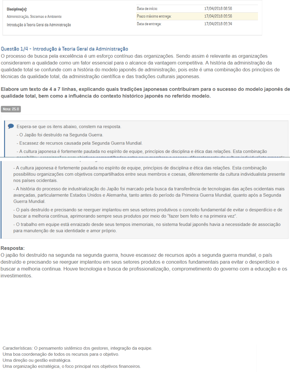 Prova Discursiva Introdução a teoria da Administração e Adminitração, Sistemas e Ambiente.