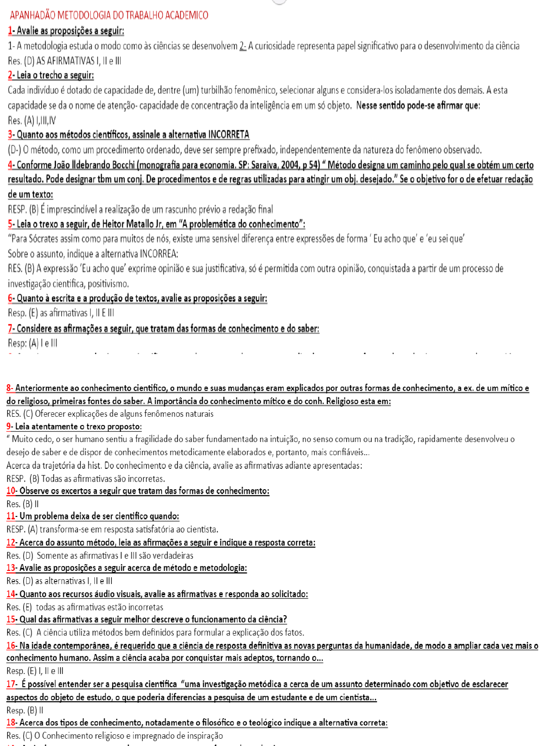 3- Quanto aos métodos científicos, assinale a alternativa INCORRETA 3 métod