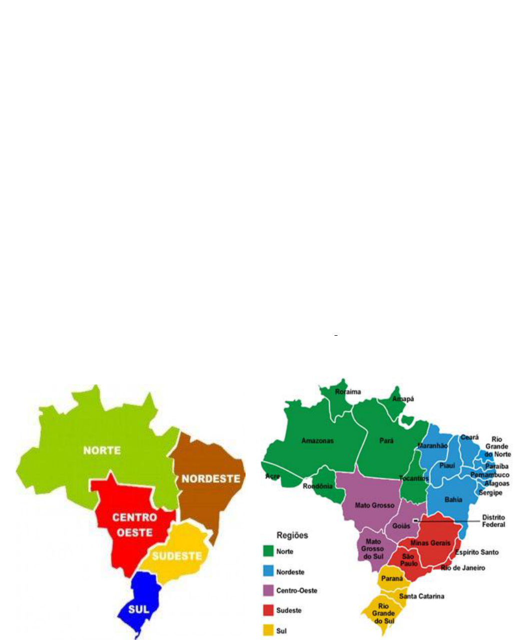 O BRASIL NO MUNDO TEMA 5 Brasil é o maior país da América do Sul, e da América Latina, sendo o quinto maior do mundo em área territorial (equivalente a 47% do território sul-americano) e população (com mais de 208 milhões de habitantes IBGE 2018). É o único país na América onde se fala majoritariamente a língua portuguesa e o maior país lusófono do planeta, além de ser uma das nações mais multiculturais e etnicamente diversas, em decorrência da forte imigração oriunda de vários cantos do mundo. A sua Constituição atual, formulada em 1988, define o Brasil como um república federativa presidencialista, formada pela união do Distrito Federal, dos 26 estados e dos 5.570 municípios. O território que atualmente forma o Brasil “foi encontrado” pelos europeus em 1500, durante uma expedição portuguesa liderada por Pedro Alvares Cabral pela região, que até então era habitada por indígenas ameríndios (índios da América) divididos entre milhares de grupos e linguísticos diferentes. Depois da chegada de Cabral em 1500 as terras indígenas tornam-se simples colônia do império Português. AS REGIÕES BRASILEIRAS TEMA 6 O território brasileiro está dividido em 26 Estados mais o Distrito Federal (DF), além de estar regionalizado, ou seja, dividido em Regiões. As Regiões do Brasil são as grandes divisões do território do país, observando as características físicas ou naturais, do relevo, do clima, da vegetação, da hidrografia, como também das atividades econômicas. Considerando que o território brasileiro possui dimensões continentais, com 8.514.877km², o IBGE (Instituto Brasileiro de Geografia e Estatística), dividiu o país desde 1974 em cinco grandes regiões. Estas são as regiões brasileiras: região norte, região nordeste, região centro-oeste, região sudeste e região sul. � INCLUDEPICTURE "http://static.todamateria.com.br/upload/52/40/524057d4384e8-regioes-brasileiras.jpg" \* MERGEFORMATINET ��� Divisão regional do Brasil TEMA 7 Portanto, as cinco regiões brasileiras estão divididas em: A Região Nordeste ocupa uma área de 1.554.291.607 km² sendo a região brasileira que possui a maior costa litorânea do país. Essa região é formada por 9 estados, a saber: Maranhão (São Luís), Piauí (Teresina), Ceará (Fortaleza), Rio Grande do Norte (Natal), Paraíba (João Pessoa), Pernambuco (Recife), Alagoas (Maceió), Sergipe (Aracaju) e Bahia (Salvador). A Região Norte ocupa uma área de 3.853.676.948 km² é a maior das regiões brasileiras. Essa região é formada por 7 estados, a saber: Amazonas (Manaus), Pará (Belém), Acre (Rio Branco), Rondônia (Porto Velho), Tocantins (Palmas), Amapá (Macapá) e Roraima (Boa Vista). A Região Cento Oeste ocupa uma área de 1.606.399.509 km², considerada a única região brasileira que não é banhada pelo mar. Essa região é formada por 3 estados, a saber: Mato Grosso (Cuiabá), Goiás (Goiana), Mato Grosso do Sul (Campo Grande) e o Distrito Federal (BRASILIA). A Região Sudeste ocupa uma área de 924.620.678 km² sendo a segunda menor região brasileira em extensão territorial e a mais desenvolvida economicamente. Além disso, é considerada a mais populosa das regiões abrigando 44% da população brasileira. Essa região é formada por 4 estados, a saber: Minas Gerais (Belo Horizonte), Espírito Santo (Vitória), São Paulo (São Paulo) e Rio de Janeiro (Rio de Janeiro). A Região Sul ocupa uma área de 576.744.310 km² sendo considerada a menor região brasileira. Formada por 3 estados: Paraná (Curitiba), Santa Catarina (Florianópolis) e Rio Grande do Sul (Porto Alegre), essa região faz fronteira com o Uruguai, Argentina e Paraguai. A Região Norte é a região que possui a maior área, ou 45,2% do território nacional) e com população de 16,3 milhões de habitantes. É a região com a menor densidade demográfica. A região possui sete estados onde um deles o Pará se destaca por seu tamanho e sua população. As Regiões Geoeconômicas do Brasil TEMA 13 1- Amazônia; 2- Centro-Sul; 3- Nordeste. Mapa geoeconômico A divisão regional oficial do Brasil é aquela estabelecida pelo Instituto Brasileiro de Geografia e Estatística (IBGE), sendo composta por cinco complexos regionais: Centro-Oeste, Nordeste, Norte, Sudeste e Sul. No entanto, além dessa regionalização do território nacional, existe outra divisão regional (não oficial), conhecida como regiões geoeconômicas do Brasil: a Amazônia, o Nordeste e o Centro-Sul. Os critérios adotados para a delimitação dessas três regiões foram os aspectos naturais e, principalmente, as características socioeconômicas. As regiões geoeconômicas do Brasil não seguem os limites das fronteiras dos estados, visto que seus critérios mais importantes são os aspectos sociais e econômicos, havendo grande dinamismo na delimitação espacial. Portanto, alguns estados brasileiros estão inseridos em diferentes regiões: a porção norte de Minas Gerais é parte integrante da chamada região Nordeste, e o restante do estado está localizado no complexo regional Centro-Sul; o extremo sul do Tocantins localiza-se na região Centro-Sul, e o restante do seu território faz parte da região da Amazônia; a porção oeste do Maranhão integra a região da Amazônia e a sua porção leste está localizada no complexo regional nordestino; Mato Grosso integra a região Centro-Sul (porção sul), além da região da Amazônia (porção centro-norte) Região geoeconômica Amazônia: É a maior das três. Tem aproximadamente 5 milhões de km2, extensão que corresponde a quase 60% do território brasileiro. Compreende todos os Estados da região Norte (com exceção do extremo sul de Tocantins). O estado do Maranhão e praticamente todo o Mato Grosso. No que se refere ao clima, esse é quente e bastante chuvoso. E quanto à vegetação, a Floresta Amazônica é a de maior predominância. Apesar de sua dimensão, possui o menor núme