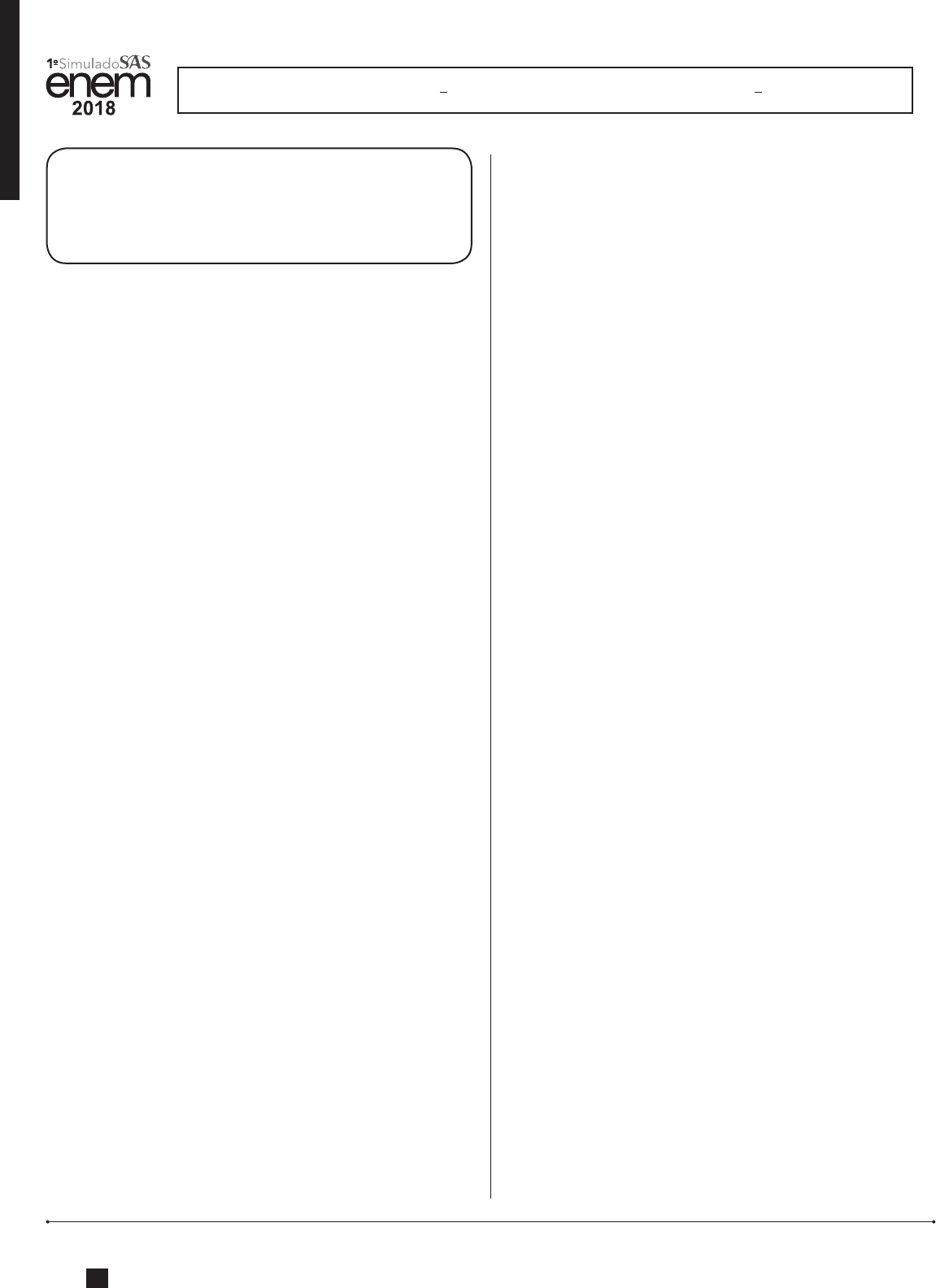 RESOLUÇÃO – 1o SIMULADO SAS ENEM 2018 | 1o DIA 1LINGUAGENS, CÓDIGOS E SUAS TECNOLOGIAS / CIÊNCIAS HUMANAS E SUAS TECNOLOGIAS LINGUAGENS, CÓDIGOS E SUAS TECNOLOGIAS Questões de 01 a 45 Questões de 01 a 05 (opção inglês) 01. C2 H6 a) (F) O anúncio realmente chama a atenção para o fato de que os dejetos lançados no oceano acabam retornando para as pessoas, uma vez que são ingeridos pelos peixes, como visto em “What goes in the ocean goes in you”, o chamariz do anúncio. A principal intenção do site dispo- nibilizado, contudo, não é trazer mais informações sobre esse fato, mas informar as pessoas sobre como elas po- dem ajudar a reverter esse tipo de poluição. b) (F) No anúncio, não é possível encontrar nenhuma referên- cia a doações. Ele assinala apenas que, no site dispo- nibilizado, é possível encontrar mais informações sobre como ajudar a reverter a poluição causada por plástico na costa oeste dos EUA. c) (F) O estudo mencionado no anúncio aborda a quantidade de plástico ingerido pelos peixes, e não os peixes em si. d) (V) O anúncio convida o público a visitar o site para desco- brir como ajudar a reverter a situação apresentada. Isso fica claro no seguinte trecho do anúncio: “Find out how you can help turn the tide on plastic pollution”. Vale as- sinalar que turn the tide é uma expressão que significa “reverter uma situação”. e) (F) O estudo mencionado no anúncio aborda a quantidade de plástico ingerido pelos peixes que habitam a costa oeste dos EUA, e não a grande quantidade de plástico presente nas praias. Resposta correta: D 02. C2 H6 a) (F) O texto não aborda a questão do desempenho, mas menciona que as mulheres tendem a ser indicadas para posições de liderança em momentos de crise nas orga- nizações, como visto em “women are more likely to be promoted to the top – whether is CEO or any C-suite level – when the company is facing a downturn or a crisis”. b) (F) Segundo o texto, as mulheres não pedem demissão, mas, sim, são forçadas a sair da empresa após momentos de crise, informação encontrada no trecho “And among CEOs leaving office over the past 10 years, a higher share of women have been forced out than men [...] because when a company isn't recovering from a crisis, it's often the people at the top who get axed”. c) (F) De acordo com o texto, o glass cliff é um fenômeno re- lativamente novo (“And it's not surprising that little is known about this [glass cliff] because it's a relatively new phenomenon that researchers have been studying”). Além disso, ao citar o período de dez anos, o texto se refere à cunhagem do termo glass cliff, e não ao início dos estudos sobre o glass ceiling, informação presente na passagem “In fact, the term itself [glass cliff] was only coined 10 years ago”. d) (F) O texto aponta a tendência de se nomear mulheres como CEOs em épocas turbulentas, assinalando que, nesses períodos, os conselhos estão mais abertos a no- mear pessoas que não se encaixam no perfil tradicional, como visto em “That's when boards are more open to appointing someone other than the traditional white, male CEO”. e) (V) Quando Kathy Caprino pergunta à Shraysi Tandon sobre dados e estatísticas relacionadas ao fenômeno do glass cliff, a entrevistada cita a dificuldade que as mulheres têm de alcançar cargos de liderança e mantê-los: “women are more likely to be promoted to the top – whether is CEO or any C-suite level – when the company is facing a downturn or a crisis”, “And among CEOs leaving office over the past 10 years, a higher share of women have been forced out than men”. Resposta correta: E 03. C2 H6 a) (V) Segundo o texto, o casamento acontecerá no Brooklyn, um distrito da cidade de Nova York. O texto também assinala que o casal ficou noivo em fevereiro de 2015 e casou-se em agosto de 2016, contabilizando 18 meses de noivado. b) (F) O texto mostra que os noivos se conheceram em uma aula de ioga. O primeiro encontro, contudo, só aconte- ceu meses depois, no Frankies 457. c) (F) De acordo com o texto, os noivos nasceram na década de 1980: ele nasceu em 1982, na Califórnia, e ela, em 1986, no Havaí. d) (F) Segundo o texto, os noivos se conheceram em maio de 2013, mas só tiveram o primeiro encontro em outubro de 2013, dando a entender que, entre um evento e outro, eles não estavam juntos. e) (F) O texto deixa claro que ambos são estadunidenses e, portanto, possuem a mesma nacionalidade – ele é de Los Angeles (Califórnia) e ela é de Honolulu (Havaí). Resposta correta: A 04. C2 H6 a) (F) O eu lírico não aparenta ter medo, pelo contrário, é ele quem tem a ideia do encontro. Além disso, o texto não diz que o interlocutor o magoou. b) (V) Esse sentimento fica claro no seguinte trecho: “I was wondering if after all these years / You'd like to meet”, que traz a palavra meet. Assim, compreende-se a vonta- de do eu lírico de reencontrá-lo. c) (F) O texto não menciona que o eu lírico foi abandonado por um antigo amor. Além disso, o eu lírico não parece ter raiva, já que propõe um encontro com o interlocutor. RESOLUÇÃO – 1o SIMULADO SAS ENEM 2018 | 1o DIA 2LINGUAGENS, CÓDIGOS E SUAS TECNOLOGIAS / CIÊNCIAS HUMANAS E SUAS TECNOLOGIAS d) (F) Segundo o texto, o encontro ainda não aconteceu, ele foi apenas proposto. Assim, não é possível afirmar que o eu lírico se sente alegre por um reencontro. e) (F) Embora o eu lírico ainda esteja machucado (“But I ain't done much healing”), não é possível afirmar, pelo texto, que a ferida tenha sido causada por seu grande amor. Resposta correta: B 05. C2 H6 a) (F) Vargas realmente foi eleito por voto popular em 1951 (“1951 – Vargas elected president”), contudo chegou ao poder em 1937 por meio de um golpe de Estado (“1937 – Vargas leads coup”). b) (F) Getúlio Vargas cometeu suicídio após sofrer pressão dos militares para deixar o poder, como mostra o tre- 