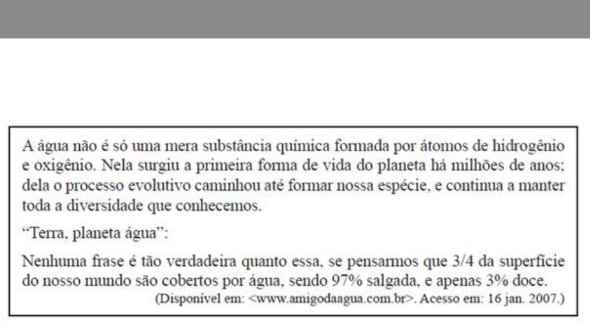 Prova Online Disciplina: 343 - LINGUÍSTICA II Abaixo estão as questões e as alternativas que você selecionou: Parte superior do formulário QUESTÃO 1 Leia o texto a seguir. Assinale a afirmativa correta. a ) No texto, "oxigênio" constitui hiperônimo de água. b ) Um dos termos empregados para referir água no texto é "diversidade". c ) Em "essa" (linha 6), retomando frase, refere-se à "Terra, planeta água". d ) Os pronomes nela e dela (linha 2) retomam forma de vida (linha 2). QUESTÃO 2 Assinale, entre as alternativas abaixo, aquela em que os vocábulos fraco e frágil estão em relação de sinonímia. a ) b ) Paulo fez uma prova de Linguística muito fraca./Paulo fez uma prova de Linguística muito frágil. c ) Marina tem uma saúde muito fraca./Marina tem uma saúde muito frágil. d ) É uma mãe fraca demais com os filhos./É uma mãe frágil demais com os filhos. QUESTÃO 3 O ato locucionário é a ) dividido em duas partes: construção do som e uso da sintaxe e do vocabulário. b ) a intenção por trás do que se fala. c ) o resultado do que se fala. d ) o conteúdo do ato de fala, a própria fala em si. QUESTÃO 4 Em A Língua de Eulália, de Marcos Bagno, a personagem Irene fala sobre "o mito da unidade linguística no Brasil". Isso significa que a ) todos falantes de português do Brasil dominam o PP (português padrão). b ) no Brasil se fala apenas o português. c ) no Brasil existem mais de duzentas línguas ainda faladas, desde línguas das antigas nações indígenas, assim como das comunidades de imigrantes estrangeiros. d ) todos os brasileiros falam apenas uma variedade de língua portuguesa chamada de PNP (português não padrão). QUESTÃO 5 Podem ser caracterizadas como recursos intertextuais as a ) citações. b ) anáforas. c ) paráfrases. d ) catáforas. QUESTÃO 6 Em relação à estrutura interna dos constituintes imediatos da sentença acima, é correto afirmar: a ) comprou um sapato novo: sintagma verbo-nominal. b ) a jovem: sintagma nominal. c ) comprou: sintagma adjetival. d ) um sapato novo: sintagma preposicional. QUESTÃO 7 Marque a opção em que a palavra está segmentada corretamente. a ) Es-vazia-mento. b ) Esvazia-mento. c ) Es-vazi-amento. d ) Es-vaziamento. QUESTÃO 8 Considerando o texto a seguir, identifique a alternativa cuja correspondência entre os termos está correta. a ) Acidente inescapável da civilização Fui à escola. b ) Ela minha magnólia. c ) Um tesouro escondido cartilha. d ) Sílabas destacáveis meu amor por livros. Parte inferior do formulário