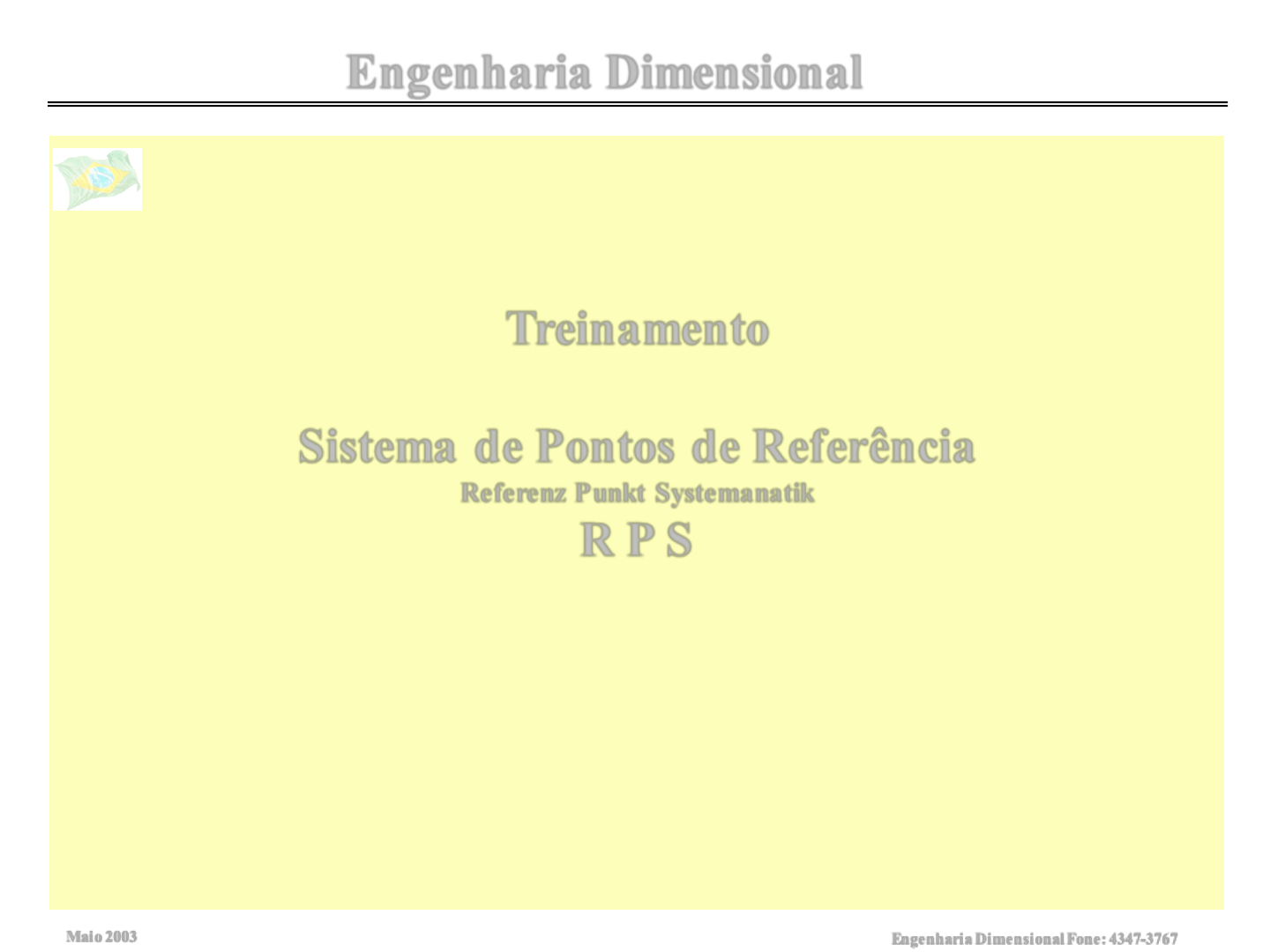 Maio 2003 Engenharia Dimensional Fone: 4347-3767 a Treinamento Sistema de Pontos de Referência Referenz Punkt Systemanatik R P S Engenharia Dimensional Maio 2003 Engenharia Dimensional Fone: 4347-3767 a Tópicos Engenharia Dimensional Efeito da globalização na indústria automobilística. Impacto da falta de um sistema de referência na qualidade. Vantagens de um sistema de pontos de referências. Sistema de coordenadas virtual do veículo. Conceito de um sistema de pontos de referência (RPS). Graus de liberdade de um corpo no espaço tridimensional. Regra 3-2-1. Nomenclatura dos pontos de referência. Pontos de referência auxiliares. Como identificar um desenho que tenha sistema RPS. Maio 2003 Engenharia Dimensional Fone: 4347-3767 a Tópicos Apresentação Como interpretar tabela RPS. Sistema global Sistema local Tolerâncias Metodologia de trabalho para definição de um sistema de referência. Critérios para definir um ponto RPS. Maio 2003 Engenharia Dimensional Fone: 4347-3767 a Tendência do mercado até início da década de 90 Efeito da globalização na Indústria automobilística Foco no mercado interno. Mercado era disputado por poucas montadoras. O cliente valoriza primeiro a confiabilidade mecânica do que a qualidade no acabamento do veículo. O cliente compra o veículo com o objetivo de mantê-lo por vários anos. Os lançamentos são realizados num intervalo maior de tempo. Maio 2003 Engenharia Dimensional Fone: 4347-3767 a Tendência do mercado após início da década de 90 Efeito da globalização na Indústria automobilística Foco no mercado global. Mercado era disputado por várias montadoras. O cliente valoriza mais a qualidade de acabamento e opcionais do que a confiabilidade mecânica. O cliente compra o veículo com o objetivo de mantê-lo por um período menor de tempo. Os lançamentos são realizados num intervalo de tempo cada vez menor. Maio 2003 Engenharia Dimensional Fone: 4347-3767 a Tendência do mercado após início da década de 90 Efeito da globalização na Indústria automobilística Em função desta tendência os produtos estão cada vez mais complexos e com tolerâncias geométricas e dimensionais cada vez menores. Maio 2003 Engenharia Dimensional Fone: 4347-3767 a Sem um sistema único de referência temos: Impacto da falta de um sistema de referência na qualidade Maio 2003 Engenharia Dimensional Fone: 4347-3767 a Sem um sistema único de referência temos: Impacto da falta de um sistema de referência na qualidade Maio 2003 Engenharia Dimensional Fone: 4347-3767 a Sem um sistema único de referência temos: Impacto da falta de um sistema de referência na qualidade Mudança no sistema de referência. Divergências nos resultados de medição. Maio 2003 Engenharia Dimensional Fone: 4347-3767 a Sem um sistema único de referência temos: Impacto da falta de um sistema de referência na qualidade Aumento na cadeia de tolerância no processo de fabricação. Referência ponto A A--B = ± 0,1 mm A--D = ± 0,1 mm A--C= ± 0,1 mm B--C= ± 0,2 mm Troca de referência, agora é o ponto D A--B = ±0,1 mm A--D = ±0,1 mm D--C = ±0,1 mm B--C =± 0,3 mm Maio 2003 Engenharia Dimensional Fone: 4347-3767 a Sem um sistema único de referência temos: Impacto da falta de um sistema de referência na qualidade Maio 2003 Engenharia Dimensional Fone: 4347-3767 a Com um sistema único de referência temos: Vantagens de um sistema único de pontos de referência Os pontos de referência são definidos por todas as áreas envolvidas. Facil identificação e interpretação dos pontos de referências. Sistema de coordenadas único para medição das peças. Diminui a variação dimensional na fabricação dos produtos. Construção de dispositivos que garantem o posicionamento da peça. Maio 2003 Engenharia Dimensional Fone: 4347-3767 a Com um sistema único de referência temos: Vantagens de um sistema único de pontos de referência Maio 2003 Engenharia Dimensional Fone: 4347-3767 a Sistema de coordenadas virtual do veículo Maio 2003 Engenharia Dimensional Fone: 4347-3767 a Conceito do sistema de pontos de referência (RPS) O sistema RPS tem como objetivo ser a referência única para : O processo de fabricação A medição do produto A montagem do produto Maio 2003 Engenharia Dimensional Fone: 4347-3767 a Graus de liberdade de um corpo no espaço Qual a necessidade de posicionar um corpo no espaço? Maio 2003 Engenharia Dimensional Fone: 4347-3767 a Graus de liberdade de um corpo no espaço Qual a necessidade de posicionar um corpo no espaço? Maio 2003 Engenharia Dimensional Fone: 4347-3767 a Graus de liberdade de um corpo no espaço Qual a necessidade de posicionar um corpo no espaço? Maio 2003 Engenharia Dimensional Fone: 4347-3767 a Graus de liberdade de um corpo no espaço 6 possibilidades de movimento Três de rotação (cinza) Três de translação (verde) Maio 2003 Engenharia Dimensional Fone: 4347-3767 a Regra 3 - 2 - 1 3 pontos para o plano 2 pontos para a linha 1 ponto para origem 3 Fixações (RPS) em y; 2 Fixações (RPS) em z; 1 Fixação (RPS) em x. Maio 2003 Engenharia Dimensional Fone: 4347-3767 a Regra 3 - 2 - 1 Peça bem posicionada ( isostática ) 3 Fixações (RPS) em y; 2 Fixações (RPS) em z; 1 Fixação (RPS) em x. Maio 2003 Engenharia Dimensional Fone: 4347-3767 a Regra 3 - 2 - 1 Peça mal posicionada ( hipoestática ) 3 Fixações (RPS) em y; 2 Fixações (RPS) em z; 1 Fixação (RPS) em x. Maio 2003 Engenharia Dimensional Fone: 4347-3767 a Regra 3 - 2 - 1 Peça condicionada ( hiperestática ) 3 Fixações (RPS) em y; 2 Fixações (RPS) em z; 1 Fixação (RPS) em x. Maio 2003 Engenharia Dimensional Fone: 4347-3767 a Nomenclatura do Sistema RPS Pontos RPS principais = Letras maiúsculas H = Furo F = Superfície T = Ponto teórico RPS1 H xy F z Maio 2003 Engenharia Dimensional Fone: 4347-3767 a Nomenclatura do Sistema RPS3 4 2 Maio 2003 Engenharia Dimensional Fone: 4347-3767 a Nomenclatura do Sistema RPS Pontos RPS auxiliares = 