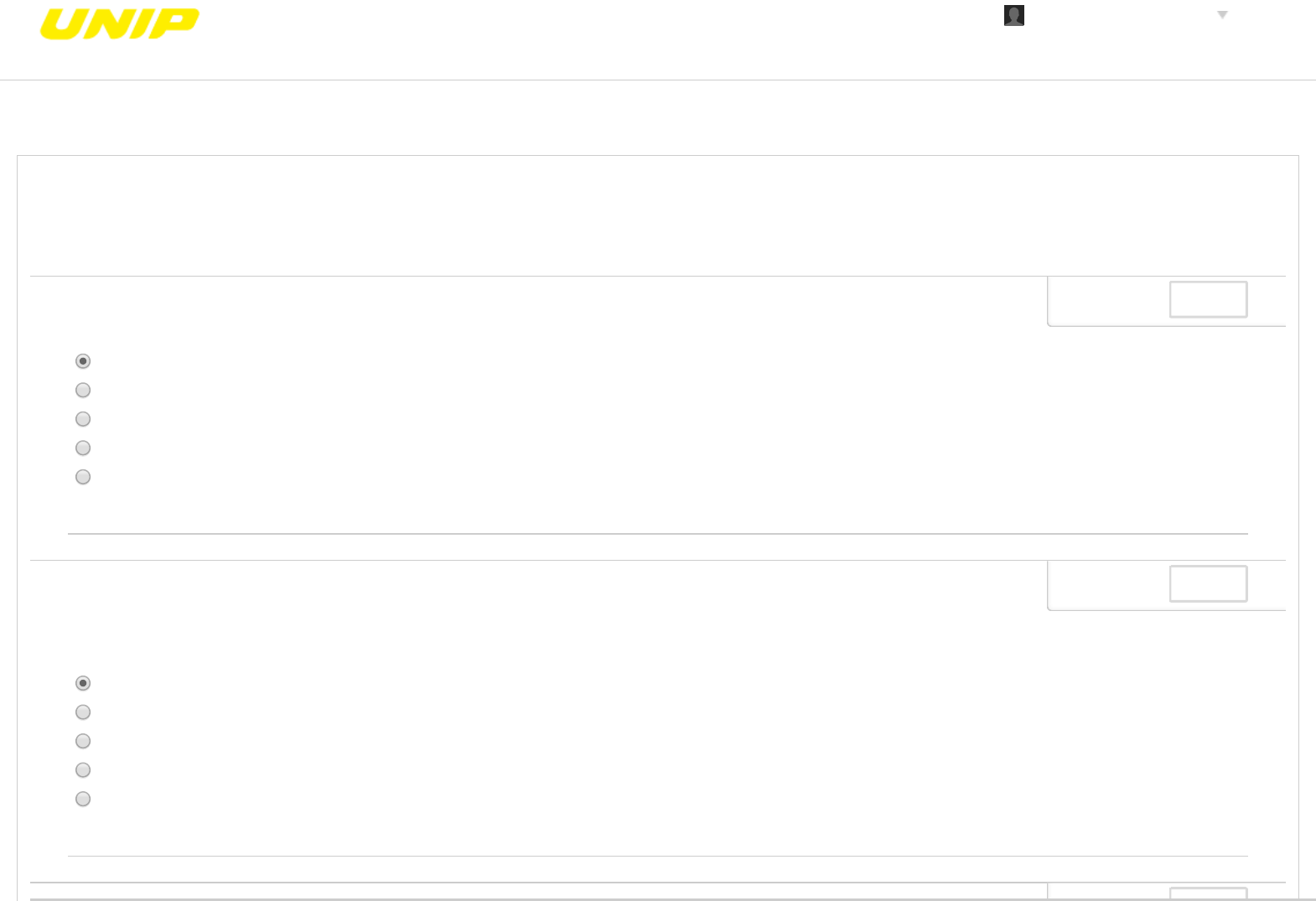Fazer teste: QUESTIONÁRIO UNIDADE IVTOPICOS ESPECIAIS EM DIREITO PRIVADO (OPTATIVA) D443_50201_R_20191 CONTEÚDO a. b. c. d. e. PERGUNTA 1 Assinale a alternativa correta. O divórcio atualmente classi�ca-se em divórcio consensual, divórcio extrajudicial consensual e divórcio litigioso. O divórcio atualmente classi�ca-se em divórcio bipolar. O divórcio atualmente classi�ca-se em divórcio litigioso somente. O divórcio atualmente classi�ca-se em divórcio e separação judicial. Nenhuma das alternativas anteriores. 0,25 pontos Salva a. b. c. d. e. PERGUNTA 2 De acordo com os enunciados: I - O Divórcio é uma das causas terminativas da sociedade conjugal. II - A EC n. 66/2010 aboliu a separação conjugal. I e II corretos. I e II incorretos. I correto e II incorreto. I incorreto e II correto. Nenhuma das alternativas anteriores. 0,25 pontos Salva PERGUNTA 3 0 25 t S l ? UNIP BIBLIOTECAS MURAL DO ALUNOCONTEÚDOS ACADÊMICOS DEUZIMAR MARTINS a. b. c. d. e. PERGUNTA 3 De acordo com os enunciados: I - A Lei n. 11441/2007 estabeleceu a possibilidade do divórcio extrajudicial. II - O divórcio extrajudicial poderá ser consensual ou litigioso. I e II corretos. I correto e II incorreto. I e II incorretos. I incorreto e II correto. Nenhuma das alternativas anteriores. 0,25 pontos Salva a. b. c. d. e. PERGUNTA 4 De acordo com os enunciados: I - As questões relativas a guarda e proteção dos �lhos, alimentos, partilha de bens, nome de família podem ser discutidas em separado. II - Não se discute mais a culpa pelo �m do casamento. I e II corretos. I e II incorretos. I correto e II incorreto. I incorreto e II correto. Nenhuma das alternativas anteriores. 0,25 pontos Salva a. b. c. d. e PERGUNTA 5 Assinale a alternativa correta. Os alimentos dos �lhos no divórcio serão �xados conforme o binômio necessidade e possibilidade. Os alimentos dos �lhos no divórcio será estabelecido no melhor interesse dos cônjuges e serão �xados conforme o binômio necessidade e possibilidade. Os alimentos dos �lhos no divórcio será estabelecido no interesse dos avós e serão �xados conforme o binômio necessidade e possibilidade. Os alimentos dos �lhos no divórcio será estabelecido no melhor interesse de todos os envolvidos. Nenhuma das alternativas anteriores 0,25 pontos Salva e. Nenhuma das alternativas anteriores. a. b. c. d. e. PERGUNTA 6 Complete a assertiva de forma correta: “Se o ................. direto foi requerido por só um dos cônjuges terá obrigatoriamente o trâmite do procedimento ..................... no CPC/1973 e procedimento especial no CPC/2015”. divórcio/sumário. separação/sumário. divórcio/ordinário. divórcio/cautelar. Nenhuma das alternativas anteriores. 0,25 pontos Salva a. b. c. d. e. PERGUNTA 7 De acordo com os enunciados: I A Emenda Constitucional 66/2010 deu nova redação ao artigo 226, parágrafo 6o da Constituição Federal. II - Não cabe mais a possibilidade de ação de separação. III - Não se dissolve mais a sociedade conjugal. I, II e III corretas. I, II corretas e III incorreta. I, II e III incorretas. I e III corretas e II incorreta. Nenhuma das alternativas anteriores. 0,25 pontos Salva a. b. c. PERGUNTA 8 Assinale a alternativa incorreta: Pode ser realizado arrolamento multifuncional. Não pode ser realizado arrolamento extrajudicial, quando as partes são menores e incapazes. Não pode ser realizado arrolamento extrajudicial, se houver dissenso entre as partes. 0,25 pontos Salva d. e. Pode ser realizado arrolamento extrajudicial, se as partes não recolherem o imposto. Nenhuma das alternativas anteriores. a. b. c. d. e. PERGUNTA 9 De acordo com as assertivas: I. Se o cônjuge vir a falecer antes de transitada em julgada a sentença, o estado civil do cônjuge sobrevivente é de viúvo, já que a ação de divórcio guarda natureza personalíssima. II. A Lei n. 11441/2007 estabeleceu a possibilidade do divórcio extrajudicial, para tanto as partes devem ser maiores e capazes; acordes quanto aos termos do divórcio e não tenha interesse de menores. I e II incorretas. I e II corretas. I incorreta e II correta. I correta e II incorreta. Nenhuma das alternativas anteriores. 0,25 pontos Salva a. b. c. d. e. PERGUNTA 10 De acordo com os enunciados: I - Não há necessidade de comprovação do lapso temporal da separação de fato, bem como da produção de prova testemunhal em audiência de rati�cação do lapso temporal. II - Se o divórcio direto for requerido por um dos cônjuges, o procedimento a ser utilizado é o sumário. I é falso e II é verdadeiro. I é verdadeiro e II é falso. I e II são falsos. I e II são verdadeiros. Nenhuma das alternativas anteriores. 0,25 pontos Salva Fazer teste: QUESTIONÁRIO UNIDADE IIITOPICOS ESPECIAIS EM DIREITO PRIVADO (OPTATIVA) D443_50201_R_20191 CONTEÚDO a. b. c. d. e. PERGUNTA 1 De acordo com as assertivas: I - A obrigação alimentar decorre da lei e tem como fundamento o parentesco até 4o grau. II - São pressupostos da obrigação alimentar: o vínculo de parentesco, a necessidade do reclamante, a possibilidade da pessoa obrigada e a proporcionalidade. I e II estão corretas. I e II estão incorretas. I está incorreta e II está correta. I está correta e II está incorreta. NDA. 0,25 pontos Salva a. b. c. d. e. PERGUNTA 2 De acordo com as a�rmações: I - O Estatuto da Criança e do Adolescente permite o reconhecimento pelos pais, conjunta ou separadamente, no próprio termo de nascimento, por testamento, mediante escritura pública ou outro documento público, qualquer que seja a �liação. II - A Constituição Federal de 1988 estabeleceu a igualdade no direito de �liação. I e II corretas. I e II incorretas. I correta e II incorreta. I incorreta e II correta. Nenhuma das alternativas anteriores. 0,25 pontos Salva ? UNIP BIBLIOTECAS MURAL DO ALUNOCONTEÚDOS ACADÊMICOS DEUZIMAR MARTINS a. b. c. d. e. PERGUNTA 3 De acordo com as assertivas: I – A Lei n. 8560
