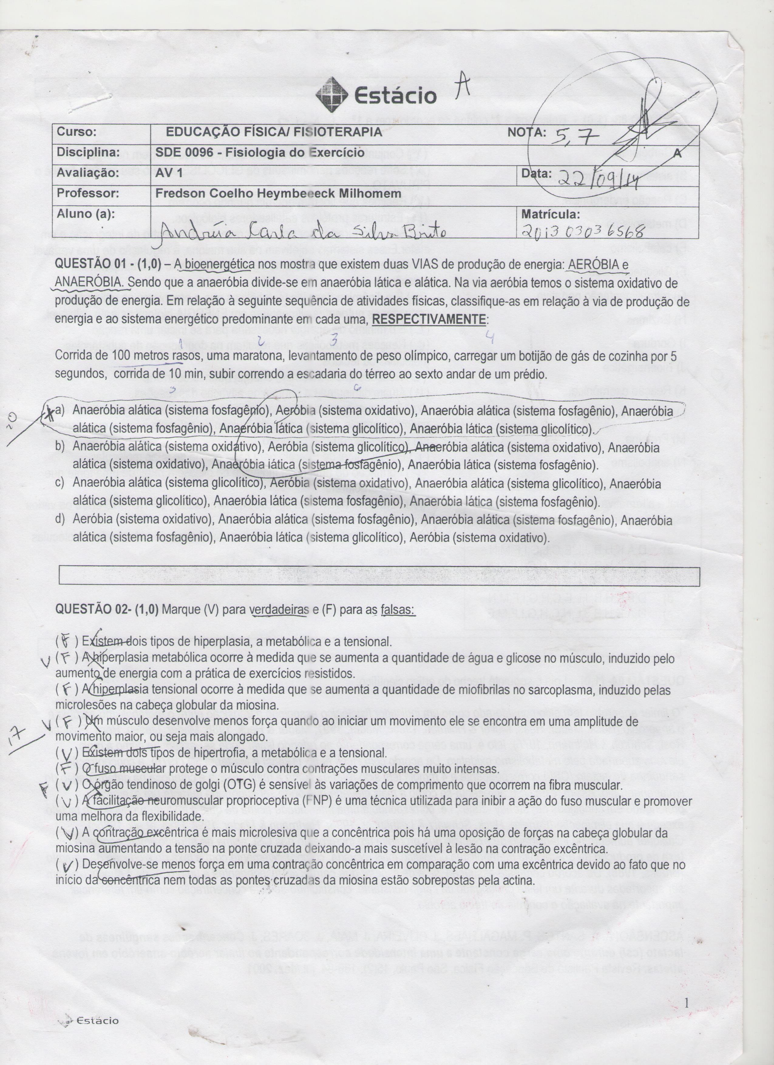 Em relação a energia formada pela via glicolítica, assinale a alternativa CORRETA: A. ( B. ( ) Intensidade mais alta de exercício. ) V...