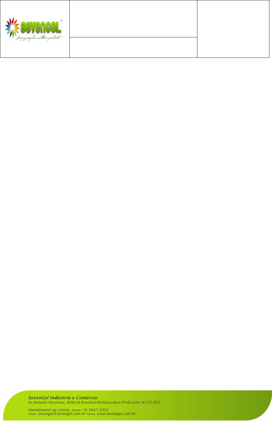 FICHA DE INFORMAÇÕES DE SEGURANÇA PARA PRODUTOS QUÍMICOS Nome do Produto: Seven Detergente Neutro Super Concentrado Revisão: 01 Data: 28.05.2012 Página 1 de 3 SEVEN DETERGENTE NEUTRO SUPER CONCENTRADO 1. IDENTIFICAÇÃO DO PRODUTO E DA EMPRESA Identificação do Produto: Nome do produto: SEVEN DETERGENTE NEUTRO SUPER CONCENTRADO Aplicação do produto: Lavagem de equipamentos e utensílios em estabelecimentos alimentícios em geral. Fabricante / Fornecedor: Sevengel Indústria e Comércio Ltda. Av. Antônio Pascoal, 408, 14170-000 Sertãozinho SP - Brasil Obtenção de informações adicionais: Tel.: 0xx16 3947 3003 Fone para emergências: Bombeiros: 193 CEATOX: 0800-148110 2. IDENTIFICAÇÃO DE PERIGOS Perigosidade: Nenhum, nas condições normais de utilização. Principais efeitos adversos: Saúde humana: Nenhum, nas condições normais de utilização. Ambientais: Nenhum, nas condições normais de utilização. Físico-Químicos: Nenhum, nas condições normais de utilização. 3. COMPOSIÇÃO E INFORMAÇÃO SOBRE OS INGREDIENTES Composição química: Espessante (Hidroxietilcelulose), Tensoativo Aniônico (Ácido Dodecil Benzeno Sulfonato de Sódio), Neutralizante (Trietanolamina), Tensoativo não Iônico (Nonil Fenol Etoxilado 9,5 Mols de OE), Espessante (Dietanolamida de Ácido Graxo de Coco), Conservante, Água. – Ingrediente Ativo: Ácido Dodecil Benzeno Sulfonato de Sódio....15%. CAS No. / Descrição: CAS 9004-62-0 – Hidroxietilcelulose CAS 85536-14-7 - Ácido Dodecil Benzeno Sulfonato de Sódio CAS 102-71-6 – Trietanolamina CAS 9016-45-9 – Nonil Fenol Etoxilado 9,5 Mols de OE CAS 68603-42-9 - Dietanolamida de Ácido Graxo de Coco CAS 26172-55-4 – Conservante (Mistura de Isotiazolinonas) 4. MEDIDAS DE PRIMEIROS SOCORROS Inalação: Não relevante, nas condições normais de utilização. Contato com a pele: Lavar as áreas afetadas com água e sabão. Em caso de irritação, consultar um médico. Contato com os olhos: Lavar imediatamente com água em abundância durante pelo menos 15 minutos, mantendo as pálpebras abertas. Remover as lentes de contato. Procurar assistência médica. FICHA DE INFORMAÇÕES DE SEGURANÇA PARA PRODUTOS QUÍMICOS Nome do Produto: Seven Detergente Neutro Super Concentrado Revisão: 01 Data: 28.05.2012 Página 1 de 3 SEVEN DETERGENTE NEUTRO SUPER CONCENTRADO Ingestão: Lavar a boca e a garganta. Beber 1 a 2 copos de água. Procurar assistência médica e mostrar-lhe a embalagem ou o rótulo. Notas para o médico: Tratamento sintomático. 5. MEDIDAS DE COMBATE A INCÊNDIO Meios de Extinção apropriados: Produto não inflamável. Equipamentos de proteção dos bombeiros: Não se conhecem meios de extinção não apropriados. Métodos especiais: Não se conhecem produtos de decomposição tipicamente perigosos. 6. MEDIDAS DE CONTROLE PARA DERRAMAMENTO OU VAZAMENTO Precauções individuais: Evitar o contato com a pele e os olhos. Assegurar ventilação adequada. Precauções ambientais: Não aplicável. Métodos de limpeza: Conter o derrame e recolher com material absorvente (p.ex. areia, terra, terra de diatomáceas, vermiculite). Colocar em recipientes para eliminação de acordo com os regulamentos em vigor. Lavar a superfície afetada com água em abundância. 7. MANUSEIO E ARMAZENAMENTO Manuseamento: Não são necessárias medidas especiais, se utilizado em condições normais. Armazenamento: Manter as embalagens bem fechadas. Manter fora do alcance das crianças. Manter separado de alimentos, bebidas e rações. 8. CONTROLE DE EXPOSIÇÃO E PROTEÇÃO INDIVIDUAL Controle da exposição: Não são necessárias medidas especiais, se utilizado em condições normais. Medidas de proteção individual: Proteção respiratória: Não aplicável em condições normais de utilização. Proteção das mãos: Utilizar luvas de proteção, em caso de contato prolongado. Proteção dos olhos: Não aplicável em condições normais de utilização. Proteção da pele: Não aplicável. Medidas de higiene: Não comer, beber, ou guardar alimentos no local de trabalho. 9. PROPRIEDADES FÍSICO-QUÍMICAS Informações gerais Estado físico: Líquido Cor: Vermelho Odor: Característico, muito suave pH: 7,0 a 8,5 Mudança na condição Ponto de Fusão: Não determinado Ponto de Ebulição: Não determinado Ponto de fulgor: não aplicável Perigo de explosão: O produto não é explosivo. Limites de explosividade: não aplicável Densidade: 1,03872 ± 0,02 g/cm³ Solubilidade: solúvel em água FICHA DE INFORMAÇÕES DE SEGURANÇA PARA PRODUTOS QUÍMICOS Nome do Produto: Seven Detergente Neutro Super Concentrado Revisão: 01 Data: 28.05.2012 Página 1 de 3 SEVEN DETERGENTE NEUTRO SUPER CONCENTRADO 10. ESTABILIDADE E REATIVIDADE Estabilidade: Estável sob condições normais de uso e armazenagem. Condições a evitar: Nenhuma, nas condições normais de utilização. Matérias e evitar: Nenhuma, nas condições normais de utilização. Produtos de decomposição perigosos: Não se conhecem produtos de decomposição tipicamente perigosos. 11. INFORMAÇÕES TOXICOLÓGICAS Toxidade: Nenhum efeito esperado. Efeitos agudos: Não existem dados experimentais em animais. 12. INFORMAÇÕES ECOLÓGICAS Ecotoxicidade: Sem dados disponíveis. Mobilidade: Sem dados disponíveis. Persistência: Sem dados disponíveis. Degradabilidade: Biodegradável. Potencial de bioacumulação: Sem dados disponíveis. 13. CONSIDERAÇÕES SOBRE TRATAMENTO E DISPOSIÇÃO Métodos de eliminação: Podem ser descartados através de esgoto químico, tratados em estações de tratamento de efluentes, descartados em aterro industrial ou eliminados por incineração controlada de acordo com as normas ambientais em vigor e órgão ambiental regional. Resíduos de embalagem: As embalagens originais do produto podem ser utilizadas somente para acondicionamento de resíduos do próprio produto. Elas devem ser descartadas em aterro industrial ou eliminadas incineração controlada de acordo