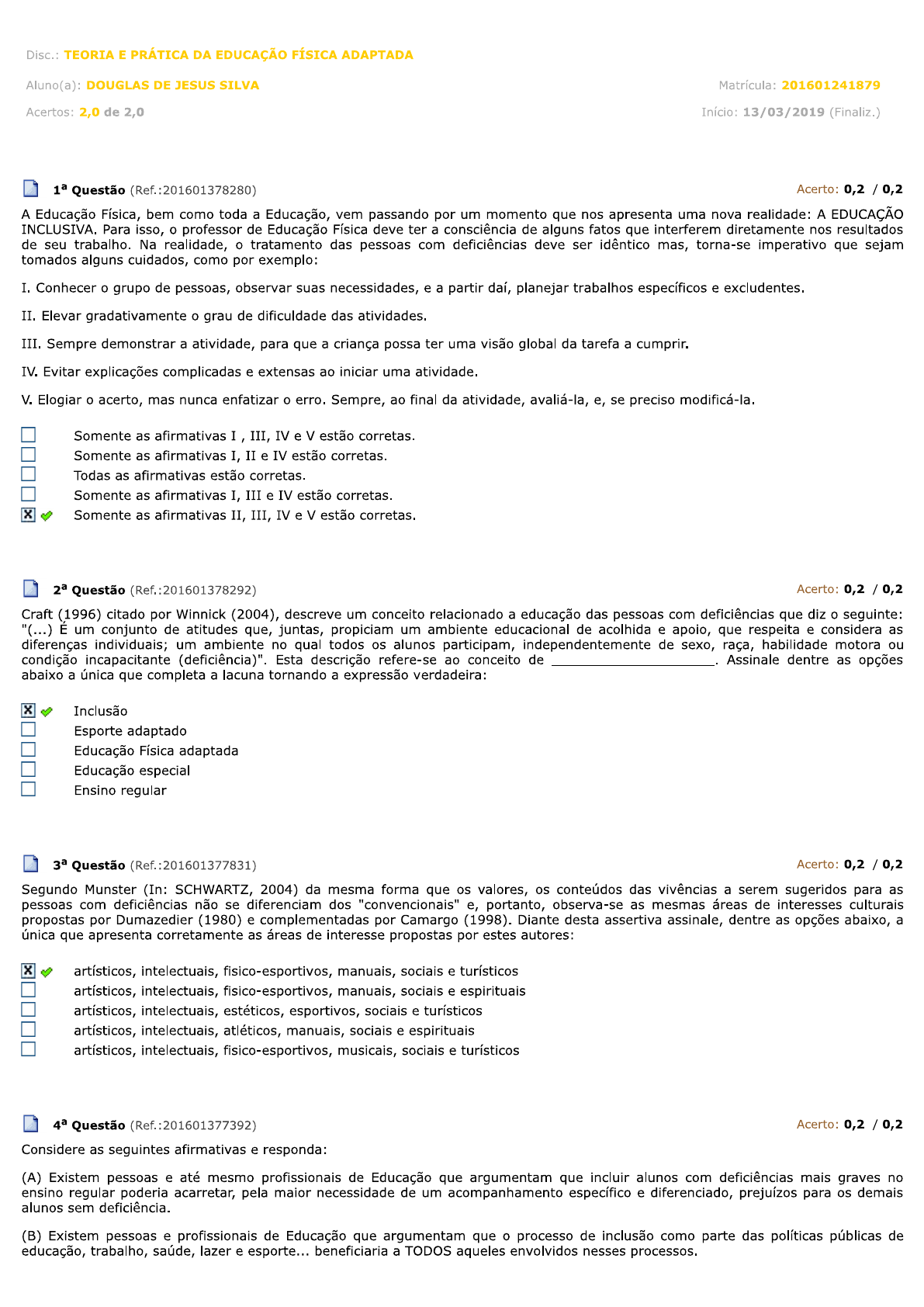 SIMULADO AV1TEORIA E PRÁTICA DA EDUCAÇÃO FÍSICA ADAPTADA