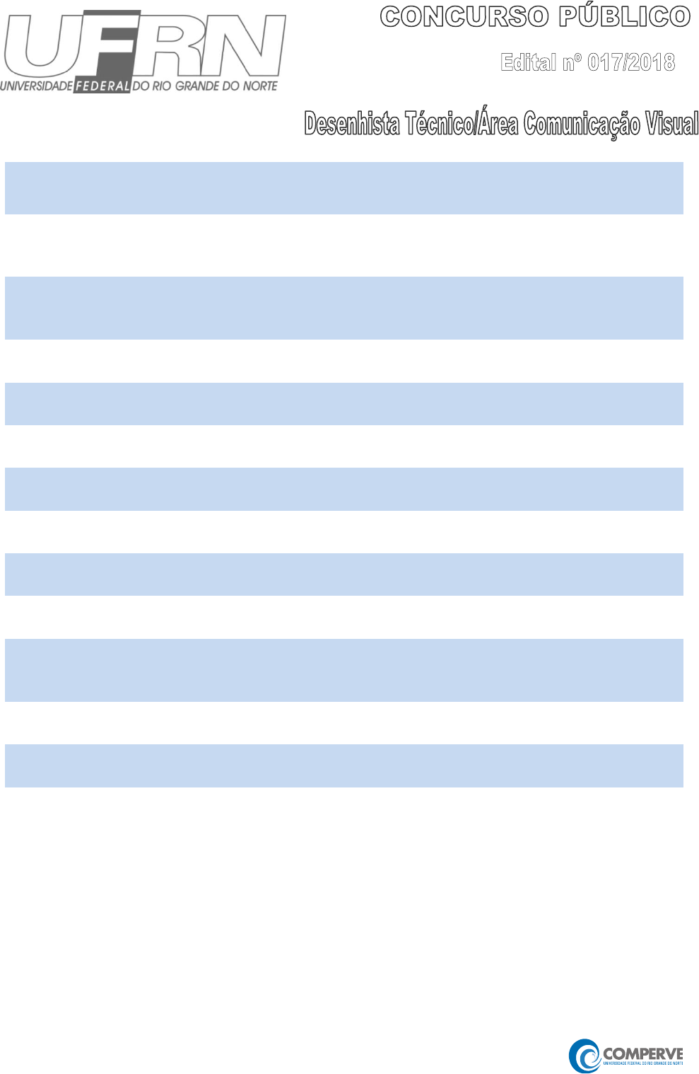 Concurso Público UFRN A vida é um sonho. Realize-o (Madre Teresa) Leia estas instruções: 1 Confira se os dados contidos na parte inferior desta capa estão corretos e, em seguida, assine no espaço reservado. 2 Este Caderno contém, respectivamente, uma proposta de Redação e 50 questões de múltipla escolha, assim distribuídas: 01 a 10 Língua Portuguesa; 11 a 20 Legislação; 21 a 50 Conhecimentos Específicos. 3 Quando o Fiscal autorizar, verifique se o Caderno está completo e sem imperfeições gráficas que impeçam a leitura. Detectado algum problema, comunique-o, imediatamente, ao Fiscal. 4 A Redação será avaliada considerando-se apenas o que estiver escrito no espaço reservado para o texto definitivo na Folha de Redação fornecida pela Comperve. 5 Escreva de modo legível, pois dúvida gerada por grafia ou rasura implicará redução de pontos. 6 Cada questão de múltipla escolha apresenta quatro opções de resposta, das quais apenas uma é correta. 7 Interpretar as questões faz parte da avaliação, portanto não peça esclarecimentos aos fiscais. 8 A Comperve recomenda o uso de caneta esferográfica de tinta preta, fabricada em material transparente. 9 Utilize qualquer espaço em branco deste Caderno para rascunhos e não destaque nenhuma folha. 10 Os rascunhos e as marcações que você fizer neste Caderno não serão considerados para efeito de avaliação. 11 Você dispõe de, no máximo, quatro horas e trinta minutos para redigir o texto definitivo na Folha de Redação, responder às questões e preencher a Folha de Respostas. 12 O preenchimento da Folha de Respostas e da Folha de Redação é de sua inteira responsabilidade. 13 Antes de se retirar definitivamente da sala, devolva ao Fiscal este Caderno, a Folha de Respostas e a Folha de Redação. _________________________________________________________________________________ Assinatura do Candidato: ____________________________________________________________________ Concurso Público UFRN Edital 17/2018 Desenhista Técnico/Área Comunicação Visual A vida é um sonho. Realize-o. 1 Prova de Redação Com a popularização do uso da internet, publicar nas redes sociais tornou-se um dos hábitos mais frequentes na vida dos brasileiros, o que tem acarretado problemas como a viralização de notícias falsas, as chamadas fake news. Muitas vezes, o compartilhamento ind iscriminado de informações improcedentes gera transtornos e prejuízos ao alvo dessas publicações. PROPOSTA DE REDAÇÃO Considerando essa problemática e seus conhecimentos a respeito do tema, produza um artigo de opinião com o objetivo de defender um posicionamento sobre a seguinte questão: Internautas que compartilham fake news em redes sociais devem ser penalizados? INSTRUÇÕES Seu artigo deverá atender às seguintes normas: ser redigido no espaço destinado à versão definitiva na Folha de Redação; apresentar explicitamente um ponto de vista, fundamentado em, no mínimo, dois argumentos; ser redigido na variedade padrão da língua portuguesa; ser redigido em prosa (e não em verso); conter, no máximo, 40 linhas; e não ser assinado (nem mesmo com pseudônimo). ATENÇÃO Será atribuída NOTA ZERO à redação em qualquer um dos seguintes casos: texto com até 14 linhas; fuga ao tema ou à proposta; letra ilegível; identificação do candidato (nome, assinatura ou pseudônimo); texto que revele desrespeito aos direitos humanos ou que seja ofensivo ; e artigo escrito em versos. 2 Concurso Público UFRN Edital 16/2018 Desenhista Técnico/Área Comunicação Visual A vida é um sonho. Realize-o. Concurso Público UFRN Edital 17/2018 Desenhista Técnico/Área Comunicação Visual A vida é um sonho. Realize-o. 3 RASCUNHO 1 2 3 4 5 6 7 8 9 10 11 12 13 14 15 16 17 18 19 20 21 22 23 24 4 Concurso Público UFRN Edital 16/2018 Desenhista Técnico/Área Comunicação Visual A vida é um sonho. Realize-o. 25 26 27 28 29 30 31 32 33 34 35 36 37 38 39 40 (NÃO ASSINE O TEXTO) Concurso Público UFRN Edital 17/2018 Desenhista Técnico/Área Comunicação Visual A vida é um sonho. Realize-o. 5 Língua Portuguesa 01 a 10 As questões de 1 a 10 desta prova são baseadas no texto abaixo. Salas de aula transformando o sertanejo 1º Ao longo de anos, o sertão do Rio Grande do Norte foi subjugado às intempéries da seca que expulsou milhares de sertanejos de suas origens em busca de água e sobrevivência. Numa revolução inimaginável para a maioria dos moradores das terras mais áridas do estado, cujas precipitações médias anuais são inferiores a 800 milímetros, a educação se tornou o meio de transformação social, cultural e econômica. Hoje, por entre os cactos que povoam a caatinga, surgem institutos federais, faculdades, universidades e a primeira Escola Multicampi de Ciências Médicas do Brasil. Em uma década, o número de instituições de ensino superior no estado cresceu 33,3% e expandiu o número de vagas em 125,38%. O sertão do flagelo da seca se transformou no chão das oportunidades e do resgate de sonhos. 2º “Não existia perspectiva. Meu pai era analfabeto. Eu cresci estudando em escola pública e numa família carente”, relembra Anderson Fernandes, 26 anos, formado em Odontologia pela Universidade Estadual do Rio Grande do Norte (UERN-Campus Caicó). Nascido numa família que enfrentou inúmeras dificuldades ao longo dos anos, a falta de perspectiva de mudança não fez o estudante esmorecer, como se diz em Caicó. Formado há dois anos, hoje servidor público e aluno do Curso de Mestrado em Saúde Coletiva da Universida de Federal do Rio Grande do Norte (UFRN), Fernandes é apenas um exemplo dos milhares de jovens do interior do estado que se beneficiaram com o processo de interiorização da educação superior. De 2006 a 2016, o número de instituições de ensino desse perfil saiu das 21 para 28, entre públicas e privadas, conforme dados mais recentes do Censo da Educação Superior do Instituto Nacional 