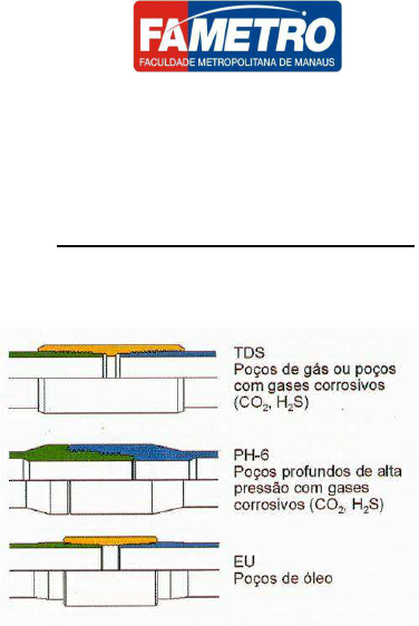 Faculdade Metropolitana de Manaus – FAMETRO ALUNO: Wisley A. Campos. CURSO: Tec. Petróleo e Gás. TURMA: TPG 5º Período, Noturno. Principais Ferramentas da Coluna de Produção Tubos de Produção Mais Usado. Shear –Out (sub de pressurização) Permite o tamponamento temporário da coluna de produção. - Shear -Out Dupla em Corte - Sedes e Esferas da Shear -Out Hydro –Trip. Também serve para tamponamento temporário da coluna de produção. A diferença é que a sede não cai no poço, porém, apresenta desvantagem de não permitir passagem plena através do interior da coluna. Hydro –Trip. Niplles de Assentamento. Serve para alojar tampões mecânicos, válvulas de retenção ou registrador de pressão. Existem os tipos não seletivo (R) e seletivo (F). - Nipples para assentamento de tampões mecânicos. Camisa Deslizante. Possui uma camisa interna que pode ser aberta ou fechada através de operações com cabo. Check valve ( Válvula de Retenção) Serve Para impedir o Fluxo no sentido descendente. É operado através de pressão, a válvula se abre quando pressurizada de baixo para cima, e veda quando pressurizada de cima para baixo. Check Valve. Packer (obturador) de produção. Promove a vedação do espaço anular entre a coluna de produção e o revestimento. Pode ser recuperável ou permanente. Recuperável: Assentamento mecânico (rotação da coluna,seguida de aplicação de peso ou tração) ou hidráulico (pressurização da coluna para assentar, e tração para desassentar). Permanente: Geralmente descido a cabo, conectado a uma ferramenta de assentamento. O acionamento é elétrico detonando um explosivo que move a camisa superior para baixo comprimindo o conjunto contra a camisa retentora. Este movimento expande o elemento de vedação e as cunhas contra o revestimento. - Packer de Produção Recuperável. - Packer Permanente. Unidade Selante. Descido na extremidade da coluna que pode ser apoiado ou travado no packer permanente, promovendo vedação na área polida do packer. Divide-se em 3 tipos: - l Âncora: travada na rosca do packer, é conectada com liberação de peso e desconectada com rotação à direita. - 2 Trava: travada na rosca do packer, é conectada com liberação de peso e desconectada com tração. - 3 Batente: não trava, pois não possui rosca. Traciona-se para retirar. - Unidade Selante. Junta Telescópica. Usado para absorver a expansão ou contração da coluna de produção, causadas pelas variações de temperatura. Permite também a retirada da coluna de produção sem retirar o packer e a cauda. Composta por camisa externa (parte superior da coluna) e mandril (parte inferior da coluna). O travamento entre os 2 conjuntos, para descida ou retirada, é feito através da sapata guia que se encaixa no mandril, e por parafusos de cisalhamento (para tração ou compressão). O perfil F possibilita o isolamento da coluna através do tampão mecânico e possibilita limpeza de detritos por circulação. - Junta Telescópica (TSR). Mandril de Gás –Lift. Servem para alojar as válvulas de gas-lift, que permitirão a circulação de gás do espaço anular para o interior da coluna de produção. Estas válvulas são assentadas e desassentadas através de operação a cabo. - Mandril de Gás Lift. Válvula de Segurança de Sub -Superfície (DHSV) Normalmente posicionada 30 m abaixo do fundo do mar, tem a função de fechar o poço numa emergência. Contém uma mola que tende a fechá-la. É mantida aberta através de uma linha de controle permanentemente pressurizada.Havendo despressurização desta linha, a DHSV se fecha. – Existem 2 tipos: l. Enroscadas na coluna (tubing mounted) que são conectadas diretamente na coluna de produção. 2. Insertáveis (wireline retrievable) que são instaladas a cabo. DHSV - Tubing Mounted DHSV - Insertáveis