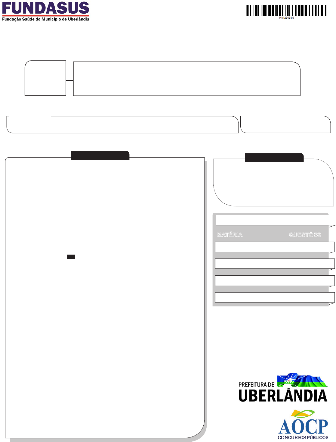 O Caderno de questões possui 1 (uma) questão discursiva e 40 (quarenta) questões objetivas, numeradas sequencialmente, de acordo com o exposto no quadro a seguir: 1. Na sua Folha de Respostas, confira seu nome, o número do seu documento e o número de sua inscrição. Além disso, não se esqueça de conferir seu Caderno de Questões quanto a falhas de impressão e de numeração, e se o curso corresponde àquele para o qual você se inscreveu. Preencha os campos destinados à assinatura e ao número de inscrição. Qualquer divergência comunique ao fiscal. 2. O único documento válido para avaliação da prova é a Folha de Respostas e a Versão Definitiva da Prova Discursiva. Só é permitido o uso de caneta esferográfica transparente de cor azul ou preta para o preenchimento da Folha de Respostas, que deve ser realizado da seguinte maneira: 3. O prazo de realização da prova é de 4 (quatro) horas, incluindo a marcação da Folha de Respostas e a transcrição da Versão Definitiva da Prova Discursiva. Após 60 (sessenta) minutos do início da prova, o candidato estará liberado para utilizar o sanitário ou deixar definitivamente o local de aplicação. Os 3 (três) últimos candidatos só poderão retirar-se da sala juntos. 4. Ao término de sua prova, comunique ao fiscal, devolvendo-lhe a Folha de Respostas e a Versão Definitiva da Prova Discursiva devidamente preenchidas e assinadas. Somente será possível levar o caderno de questões após decorridas 4h (quatro) do início da prova, sendo necessário, obrigatoriamente, devolver ao fiscal a Folha de Respostas e a Versão Definitiva da Prova Discursiva. 5. As provas e os gabaritos preliminares estarão disponíveis no site da AOCP ̶ www.aocp.com.br ̶ no dia posterior à aplicação da prova. 6. Implicará na eliminação do candidato, caso, durante a realização das provas, qualquer equipamento eletrônico venha emitir ruídos, mesmo que devidamente acondicionado no envelope de guarda de pertences. O NÃO cumprimento a qualquer uma das determinações constantes em Edital, no presente Caderno ou na Folha de Respostas, incorrerá na eliminação do candidato. Nome do Candidato Inscrição Concurso para Emprego Público REF. EDITAL N° 01/2015 - NÍVEL SUPERIOR - MANHÃ CARGO: OFTALMOLOGIA MÉDICO EM SAÚDE PÚBLICA - 100 HORAS POR MÊS Prefeitura Municipal de Uberlândia Fundação Saúde do Município de Uberlândia Estado de Minas Gerais QUESTÕES Língua Portuguesa 01 a 10 MATÉRIA Política de Saúde 16 a 25 Conhecimentos Específicos 26 a 40 Discursiva 01 Informática 11 a 15 Instruções Atenção O gabarito oficial preliminar e o caderno de questões da prova objetiva estarão disponíveis no endereço eletrônico www.aocp.com.br no dia seguinte à aplicação da prova. Questão Resp. 01 02 03 04 05 06 07 08 09 10 11 12 13 14 15 16 17 18 19 20 21 22 23 24 25 26 27 28 29 30Questão Resp. 31 32 33 34 35 36 37 38 39 40 Prefeitura Municipal de Uberlândia Fundação Saúde do Município de Uberlândia 1. A prova discursiva será avaliada considerando-se os seguintes aspectos: a) o conhecimento técnico-científico sobre a matéria; b) o atendimento ao tema proposto na questão; c) a clareza de argumentação/senso crítico; d) a utilização adequada da Língua Portuguesa. 2. O candidato terá sua prova discursiva avaliada com nota 0 (zero) em caso de: a) não atender ao conteúdo avaliado e ao tema proposto, manuscrever em letra ilegível ou grafar por outro meio que não o determinado neste Edital; b) apresentar acentuada desestruturação na organização textual ou atentar contra o pudor; c) redigir seu texto a lápis ou à tinta em cor diferente de azul ou preta; d) não apresentar as questões redigidas na Folha da Versão Definitiva ou entregar em branco; e) apresentar identificação, em local indevido, de qualquer natureza (nome parcial, nome completo, outro nome qualquer, número(s), letra(s), sinais, desenhos ou códigos). 3. O candidato disporá de, no máximo, 15 (quinze) linhas para elaborar a resposta de cada questão da prova discursiva, sendo desconsiderado para efeito de avaliação qualquer fragmento de texto que for escrito fora do local apropriado ou que ultrapassar a extensão de 15 (quinze) linhas permitida para a elaboração de seu texto. 1. _______________________________________________________________________________________________________ 2. _______________________________________________________________________________________________________ 3. _______________________________________________________________________________________________________ 4. _______________________________________________________________________________________________________ 5. _______________________________________________________________________________________________________ 6. _______________________________________________________________________________________________________ 7. _______________________________________________________________________________________________________ 8. _______________________________________________________________________________________________________ 9. _______________________________________________________________________________________________________ 10. _______________________________________________________________________________________________________ 11. _______________________________________________________________________________________________________ 12. _______________________________________________________________________________________________________ 13. _______________________________________________________________________________________________________ 14. _______________________________________________________________________________________________________ 15. _______________________________________________________________________________________________________ QUESTÃO 01 R A S C U N H O - D I S C U R S I VA Paciente masculino, 23 ano