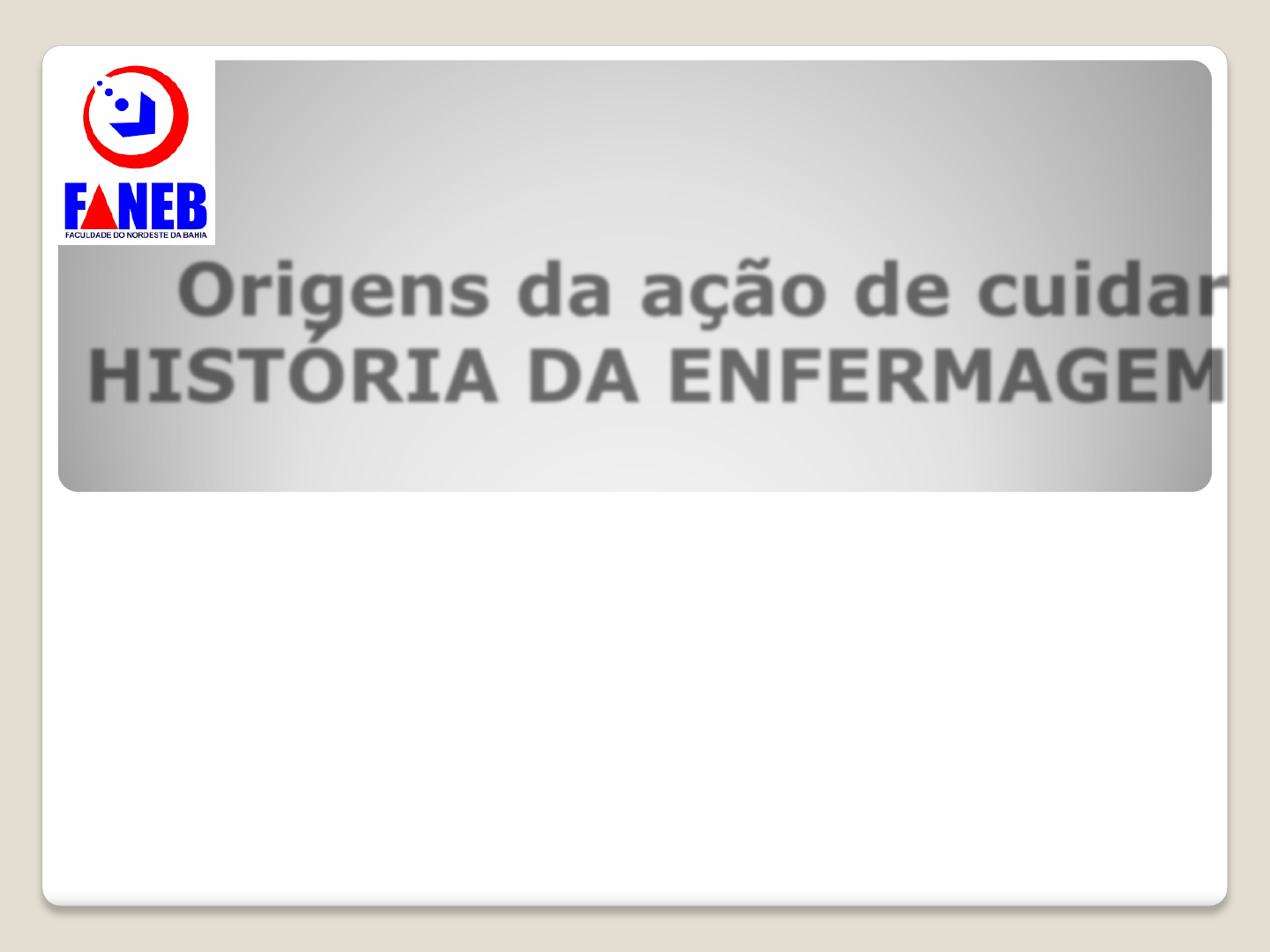 Origens da ação de cuidar HISTÓRIA DA ENFERMAGEM Profa. Enfa. Me. Sara Albuquerque dos Santos Enfermagem O que é enfermagem? CONCEITO DE ENFERMAGEM “A Enfermagem é a arte e a ciência do CUIDAR, necessária a todos os povos e a todas as nações, imprescindível em época de paz ou em época de guerra e indispensável à preservação da saúde e da vida dos seres humanos em todos os níveis, classes ou condições sociais.” (GEOVANINI, 2002) QUEM É O ENFERMEIRO? O enfermeiro é um profissional de nível superior da área da saúde, responsável pela PROMOÇÃO, PREVENÇÃO E RECUPERAÇÃO da saúde dos indivíduos, dentro de sua comunidade. Presta assistência ao paciente ou cliente em clínicas, hospitais, ambulatórios, empresas, postos de saúde e em domicílio, realizando atendimento de enfermagem; coordenam e auditam serviços de enfermagem, implementam ações para a promoção da saúde junto à comunidade. "O Ser-Enfermeiro é um ser humano, com todas as suas dimensões, potencialidades e restrições, alegrias e frustrações; é aberto para o futuro, para a vida, e nela se engaja pelo compromisso assumido com a enfermagem. Este compromisso levou-o a receber conhecimentos, habilidades e formação de enfermeiro, sancionados pela sociedade que lhe outorgou o direito de cuidar de gente, de outros seres humanos. Em outras palavras: o Ser-Enfermeiro é gente que cuida de gente.” Wanda Horta O DESENVOLVIMENTO HISTÓRICO DAS PRÁTICAS DE SAÚDE O desenvolvimento das práticas de saúde está intimamente associado às estruturas sociais das diversas nações em épocas diferentes.” (GEOVANINI, 1995). PRÁTICAS DE SAÚDE INSTINTIVAS PRÁTICAS DE SAÚDE INSTINTIVAS O cuidar existe desde que existe gente. Garantia de sobrevivência para os grupos nômades primitivos. A mulher era responsável pelo cuidado de crianças, velhos e doentes (proteção materna instintiva). Conceitos de higiene e saúde na Bíblia. Grupos humanos se espalham formando tribos, nações e povos. PRÁTICAS DE SAÚDE MÁGICO- SACERDOTAIS PRÁTICAS DE SAÚDE MÁGICO- SACERDOTAIS Até o século V a.C. A doença era infligida aos homens pelos deuses ou por meio de um feiticeiro como castigo. Sacerdotes responsáveis pela cura nos templos. Mulheres com a prática domiciliar de partos. Deuses gregos: HYGIEA – deusa da saúde PANACÉA – deusa da cura dos males ESCULÁPIO – deus da arte da cura e da cirurgia. PRÁTICAS DE SAÚDE NO ALVORECER DA CIÊNCIA PRÁTICAS DE SAÚDE NO ALVORECER DA CIÊNCIA Do século V a.C. até os primeiros séculos da era cristã. Surgem os grandes filósofos que questionam o sobrenatural. Relação causa X efeito. Hipócrates – método indutivo da inspeção e da observação. Manuscritos sobre a importância do diagnóstico, prognóstico e terapêutica. Romanos – obras de saneamento: ruas limpas, casas bem ventiladas, água pura e abundante, banhos públicos, rede de esgotos, drenagem de águas de terrenos pantanosos. Primeiras escolas médicas nos grandes centros culturais: Alexandria, Sicília e Ásia Menor. Cuidar dos doentes era tarefa praticada por feiticeiros, sacerdotes e mulheres naturalmente dotadas de aptidão e que possuíam conhecimento rudimentar sobre ervas e preparo de remédios. PRÁTICAS DE SAÚDE MONÁSTICO MEDIEVAIS Séculos V a XIII. Influência da Igreja – monopólio moral, intelectual e financeiro. Cuidar de doentes era prática de caridade. Primeiros hospitais, sob direção religiosa: São Basílio (Cesaréia) e os Hotel de Dieu (França). Função: assistir os pobres e moribundos e separar os perigosos. Enfermagem começa a aparecer praticada por religiosas e viúvas e desvinculada de princípios científicos. Baseava-se em: Moral rígida Amor ao próximo Ações de saúde caseiras e populares. PRÁTICAS DE SAÚDE PÓS- MONÁSTICAS PRÁTICAS DE SAÚDE PÓS-MONÁSTICAS Séculos XIII a XVI. Renascimento – reflorescimento da cultura, ciência e artes. Leonardo da Vinci. Uma das figuras mais importantes do Alto Renascimento, que se destacou como cientista, matemático, engenheiro, inventor, anatomista, pintor, escultor, arquiteto, botânico, poeta e músico.[ Perda progressiva do prestígio da Igreja. Surgem universidades, onde se prioriza o estudo do organismo humano, seu comportamento e suas doenças, descobertas anatômicas e cirurgias. Enquanto o saber médico crescia, a enfermagem vivia seu pior momento – religiosas substituídas por mulheres de baixo nível moral e social que desenvolviam tarefas domésticas. Nos hospitais os doentes pobres eram negligenciados, misturados e só serviam para estudo. Ricos tratados em casa. PRÁTICAS DE SAÚDE NO MUNDO MODERNO Séculos XVI a XIX. A Revolução Industrial tira o homem do campo para a cidade. Condições insalubres e desnutrição levam a doenças. Para ter produção (e lucro), o Estado assume o controle da assistência. Exércitos precisam de homens saudáveis para as guerras. O elevado índice de óbitos nos hospitais de guerra exige que ele seja reorganizado. Nesse contexto a Enfermagem começa a ser institucionalizada. Enfermagem Moderna 1909 - enfermeira atende ferido em campo militar. O avanço da Medicina vem favorecer a reorganização dos hospitais. É na reorganização da Instituição Hospitalar e no posicionamento do médico como principal responsável por esta reordenação, que vamos encontrar as raízes do processo de disciplinarização e seus reflexos na Enfermagem, ao ressurgir da fase sombria em que esteve submersa até então. A evolução crescente dos hospitais não melhorou, entretanto, suas condições de salubridade. Diz-se mesmo que foi a época em que estiveram sob piores condições, devido principalmente à predominância de doenças infecto-contagiosas e à falta de pessoas preparadas para cuidar dos doentes. Os ricos continuavam a ser tratados em suas próprias casas, enquanto os pobres, além de não terem esta alternativa, tornavam-se objeto de instrução 