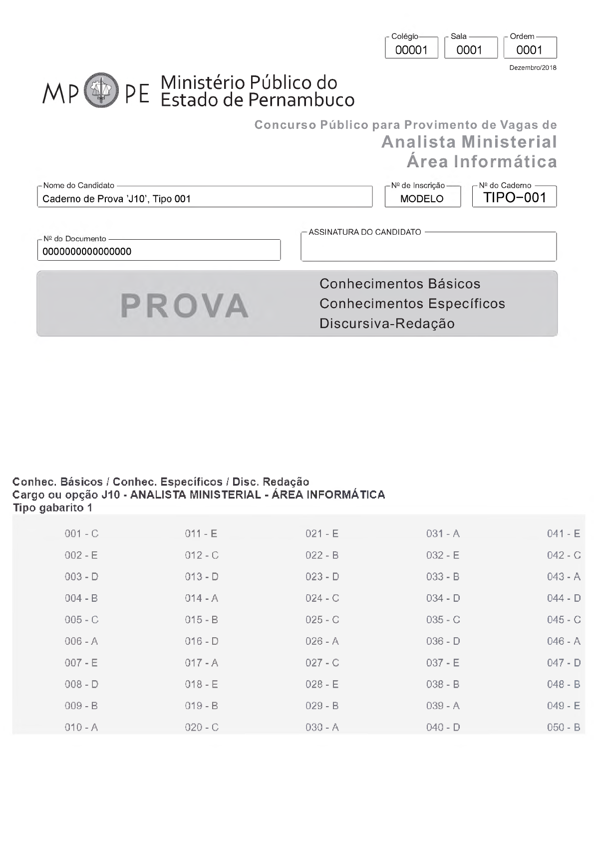 Caderno de Prova ’J10’, Tipo 001 MODELO TIPO-001