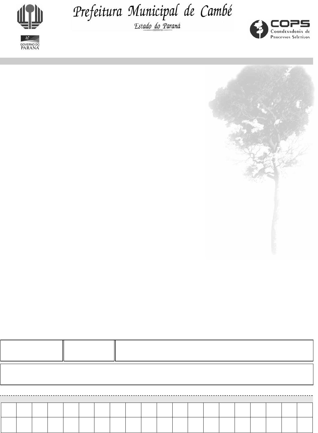 Secretaria de Administração M02 AUXILIAR DE ENFERMAGEM INSTRUÇÕES 1. Confira, abaixo, seu nome e número de inscrição. Assine no local indicado. 2. Aguarde autorização para abrir o Caderno de Prova. Após a autorização, confira com atenção o cargo correspondente à sua inscrição. 3. A interpretação das questões é parte do processo de avaliação, não sendo permitidas perguntas aos Fiscais. 4. Esta prova é composta por 40 questões objetivas. 5. Ao receber o Cartão Resposta, examine-o e verifique se os dados nele impressos correspondem aos seus. Caso haja alguma irregularidade, comunique-a imediatamente ao Fiscal. 6. A prova objetiva é composta por questões de múltipla escola, em que há somente uma alternativa correta. Transcreva para o Cartão de Respostas o resultado que julgar correto em cada questão, preenchendo o retângulo correspondente com caneta de tinta preta. 7. No Cartão de Respostas anulam a questão: a marcação de mais de uma alternativa em uma mesma questão, rasuras e preenchimento além dos limites do retângulo destinado para cada marcação. Não haverá substituição do Cartão de Respostas por erro de preenchimento. 8. Não serão permitidos empréstimos, consultas e comunicação entre os candidatos, tampouco o uso de livros, apontamentos e relógio. O não- cumprimento destas exigências implicará a exclusão do candidato deste Processo Seletivo. 9. Ao concluir a prova, permaneça em seu lugar e comunique ao Fiscal. Aguarde autorização para devolver, em separado, o Caderno de Prova e o Cartão de Respostas, devidamente assinados. 10. O tempo para o preenchimento do Cartão Resposta está contido na duração desta prova. DURAÇÃO DESTA PROVA: 4 HORAS LOCAL-SALA-CARTEIRA NÚMERO DE INSCRIÇÃO NOME DO CANDIDATO ASSINATURA DO CANDIDATO Transcreva abaixo o gabarito, dobre na linha pontilhada e destaque cuidadosamente. RESPOSTAS 01 02 03 04 05 06 07 08 09 10 11 12 13 14 15 16 17 18 19 20 21 22 23 24 25 26 27 28 29 30 31 32 33 34 35 36 37 38 39 40 www.pciconcursos.com.br 2 O gabarito oficial provisório das questões objetivas estará disponível no endereço eletrônico www.cops.uel.br, no dia 10/04/06, a partir das 18 horas. www.pciconcursos.com.br 3 PORTUGUÊS As questões de 01 a 05 referem-se ao texto 1. Texto 1: MUTILAÇÃO GENITAL ESTÁ SE GLOBALIZANDO A mutilação genital feminina, que consiste na remoção do clitóris e dos lábios menores da vulva, é um fenômeno em vias de se tornar global e que afeta milhões de mulheres na África, Oriente Médio e comunidades dos imigrantes no Ocidente, de acordo com um estudo publicado ontem pelo Fundo das Nações Unidas para a Infância (Unicef). “A incisão afeta muito mais mulheres do que o estimado anteriormente”, destaca a agência da ONU para a Infância em um estudo sem precedentes sobre Mutilações Genitais Femininas (MGF). Três milhões de mulheres são vítimas anualmente da mutilação genital no continente africano, destaca um comunicado do Unicef. Entre 100 e 140 milhões de mulheres no mundo sofreram uma mutilação sexual de diferentes modos, de acordo com o relatório. A prática da mutilação genital, extremamente vinculada à procedência étnica, parece diminuir em alguns países (Benin, Burkina Fasso, Nigéria e Iêmen), mas permanece estável em outros como a Costa do Marfim, Egito, Níger e Sudão. O relatório, fruto de dois anos de trabalhos das agências da ONU e de organismos locais, anuncia que esse tipo de mutilação está se globalizando. A mutilação é mais forte no continente africano, mesmo que também esteja sendo praticada no Oriente Médio e em comunidades de imigrantes no Ocidente (Europa Ocidental, Estados Unidos, Austrália e Nova Zelândia). Segundo os países e as tradições locais, as mutilações genitais femininas variam e envolvem desde um corte no clitóris até a retirada total das partes genitais externas e a sutura da vulva. “Esta prática constitui uma violação do direito das meninas e das mulheres à integridade física, atenta contra sua liberdade e é uma forma extrema de violência e discriminação”, de acordo com o Unicef. A mutilação está proibida por legislações nacionais de inúmeros países africanos e do Oriente Médio e é condenada pela Convenção Internacional sobre os direitos da criança. O texto recorda que nenhuma religião prescreve a prática, mesmo que muitas vezes se associem motivos religiosos para a sua execução. O fato de ser uma norma social profundamente arraigada em algumas sociedades dificulta a solução do problema, pois as famílias que não cumprem o ritual poderiam se ver marginalizadas em suas comunidades. (MUTILAÇÃO genital está se globalizando. Folha de Londrina, Londrina, 25 nov. 2005, p. 9.) 01. Assinale a alternativa que contém informações confirmadas pelo texto. a) O número de mutilações genitais vem se mantendo em três milhões por ano em países como Egito e Sudão, mas está abaixo desses índices em países como Nigéria e Iêmen. b) Mais de 100 milhões de mulheres no mundo sofreram mutilação genital nos dois anos em que a ONU e os organismos locais pesquisaram sobre o assunto. c) O número de mutilações em comunidades de imigrantes no Ocidente tem sido superior às práticas de mutilações em alguns países africanos. d) Mesmo nos países africanos em que se verifica a tendência à diminuição da mutilação genital, os indicadores ainda são numericamente superiores à ocorrência do problema em países europeus. e) A cada ano a mutilação sexual é infligida a três milhões de mulheres dentro da África, ainda que haja países africanos onde a prática da incisão parece diminuir. 02. A partir do segundo parágrafo do texto, a expressão “mesmo que” aparece duas vezes. Assinale a alternativa que possui termo ou expressão capaz de substituir a expressão citada sem alterar o sentido e sem modificar a flexão verbal. a) Caso. b) Apesar de. c) 